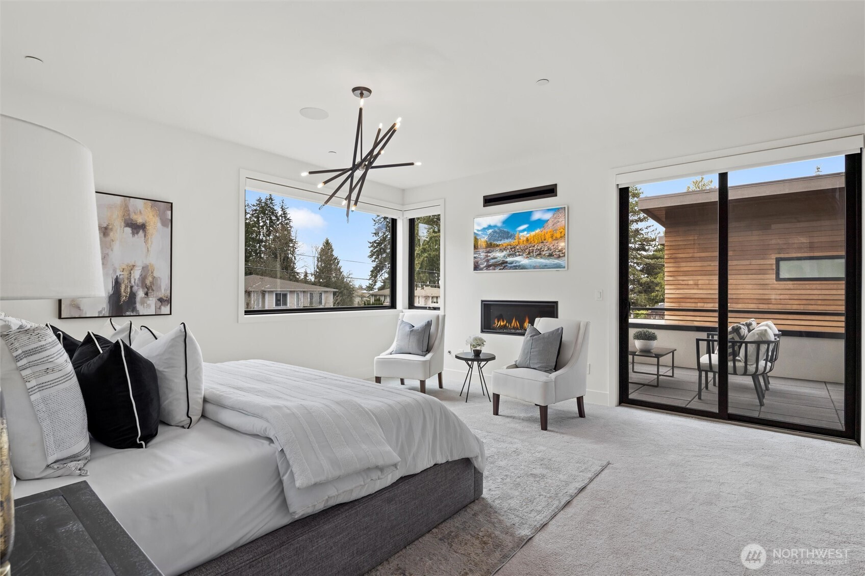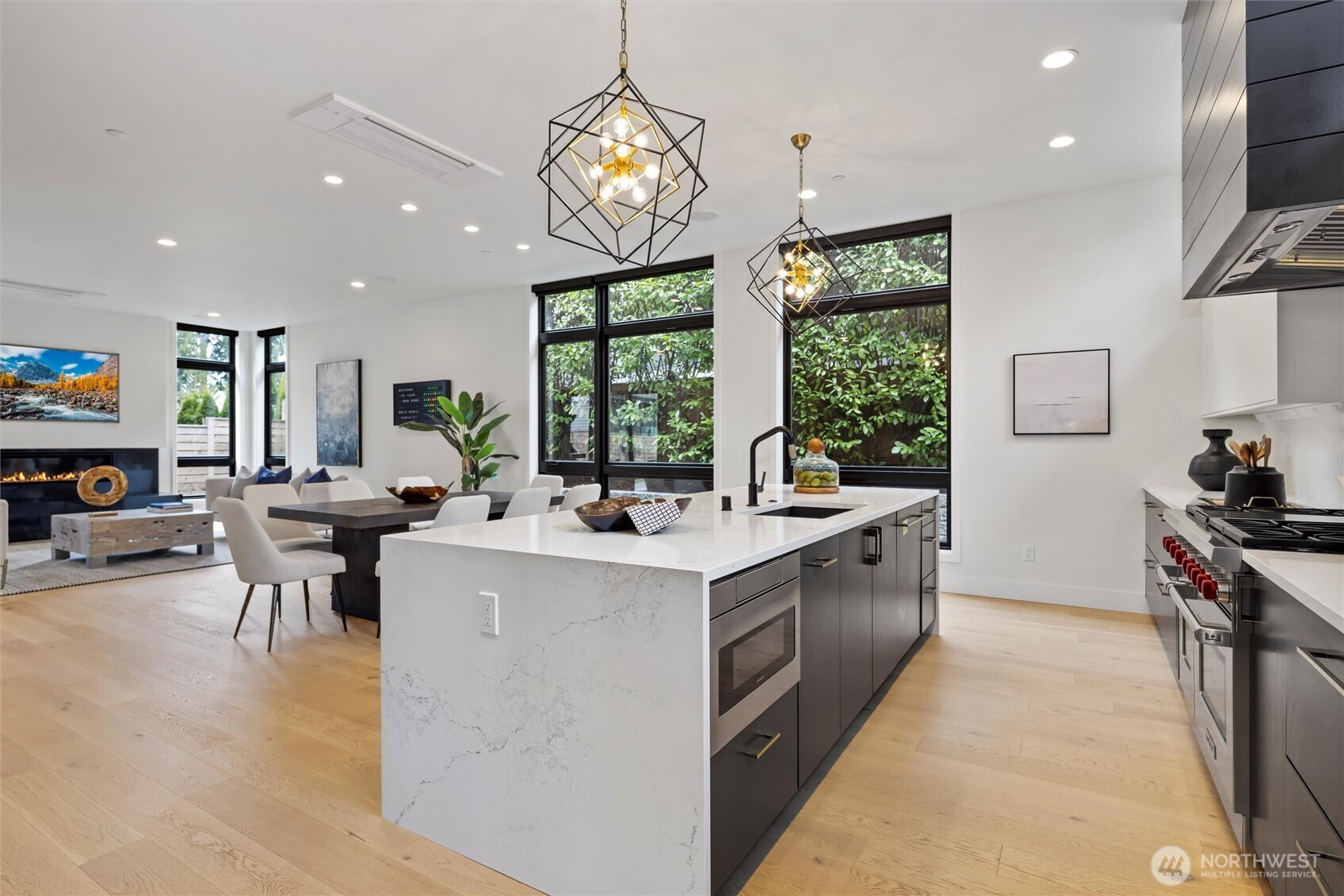 Designed for future living, this sophisticated Houghton custom luxury home by premier builder RD Homes includes an impressive list of amenities & optional $75K Digital Living Package (sold separately), for a fully automated lifestyle. 5 BD/4.5 BA two-level is an entertainer’s dream w/great room floor plan. Living room opens to covered outdoor patio, dining area & stunning kitchen w/top quality appliances (dual ovens-stoves-dishwashers), butler’s pantry & scullery kitchen. Main floor office/guest suite/gym space. Primary w/gas fireplace includes luxurious bath & access to a shared deck w/large media room. 3-car garage w/2 EV chargers. Surround sound, multiple HVAC, security & so much more. Close to Google, great schools & access to freeways.