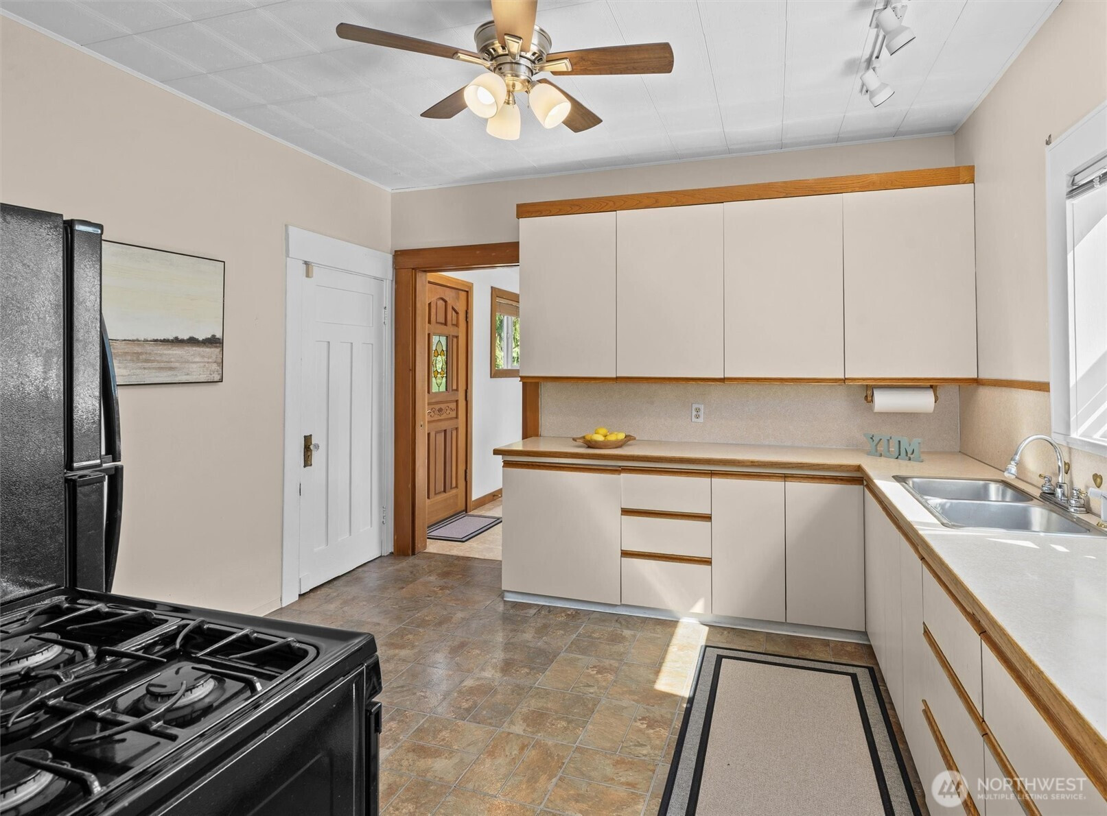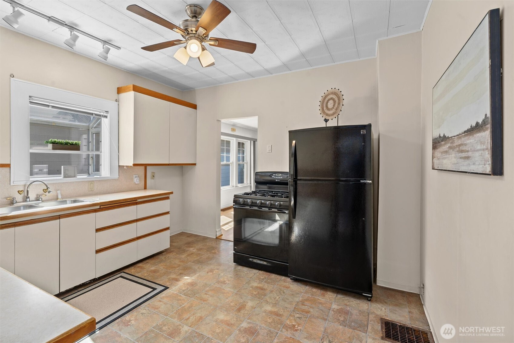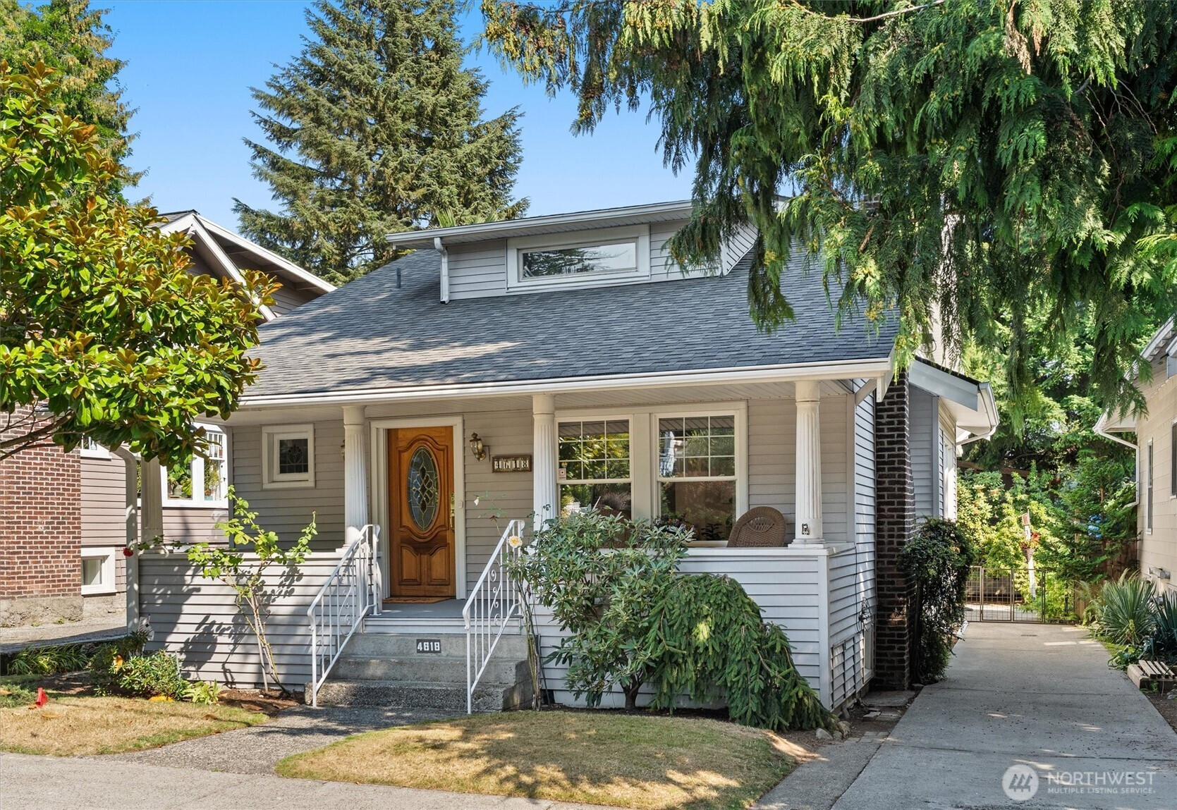 Charming Wallingford Craftsman on quiet street, refinished hardwoods, cozy gas fireplace. New electrical throughout and newer roof provide peace of mind. This home is a solid, basic value to buy into this sought-after neighborhood. Spacious living, dining rooms, bright kitchen. A back office/sunroom with garden views. Main floor has primary bed, ¾ bath and bonus room; upstairs are 2 bedrooms and ½ bath. Enjoy the covered front porch, backyard offers newer trex style deck, hot tub, lush yard, garden. Basement could be finished for more living space, or use as is for workshop, crafts, laundry, storage. Driveway - add EV charger? Stanford Elem Geo Zone. Quick access I-5, 520, Eastside. Recent appraisal at $1,037,000 gives you instant equity.
