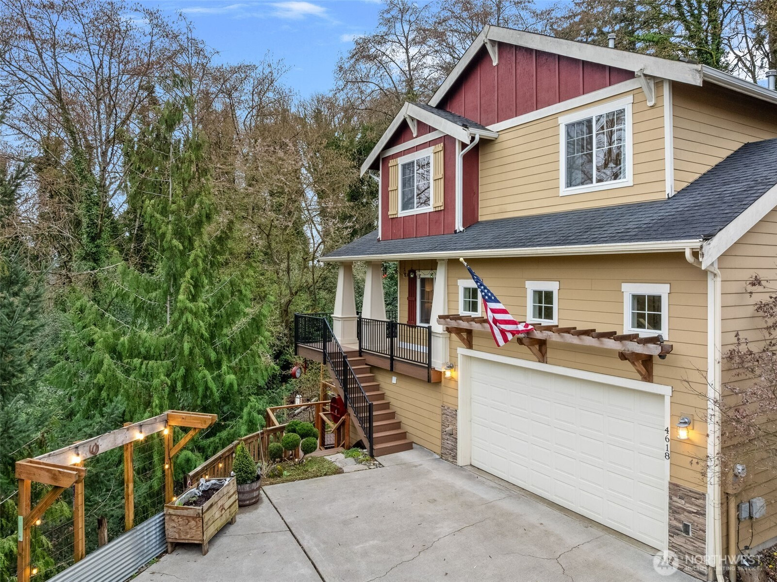 Welcome to this beautiful home located in the Foster area of Tukwila. This home is positioned to offer fantastic privacy! Sitting up at the end of a road, it feels like a private oasis. The Main Level offers a grand entryway with tall ceilings. The comfortable, open concept floor plan has a peaceful feeling as you look out to the trees through the large windows in the Kitchen, which has wonderful counter space, including an island. There is a formal Dining Room and a Living Room with a gas fireplace and built-in bookshelves. The Living Room opens to a new Trex deck through the French doors. There is also an office on the Main Level. Upstairs is the spacious Primary Suite, featuring vaulted ceilings, walk-in closets, and a luxurious Primary Bathroom. 2 other good-sized bedrooms, a laundry room, and a full Bathroom are also on the second floor. The lower level has the fourth bedroom, a Rec Room, a full Bath, and a second Laundry/Utility room with a large sink and a butcher block counter. This level has its own entrance. It could make a nice ADU. Some recent updates include roof and gutter cleaning. New carpet on the upper floor and stairs. New LVP flooring on the entire main floor, bath, and study. Newer Furnace and hot water tank. New back patio, New front porch, New front stairs, Side decking and stairs, Utility room added to lower level with washer and dryer. This location is extremely convenient, providing easy access to the freeways, Southcenter Mall, and more!