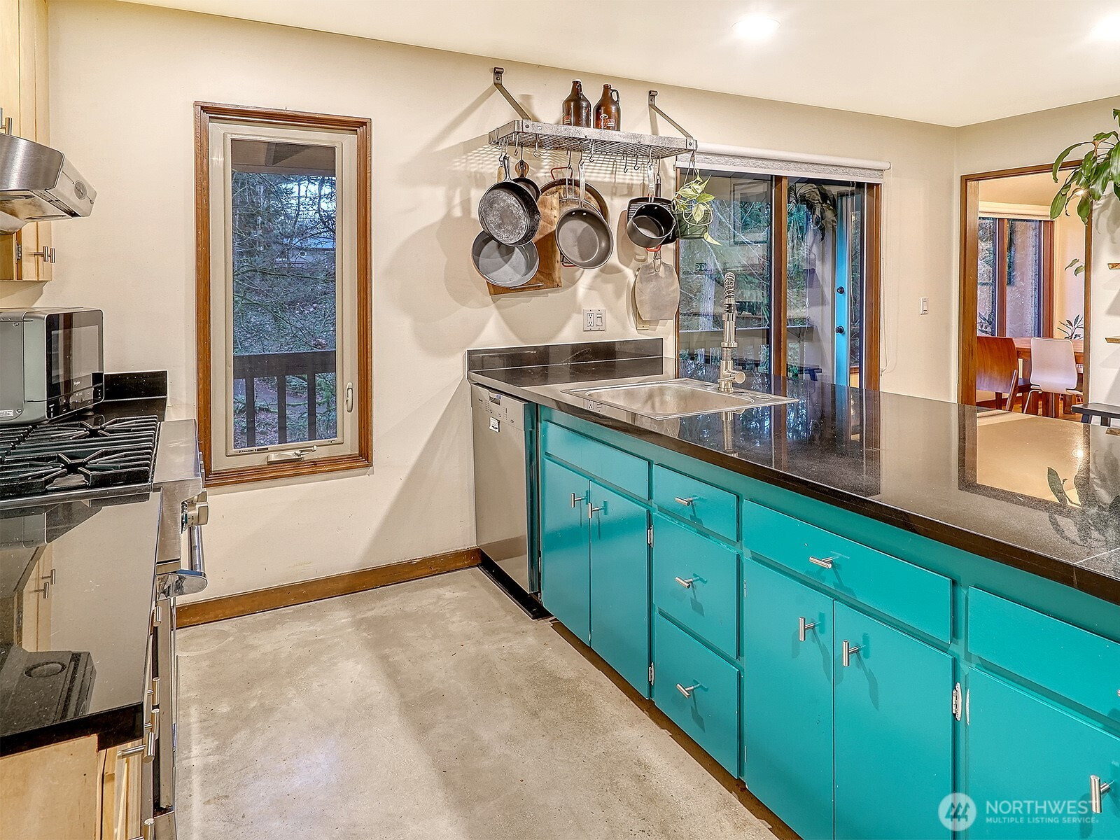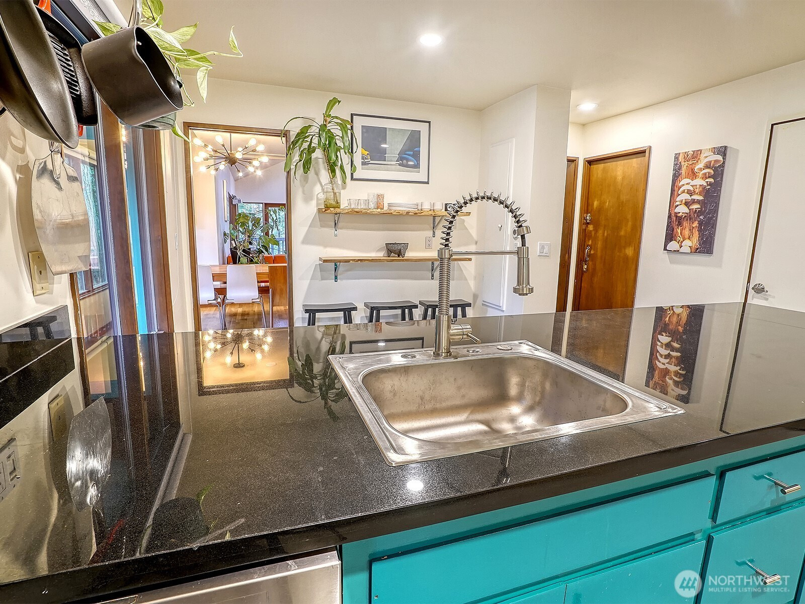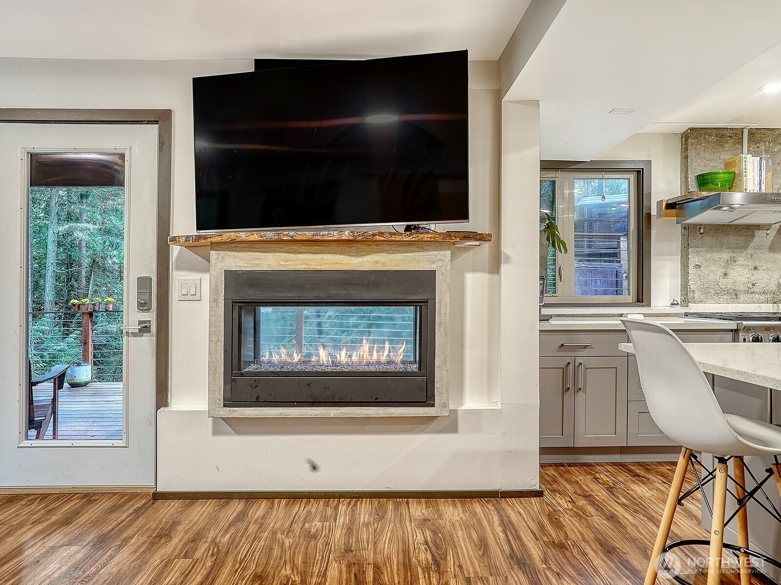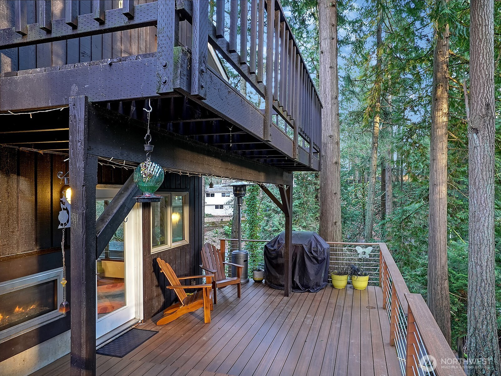 Welcome to modernized living at its best. This home has been uniquely crafted to accommodate you and additionally offer 2 high end multi-purpose units. Each space has its own private entry and deck, kitchen with granite or quartz countertops and gas range, washer/ dryer, and walls of windows to enjoy the amazing evergreens. The upper-level home greets you with a patio space to sit, relax, and be zen by the coy pond. Once inside you will immediately fall in love with the architecture. Features include 13' vaulted ceiling in the living room with dormered windows, gas fireplace, hardwood floors, circular floorplan, dining room, chef's kitchen with a double refrigerator, plenty of cabinets for storage and a huge bonus covered deck great in any weather. The second living space is located on the south side of the house and does not disappoint. A deluxe kitchen with island opens to the living room with fireplace. Previously used as a MIL, here you will find a 2 bedroom or 1 bedroom with an office/flex room and spa like bath. The 3rd area an incredibly designed studio and ready go to if desired as a rental. Deeded rights to the LFP beach club. An incredible opportunity awaits.