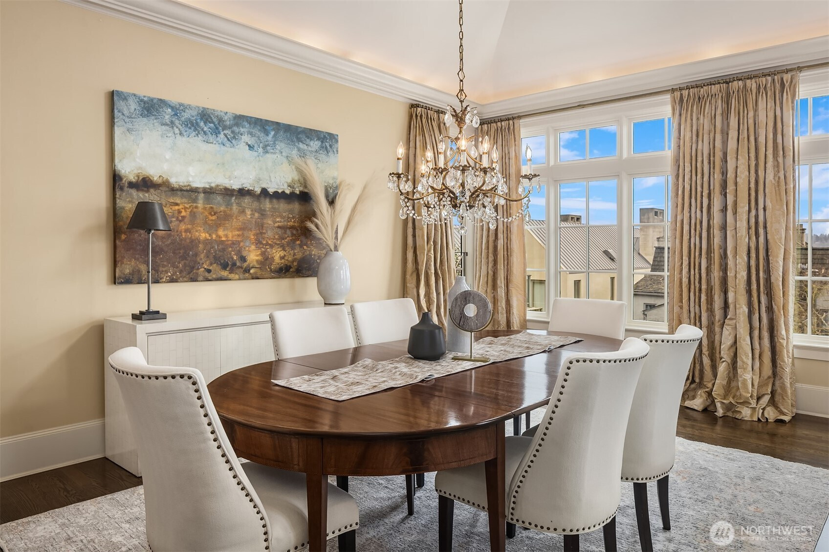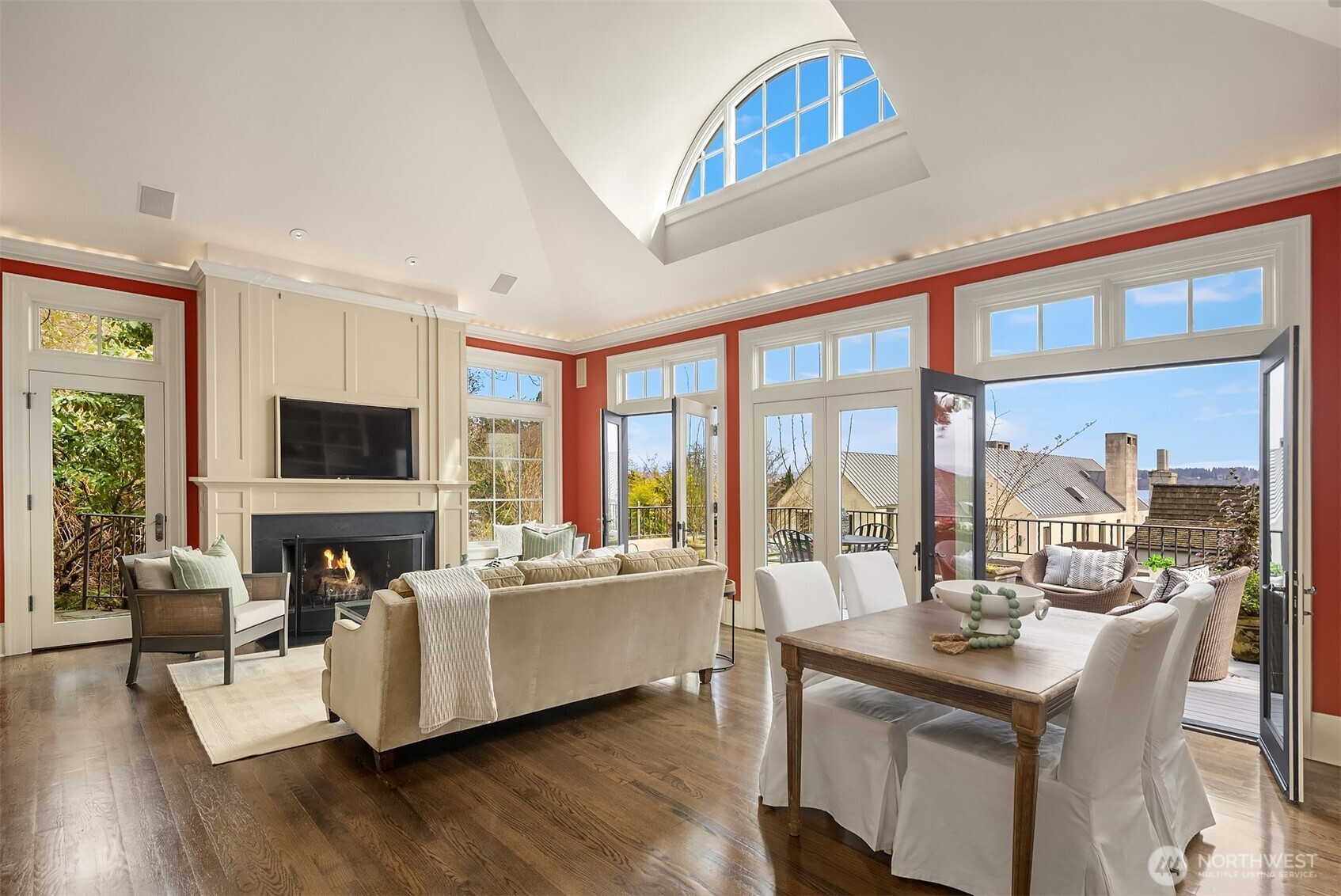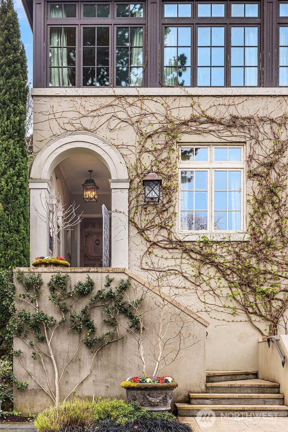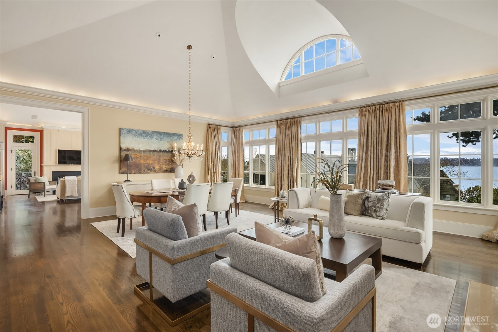 Sophisticated, warm & inviting Italianate Stuart Silk design on choice Washington Park street offers picturesque views of Lk Washington, Cascades & Bellevue skyline. Open floor plan, 15' vaulted ceilings, divided light windows, & arched dormers create dramatic spaces, while fireplaces, soffit lighting & kitchen terrace add to its European ambiance. Gourmet kitchen w/ top-of-the-line appliances & finishes, slab counters, central island. Luxurious primary br suite of generous scale. Rooftop deck ideal for outdoor entertaining & urban garden. Elevator, ample storage. Easy stroll to Madison Park shops, restaurants, & 'String of Pearl' Lk Washington beaches. 15 min to Downtown Seattle or Eastside. A true lifestyle opportunity! New furnace A/C
