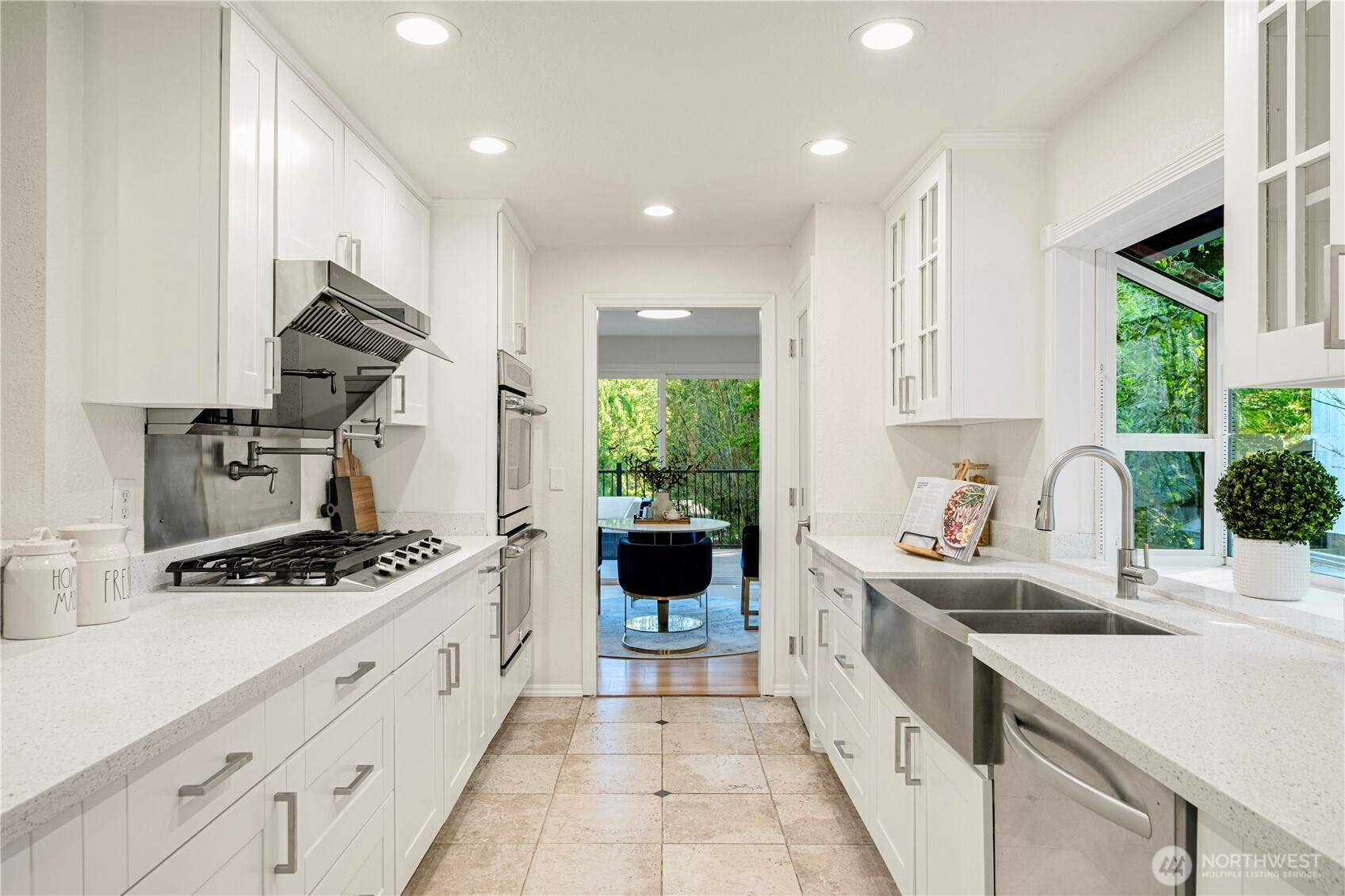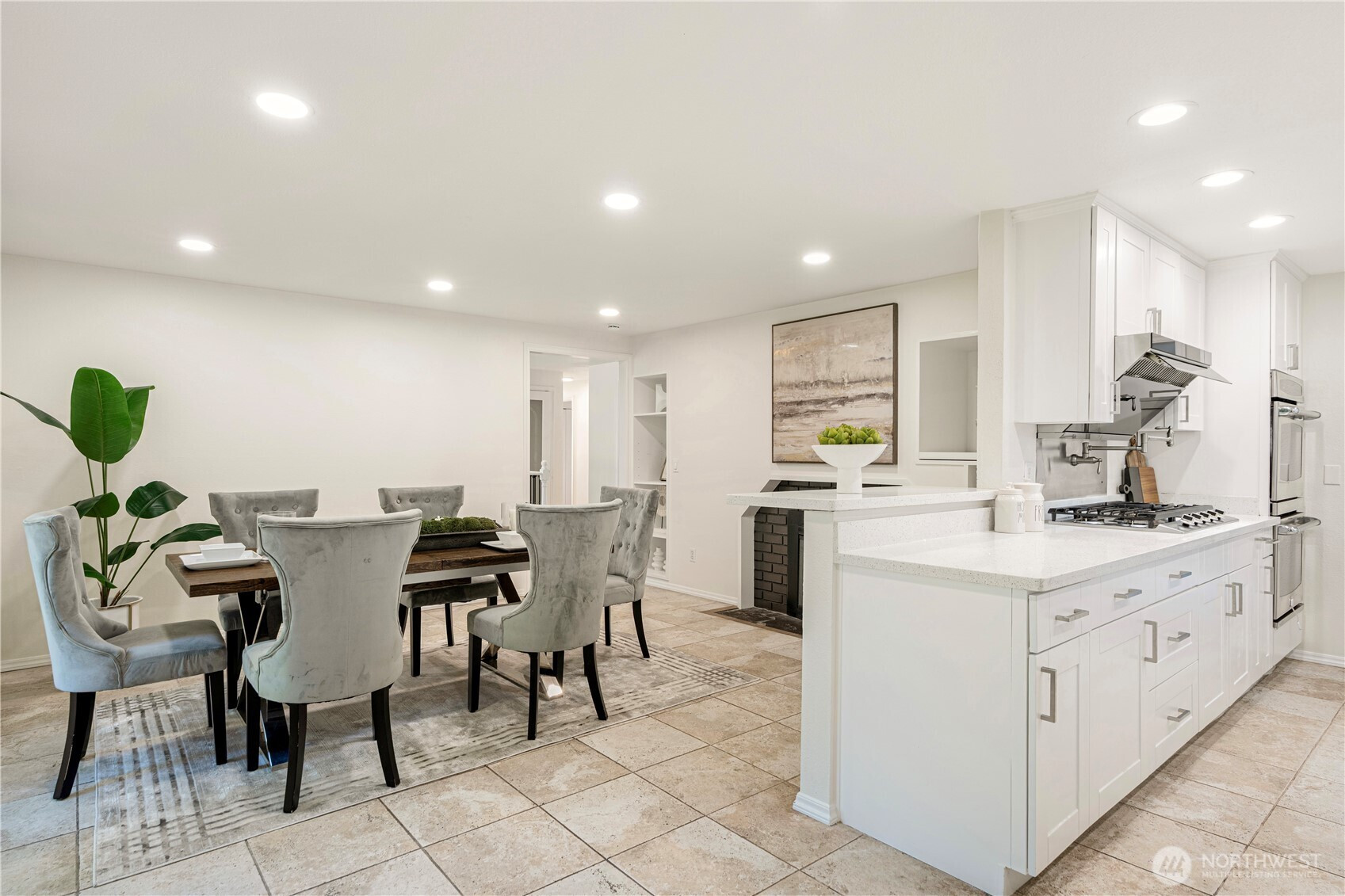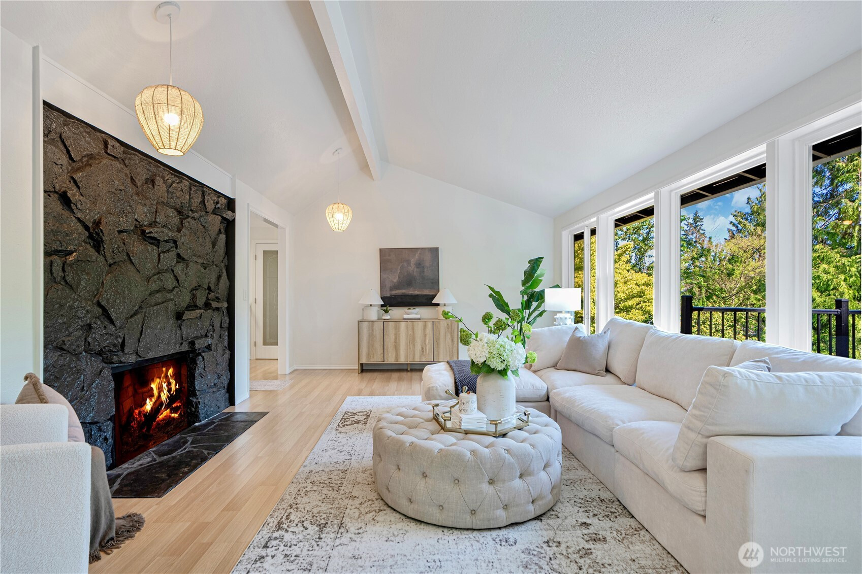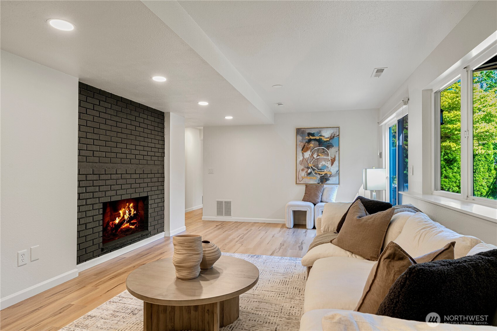 Located in desirable Whispering Heights, this beautifully maintained home boasts an open-concept layout with spacious living and dining areas, an upgraded chef’s kitchen, and a warm, inviting family room with a cozy fireplace. Enjoy luxurious hardwood floors throughout the main level, sleek stainless steel appliances, and updated bathrooms. The daylight basement offers incredible flexibility—perfect for a media room, home office, gym, or entertainment space. Step outside to a private, fully fenced backyard with a generous patio and garden area—ideal for entertaining or relaxing outdoors. Move-in ready, pre-inspected. Top-rated Bellevue schools!
