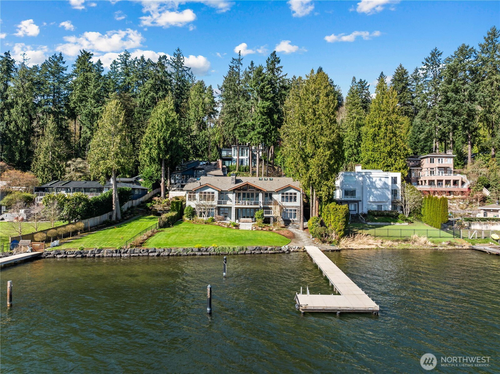 Defined by light, water, and a sense of ease, this exceptional waterfront home offers 101 feet of level Lake Washington shoreline and an extraordinary connection to the lake. Expansive windows frame ever-changing views, filling the home with natural light from morning through evening. The main living spaces flow beautifully for both quiet moments and gathering, with open dining and living areas, a well-appointed kitchen, a private primary suite, dedicated office, media room, and flexible spaces that adapt to changing needs. The walk-out lower level creates space for everyone, with three additional bedrooms, two baths, and a relaxed entertaining area with minibar. Generous heated storage and flex space invite wellness, recreation, hobbies, or creative pursuits. A 99-foot deepwater dock supports a true boating lifestyle, from paddleboarding at sunrise to afternoons cruising the lake and evenings at the water’s edge. With a 3-car garage and 2-car auto gallery, this home offers a rare balance of function, flexibility, and waterfront living. Professionally landscaped grounds and a level lawn extend the experience outdoors, offering space to entertain, play, or simply enjoy the calm rhythm of the shoreline. Warm, inviting, and thoughtfully designed, the home lives with an ease that is increasingly rare—private when desired, welcoming when gathered, and always oriented toward the beauty and movement of the water beyond. A rare opportunity to live immersed in the beauty of this lake.