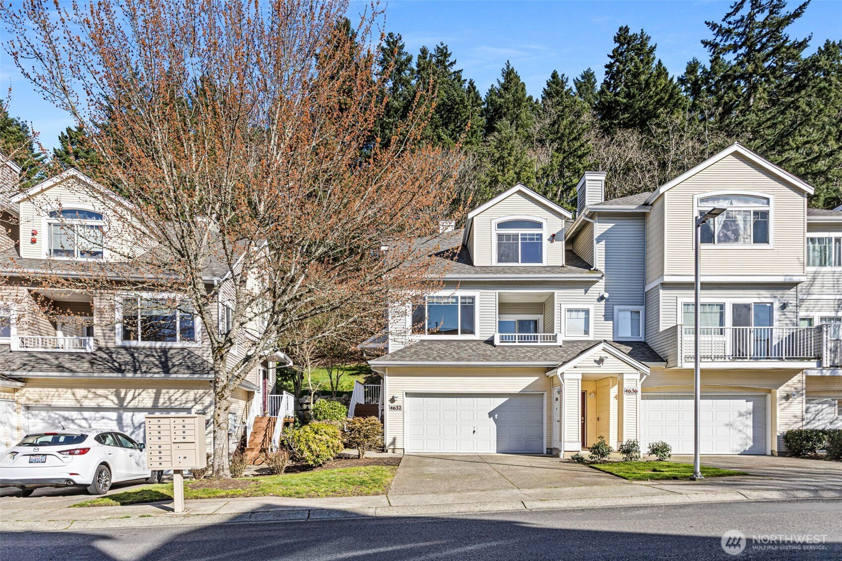 Gorgeous end-unit townhome filled with abundant natural light from expansive windows throughout. The main level offers a warm and inviting layout featuring a cozy family room with a gas fireplace, a formal living room with vaulted ceilings, and a spacious dining area perfect for entertaining. The kitchen includes an eating nook, ample built-in storage, and easy access to the private deck overlooking a lush greenbelt— an ideal setting for morning coffee or evening relaxation. A convenient powder bath completes the main level. Upstairs, the generous primary suite features a five-piece bath and a walk-in closet. You’ll also find a full-size washer and dryer in the upstairs laundry room, a bright and spacious guest bedroom, and an additional full bathroom. The lower level boasts an oversized third bedroom with an entertainment cubby and a newly remodeled ¾ bath. A private den with abundant outlets offers flexible space for a home office, gaming or media room.Enjoy outdoor living with both a large private deck and a second balcony— perfect for unwinding and taking in sunset views. Ideally located near Hwy 167 and I-405 with close proximity to Valley Medical Center, shopping, and dining, this home combines comfort, security, and exceptional accessibility in a well-maintained community. A very well-funded HOA and no rental cap make this an outstanding opportunity for both homeowners and investors alike.