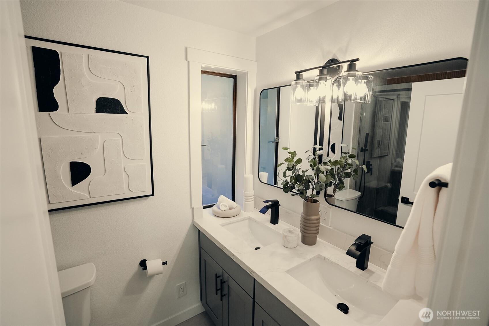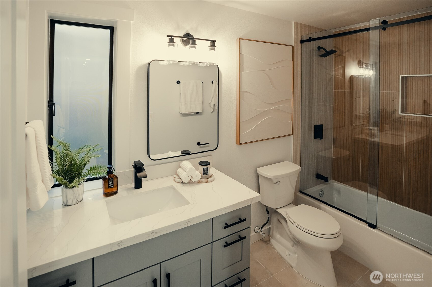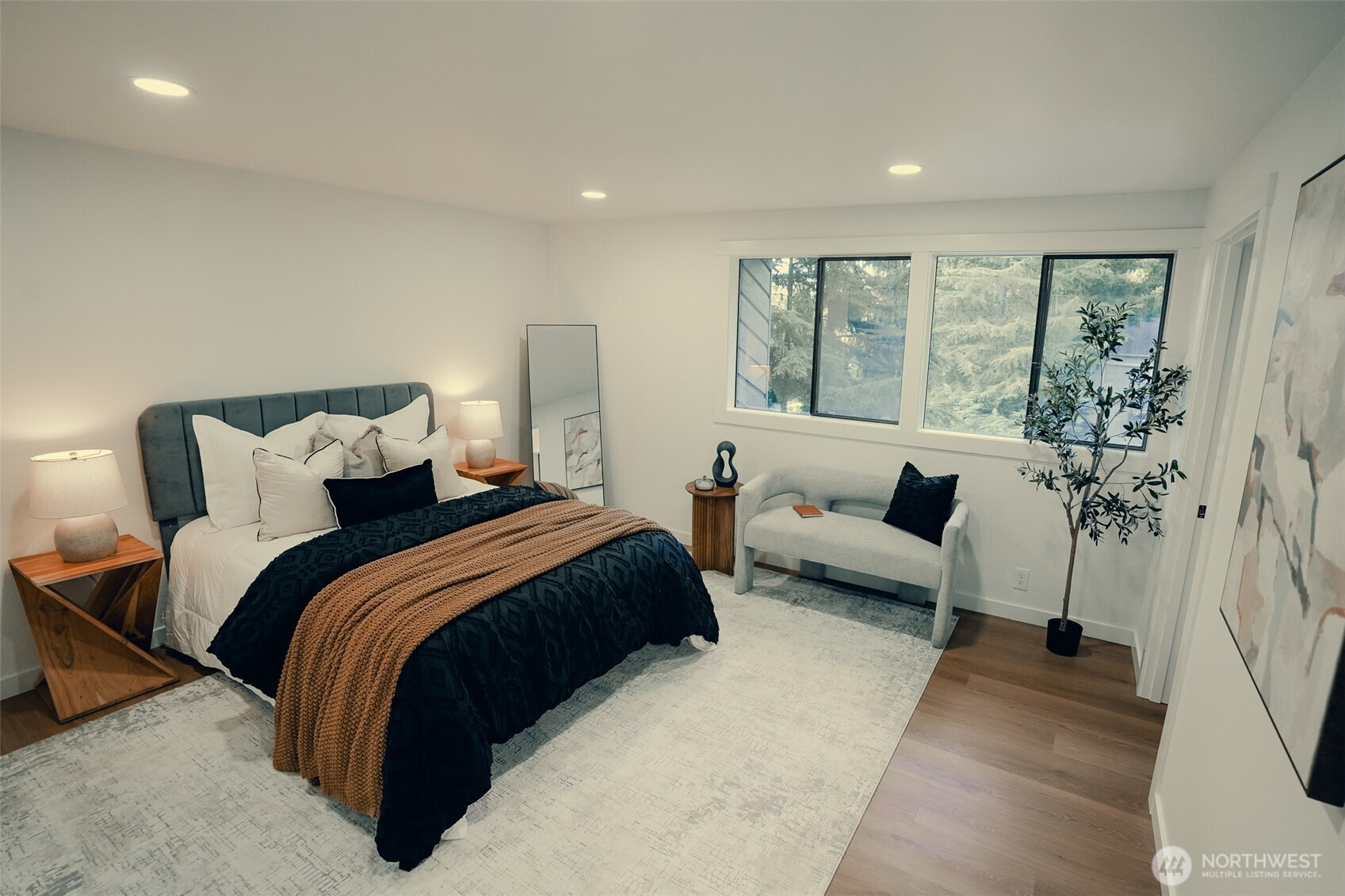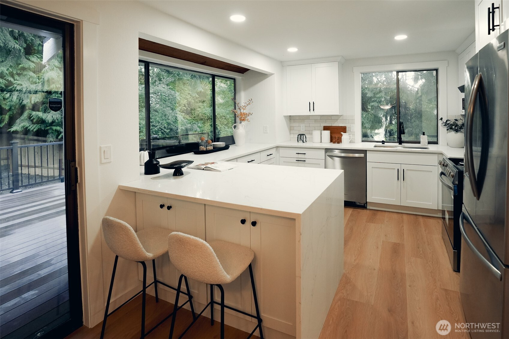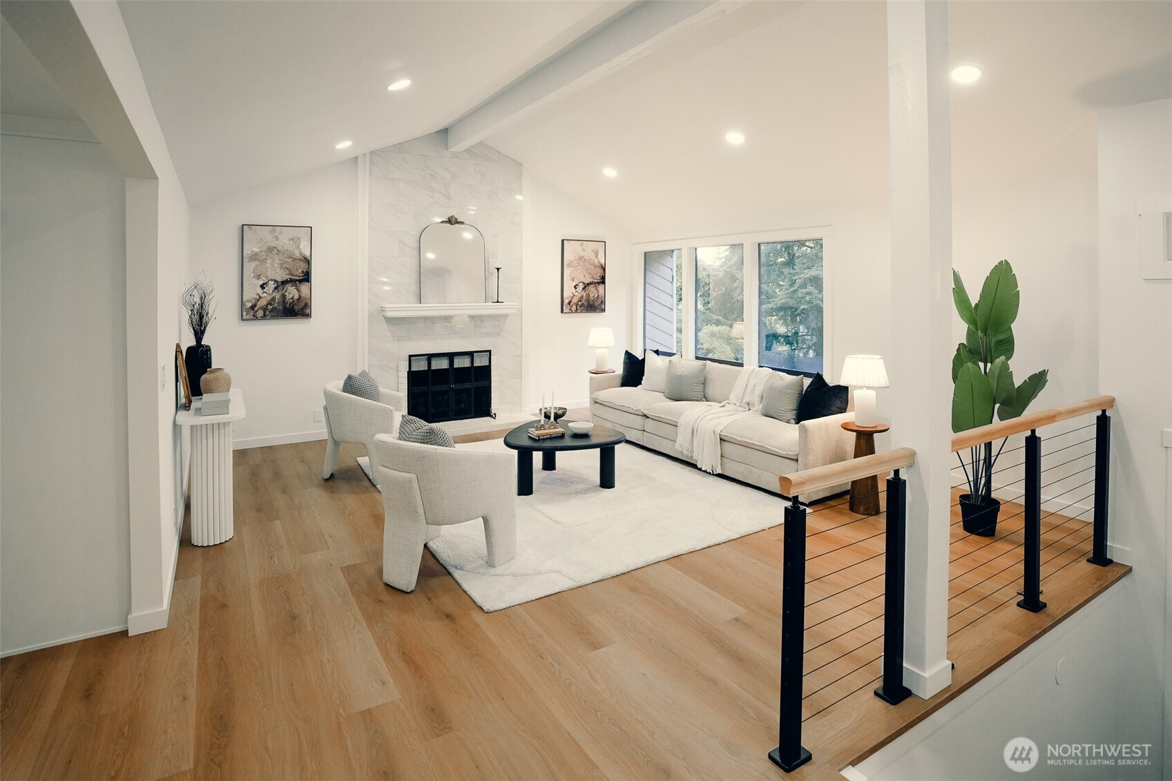Discover this charming split-level home in great somerset neighborhood, blending comfort and convenience. This completely remodeled home flawlessly blends mid-century charm with stylish modern finishes. Features vaulted ceiling, an open-concept layout, and the beautiful green scenery from the backyard. The stylish kitchen, designed with today’s favorite tones and trends, finishes with a waterfall quartz countertop, all high-ends new appliances, new cabinets. Other updates includes new bathrooms, new SPC floor throughout, all new solid doors—nothing has been overlooked. A new, efficient AC system adds comfort during hot summers. New landscaping, In top-rated Bellevue schools, near parks, and I-405 & I90 for easy commutes. Don't miss out!