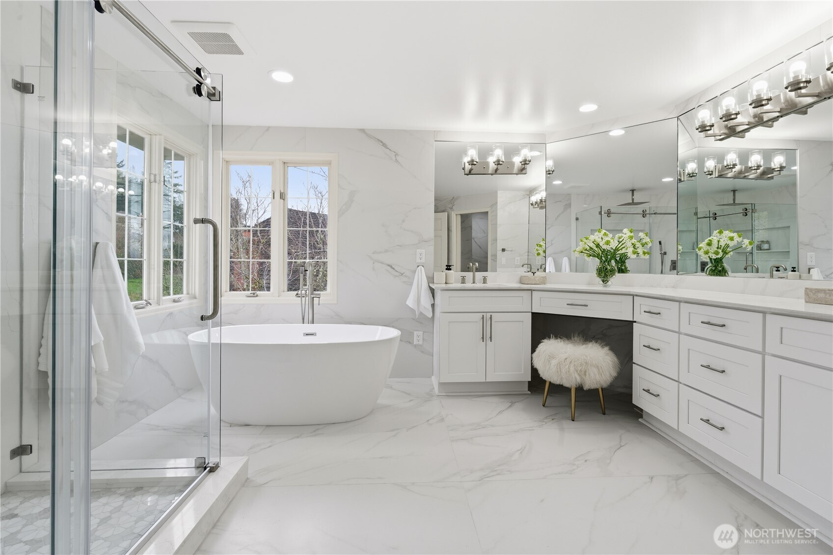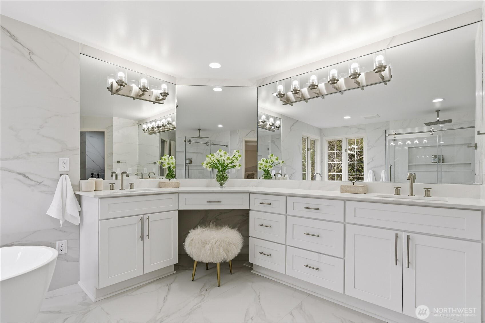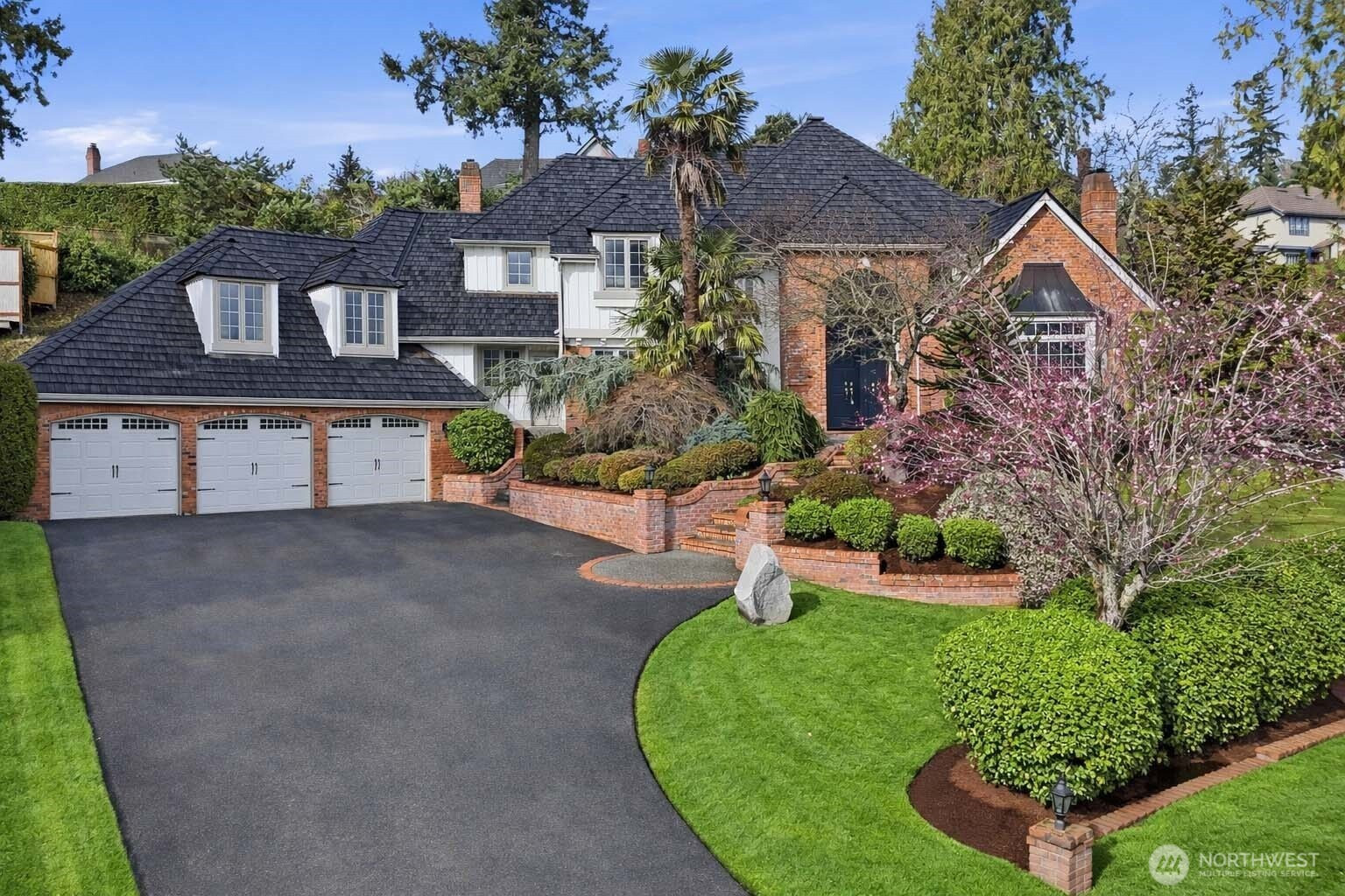 Gorgeous John Buchan residence tucked away in a quiet cul-de-sac, showcasing exceptional curb appeal, Cascade mountain views, and unparalleled privacy. This light-filled home has been meticulously updated and maintained, featuring a kitchen with new quartz countertops and appliances, newly renovated bathrooms, and fresh interior and exterior paint, delivering a truly move-in-ready luxury experience. The stunning kitchen seamlessly connects to a warm and inviting family room. Rich hardwood floors and elegant millwork extend throughout, complemented by formal living and dining rooms, a paneled study, and two gas fireplaces. The luxurious primary suite is a true private retreat, featuring soaring vaulted ceilings that create an airy, serene atmosphere. The brand-new, spa-inspired primary bathroom has been exquisitely remodeled with premium finishes, offering a refined, hotel-quality experience designed for relaxation and comfort. A spacious bonus room or optional fifth bedroom with a ¾ bath provides exceptional flexibility—perfect for guests or multi-generational living. Additional highlights include 3-car garage with EV charger, air conditioning. Set in one of the area’s most coveted neighborhoods, with award-winning Issaquah schools and just minutes to I-90, shopping, dining, and everyday conveniences. A timeless home offering privacy, comfort, and elevated living—welcome home.