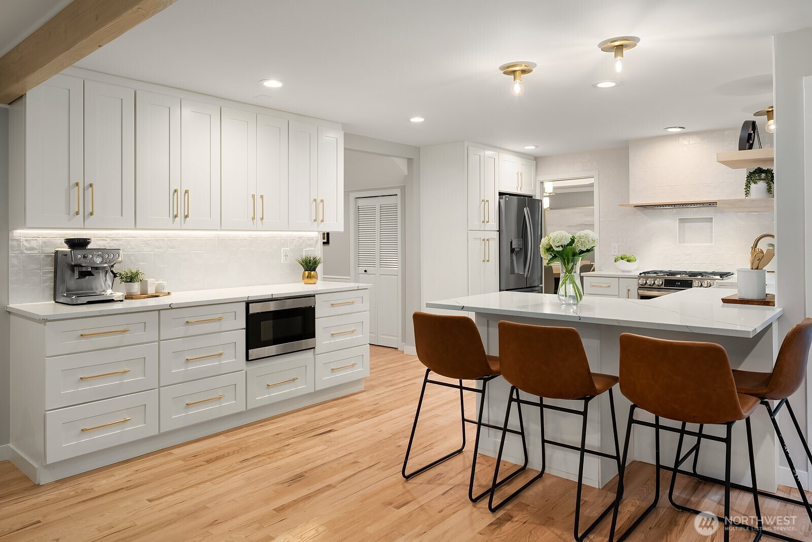 Nestled in the sought-after Brookshire neighborhood, this beautifully updated John Buchan-built home blends classic elegance with thoughtful updates throughout. From the moment you arrive, the exceptional curb appeal sets the tone for the quality and style found throughout. At the heart of the home is a stunning, fully remodeled kitchen featuring beautiful quartz countertops, ample new cabinetry, high-end appliances, and a beverage fridge. Designed for both everyday living and entertaining, the kitchen offers expansive workspace and abundant storage while opening to the home’s main living areas. The main level include a gorgeous formal living and dining room ideal for entertaining, and a den that is perfect for working from home or a quiet retreat. Upstairs, you’ll find all bedrooms, including the spacious primary suite, providing a functional layout. The primary suite has a spa bath and walk-in closet. Step outside to an incredible deck overlooking the turf yard with putting green and backs to a peaceful greenbelt, creating a private and low-maintenance outdoor setting ideal for entertaining, relaxing, or play. Additional highlights include updated bathrooms throughout, a spacious two-car garage, and the craftsmanship and timeless design that make John Buchan homes so highly regarded. Ideally located with easy access to Issaquah, Sammamish, and I-90, this home offers both convenience and a wonderful neighborhood setting. Excellent Issaquah Schools. AC and brand new carpet.
