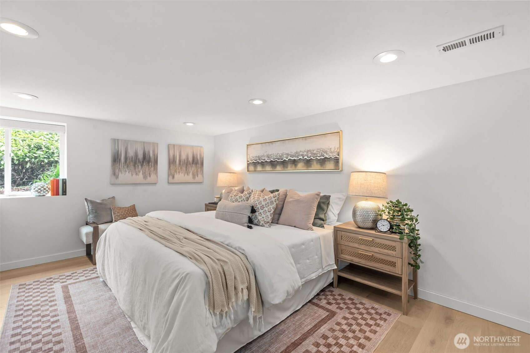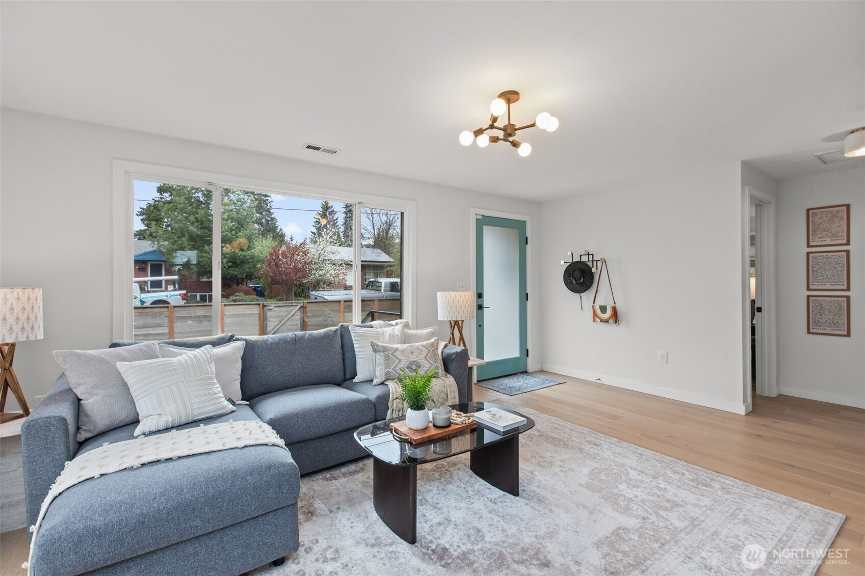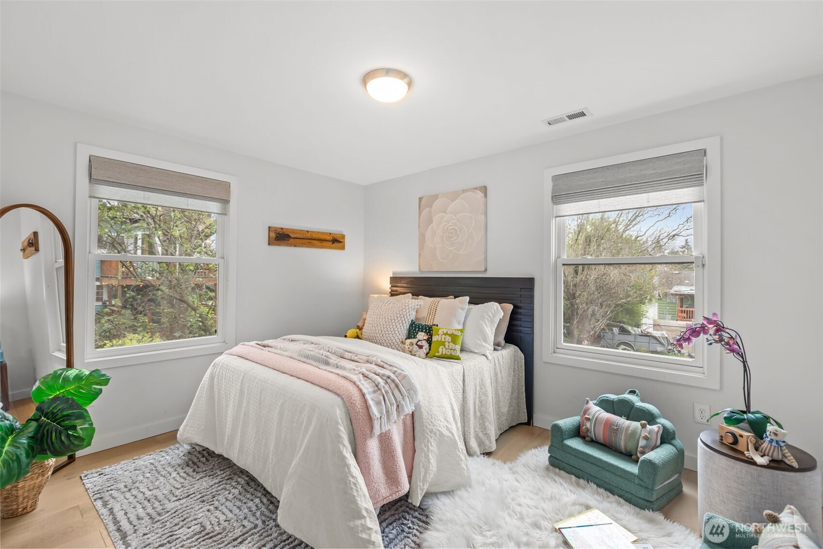 Welcome to your move in ready, updated home that is walking distance to Seward Park! New engineered hardwood flooring throughout, new roof, EV charger, designer bathrooms and California closets. Entry walks into an open floor plan in the kitchen for entertaining. Newer electrical, plumbing, kitchen, HVAC. Daylight basement offers a large family room, two bedrooms, full bath and laundry room with exit to a fenced backyard and alleyway. This home is right in the heart of Hillman City, Seward Park and Columbia City. Experience walkability, community and convenience with this turnkey home. Pre-inspected
