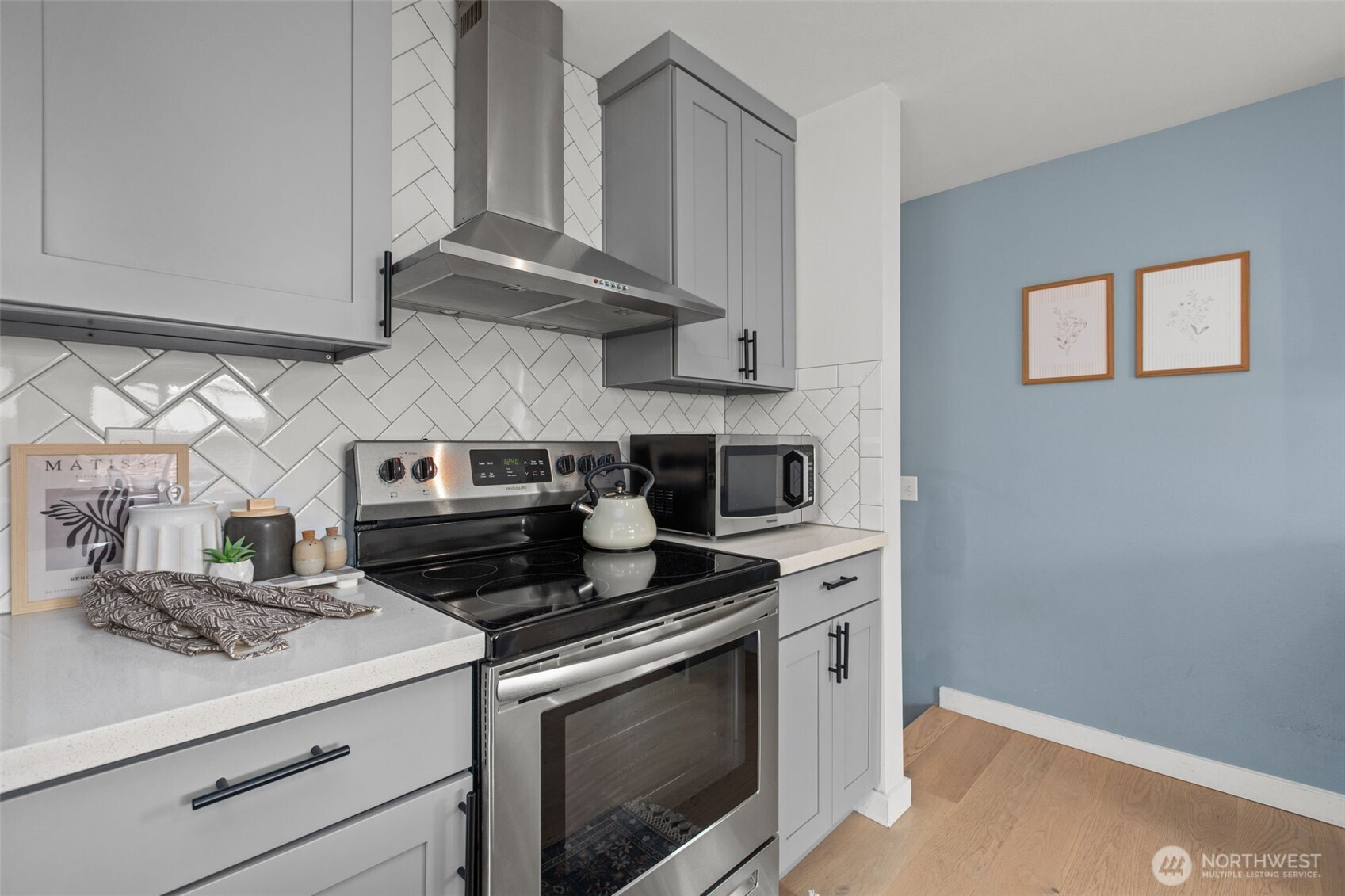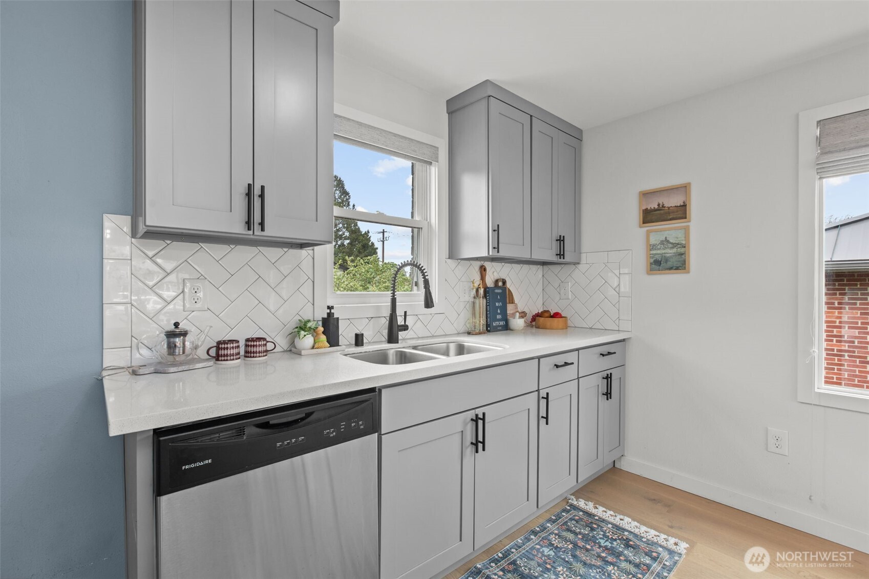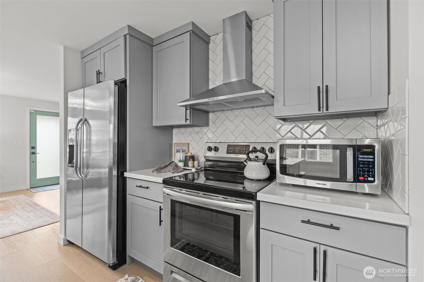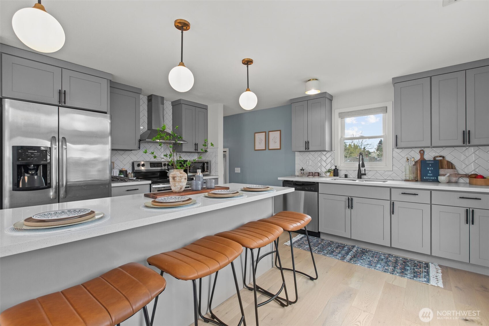 Welcome to your move in ready, updated home that is walking distance to Seward Park! New engineered hardwood flooring throughout, new roof, EV charger, designer bathrooms and California closets. Entry walks into an open floor plan in the kitchen for entertaining. Newer electrical, plumbing, kitchen, HVAC. Daylight basement offers a large family room, two bedrooms, full bath and laundry room with exit to a fenced backyard and alleyway. This home is right in the heart of Hillman City, Seward Park and Columbia City. Experience walkability, community and convenience with this turnkey home. Pre-inspected