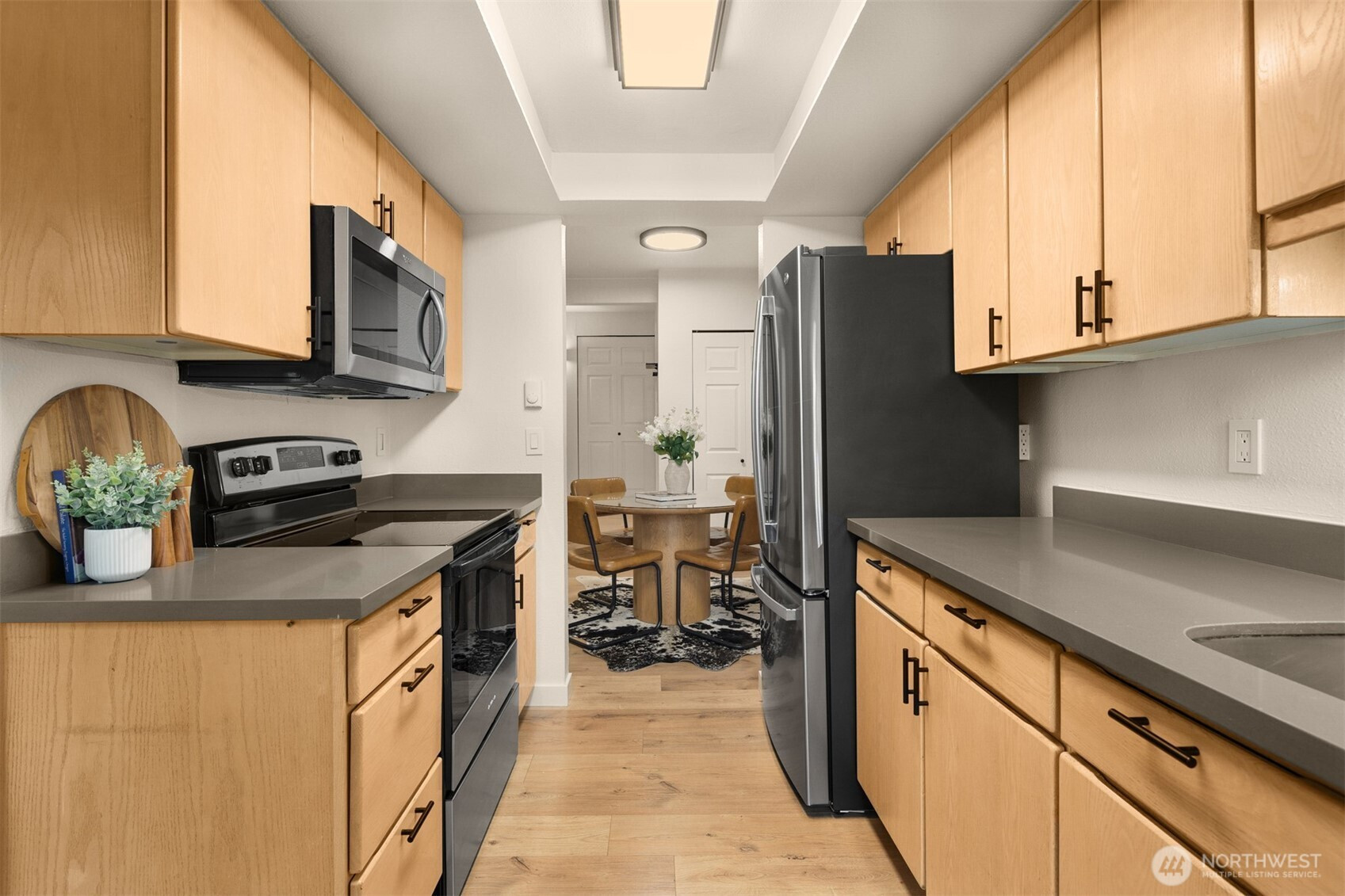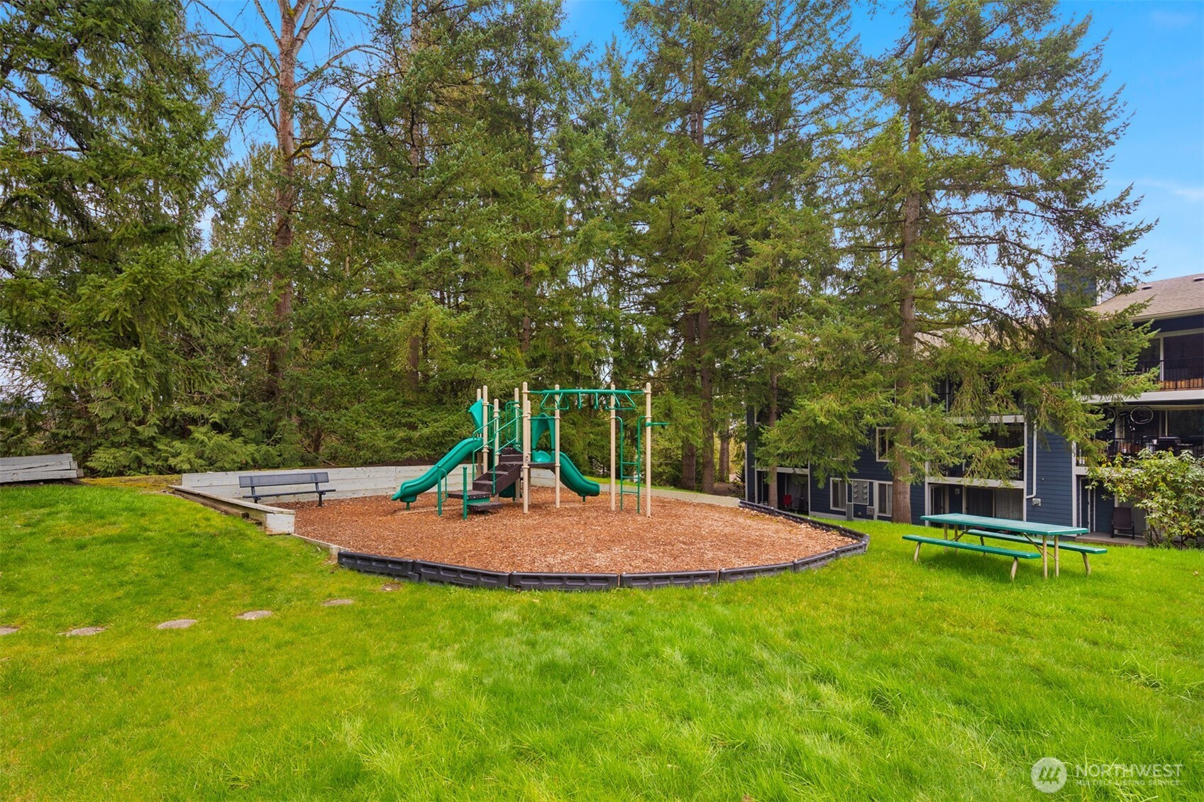 Located in Issaquah's beloved Sammamish Bluffs community this home is immaculately well cared for and updated. Top floor, light and bright, private, with sweeping views. Stunning well sized 2-bed/2-bath home that lives large with vaulted ceilings and thoughtful updates throughout. Beautiful wide-plank floors, updated kitchen and one of the coziest living rooms you'll find. Large covered patio is a sanctuary of its own with two sliders, storage, and amazing views yet with the privacy and no neighbors in front. Sammamish Bluffs is among the best condo communities around that offer a plethora of amenities yet with low HOA dues. Incredible pool/hottub, clubhouse, sports court, and manicured grounds. Pre-inspected and truly a must-see!