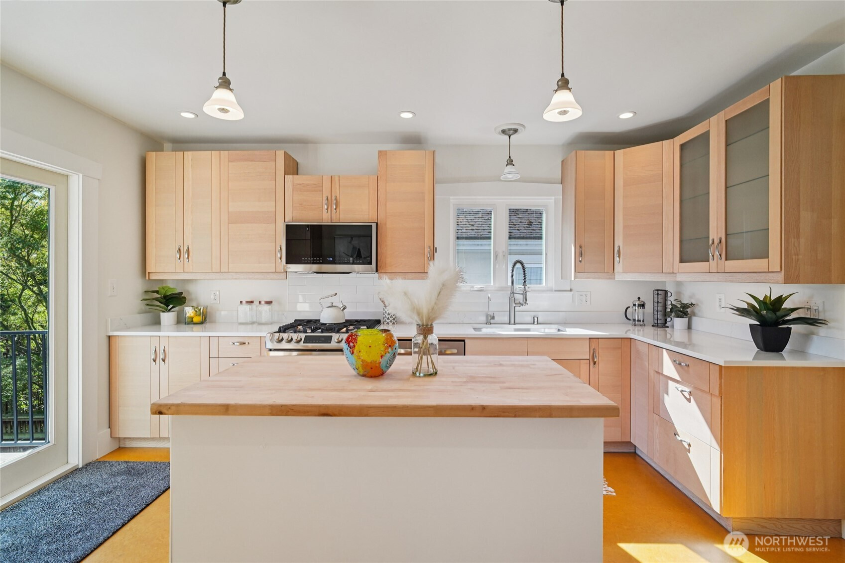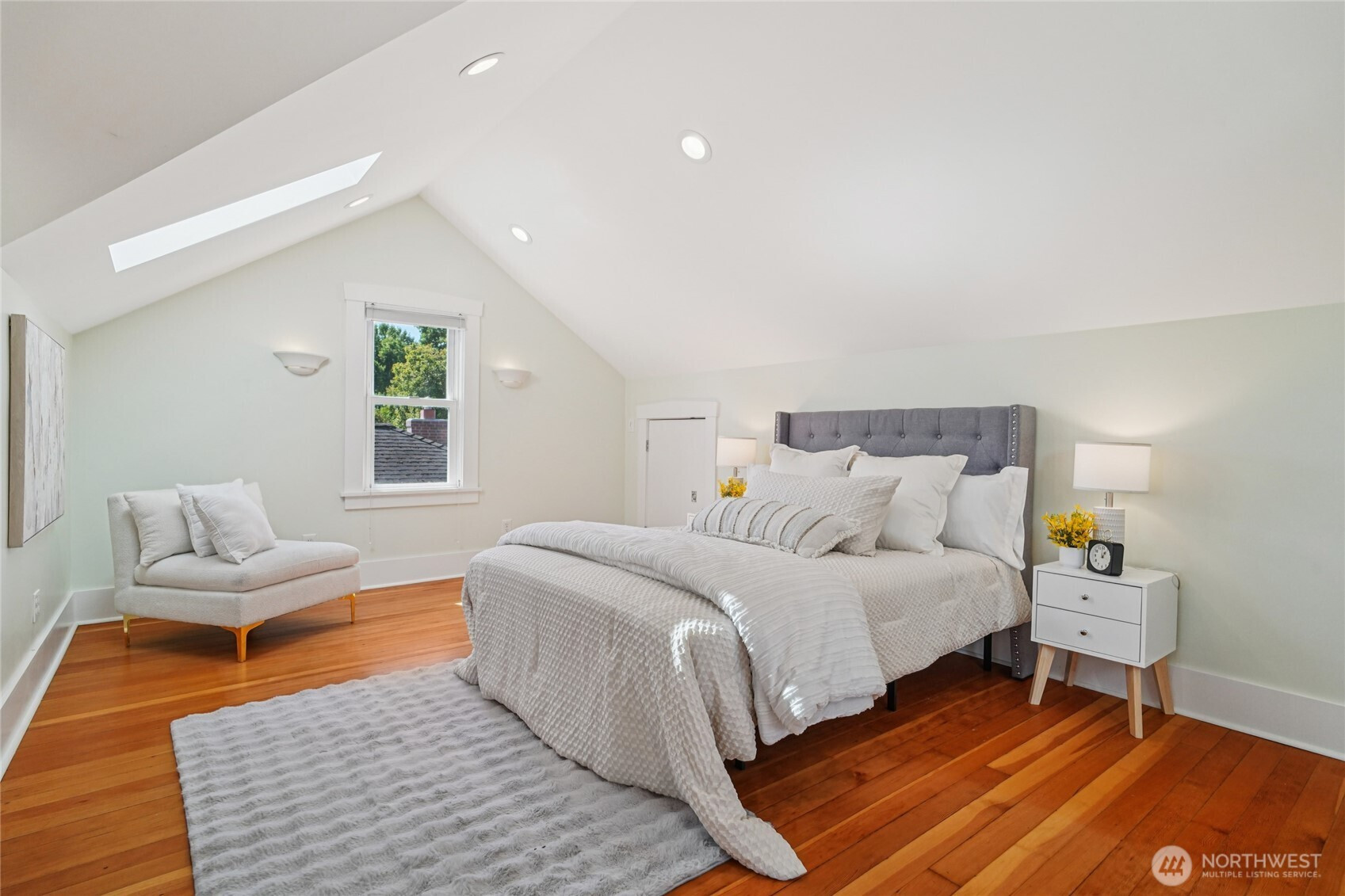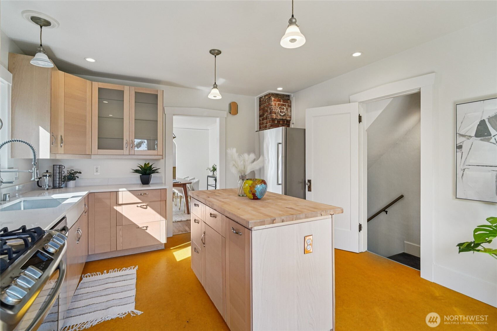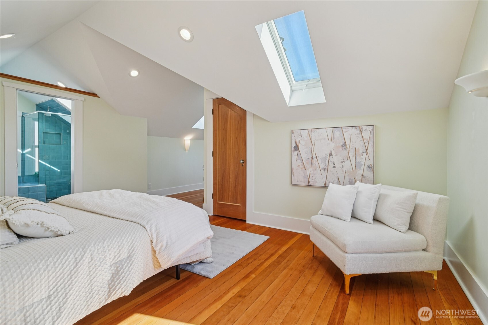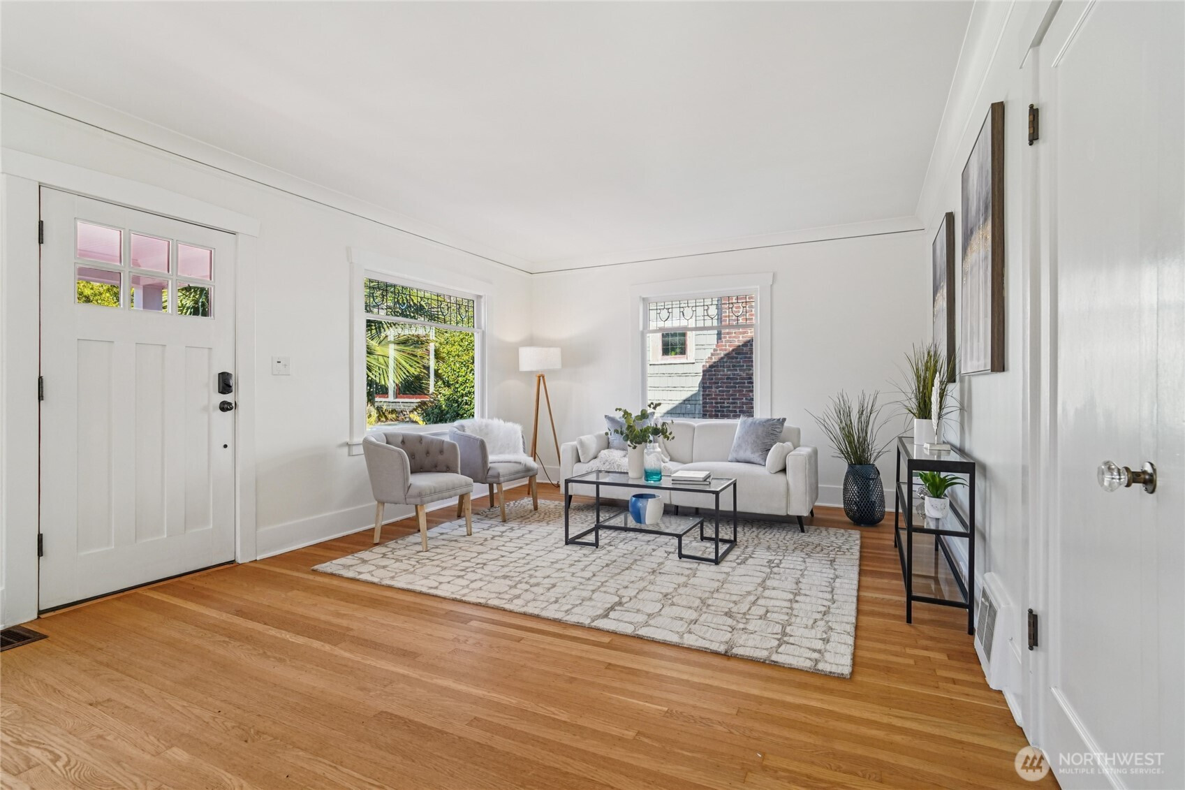 Wallingford charm and thoughtful updates shine in this beautifully maintained home. Original leaded glass, a welcoming front porch, and refinished hardwoods set the tone in this light-filled, notably quiet space given its central location. The spacious living and dining rooms connect to a bright kitchen with stainless appliances, tile backsplash, and French doors to the Trex deck. Two main-floor bedrooms share a full bath. Upstairs, the skylit primary suite includes a walk-through closet and private 4-piece relaxing bath. The lower level offers a cozy media room, laundry, and loads of storage. Permitted Airbnb studio with its own entrance will subsidize your lifestyle. New sewer line with warranty. This is the home you’ve been waiting for.