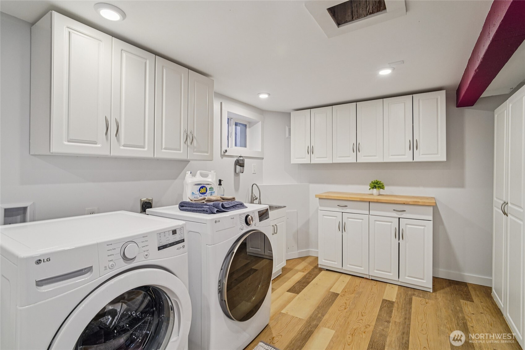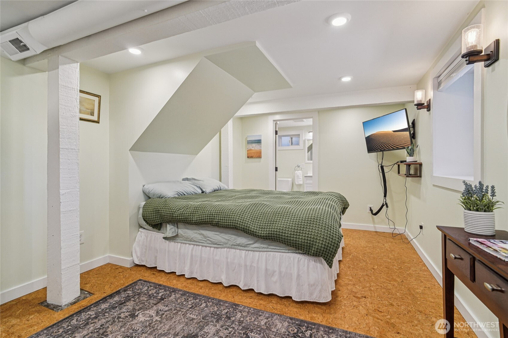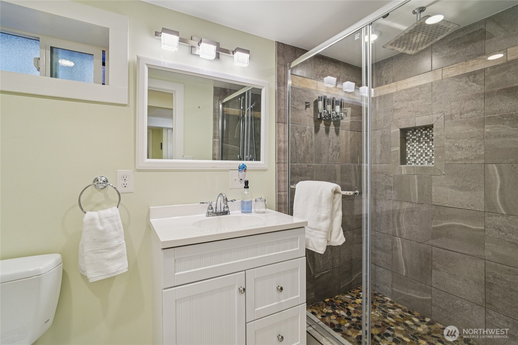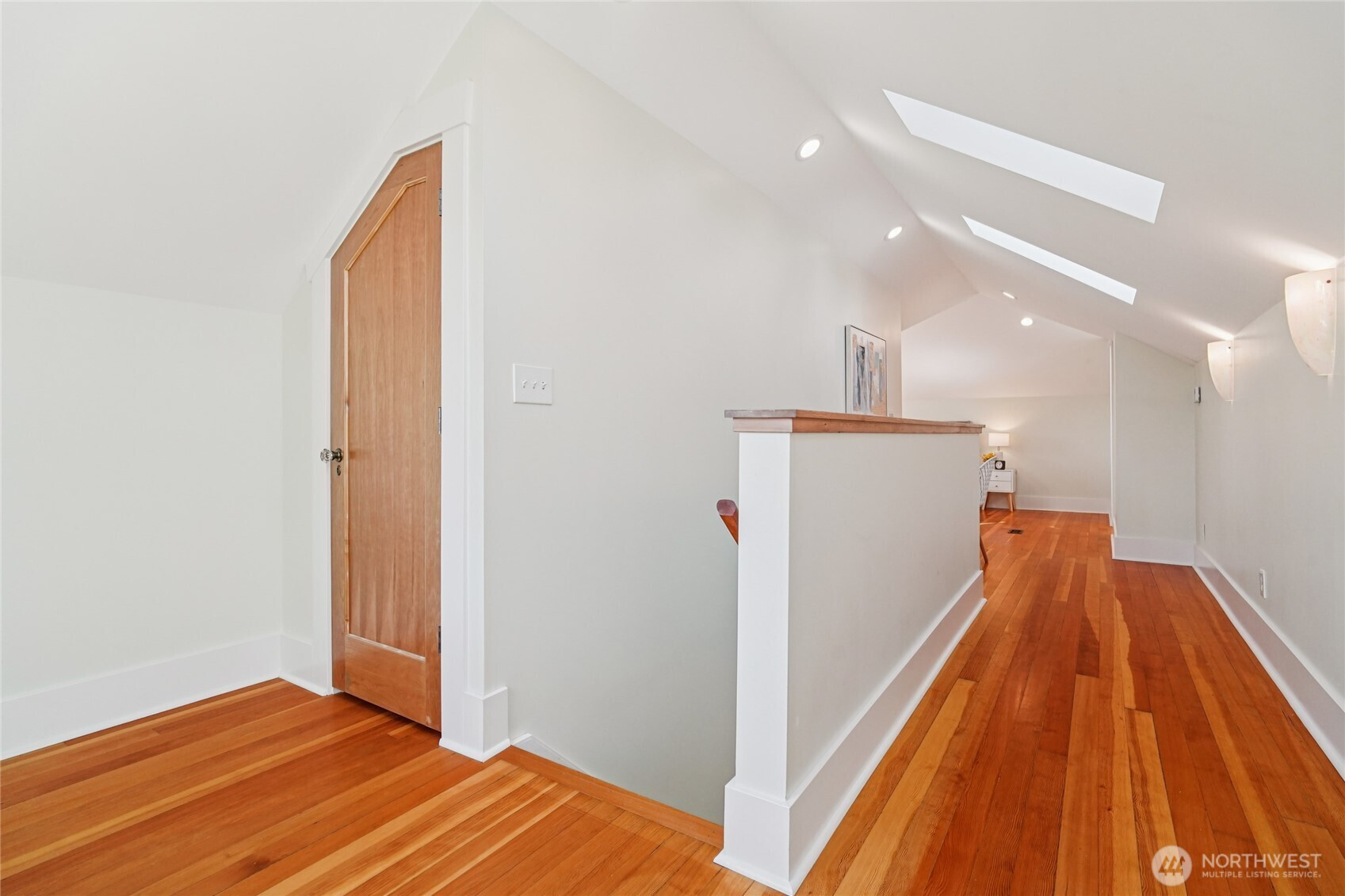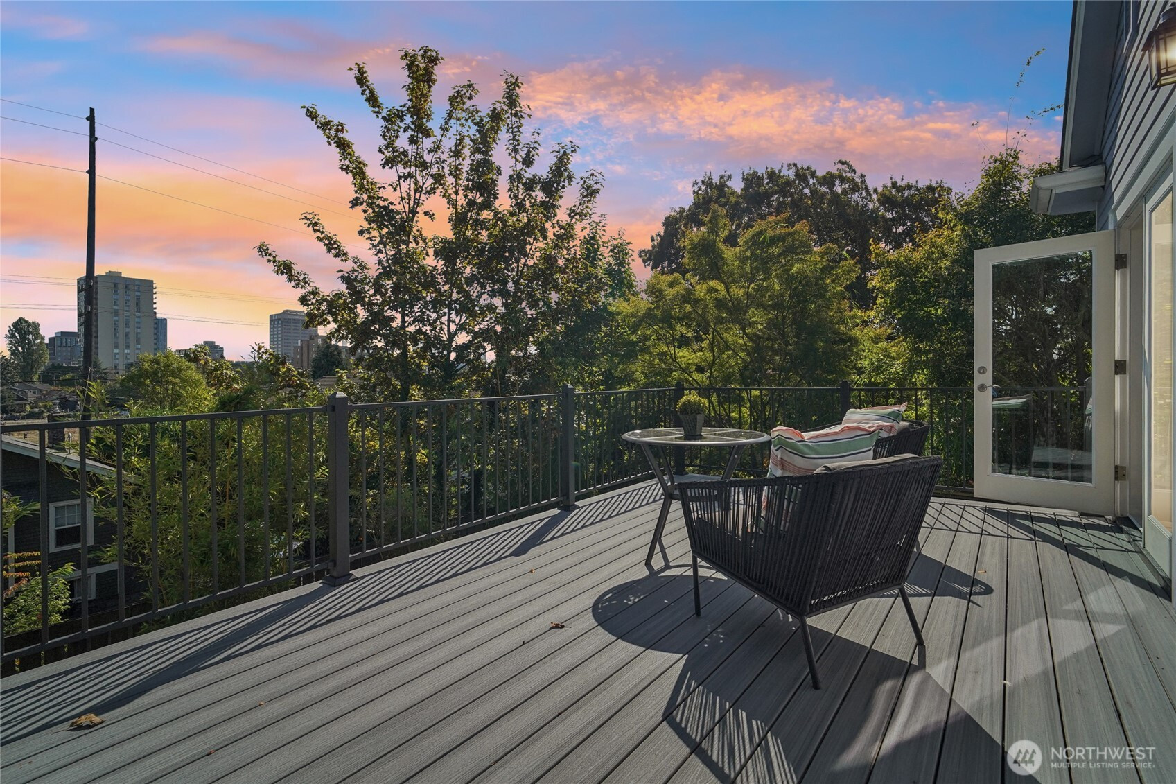 Wallingford charm and thoughtful updates shine in this beautifully maintained home. Original leaded glass, a welcoming front porch, and refinished hardwoods set the tone in this light-filled, notably quiet space given its central location. The spacious living and dining rooms connect to a bright kitchen with stainless appliances, tile backsplash, and French doors to the Trex deck. Two main-floor bedrooms share a full bath. Upstairs, the skylit primary suite includes a walk-through closet and private 4-piece relaxing bath. The lower level offers a cozy media room, laundry, and loads of storage. Permitted Airbnb studio with its own entrance will subsidize your lifestyle. New sewer line with warranty. This is the home you’ve been waiting for.