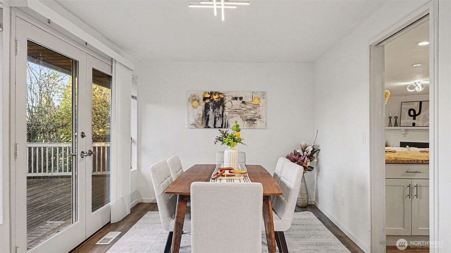 Newly updated beautiful 3 BD 2 BA rambler located in the highly-desired Tamara Hills neighborhood. Top Bellevue schools. Very good privacy. This home has an open and airy floor plan and has been updated with LVP flooring throughout the house. Kitchen and full bath were updated with new countertops and cabinets. 2 gas fireplaces. New interior paint, new fireplace finish, new lights and switches, new curtains. This home is perfect for entertaining with three sets of French doors leading out two spacious decks. French doors + windows facing West allows for plenty of bright, natural light. Keep it cozy with two gas fireplaces, or stay cool in the summer with central A/C. 2 car garage. Mature landscaping. Top-rated, award-winning schools! Quiet neighborhood. Easy access to grocery, highway, parks. Great home to move in. Pre-inspected.