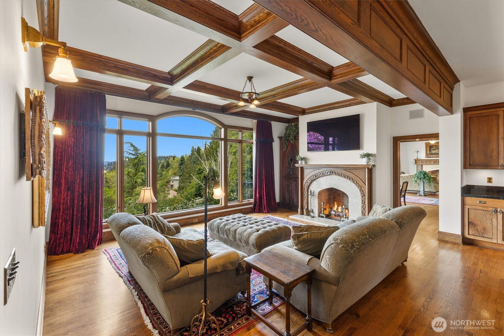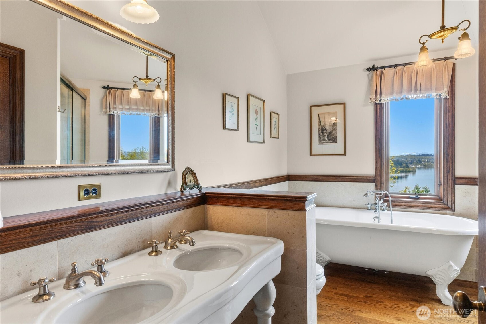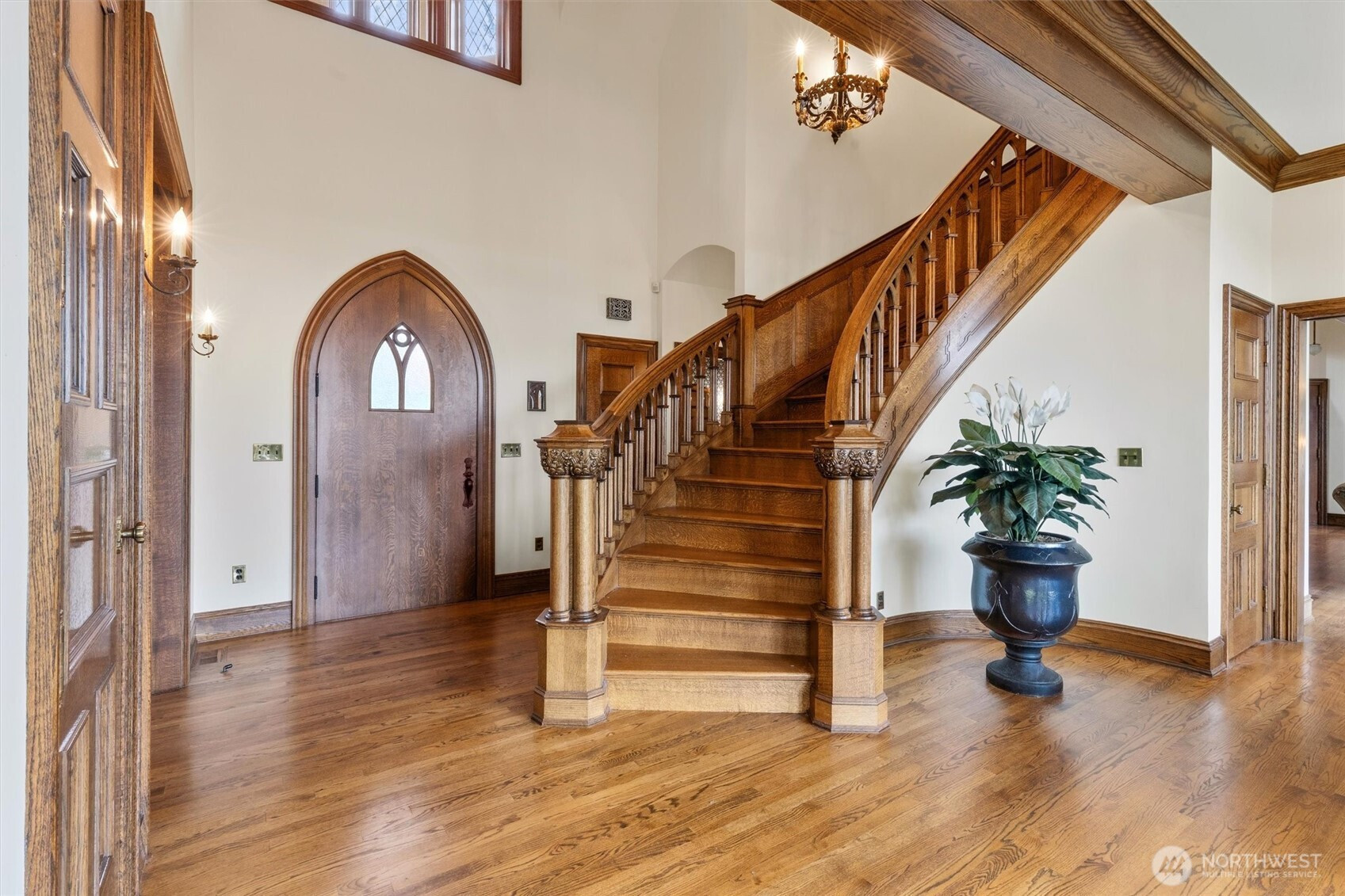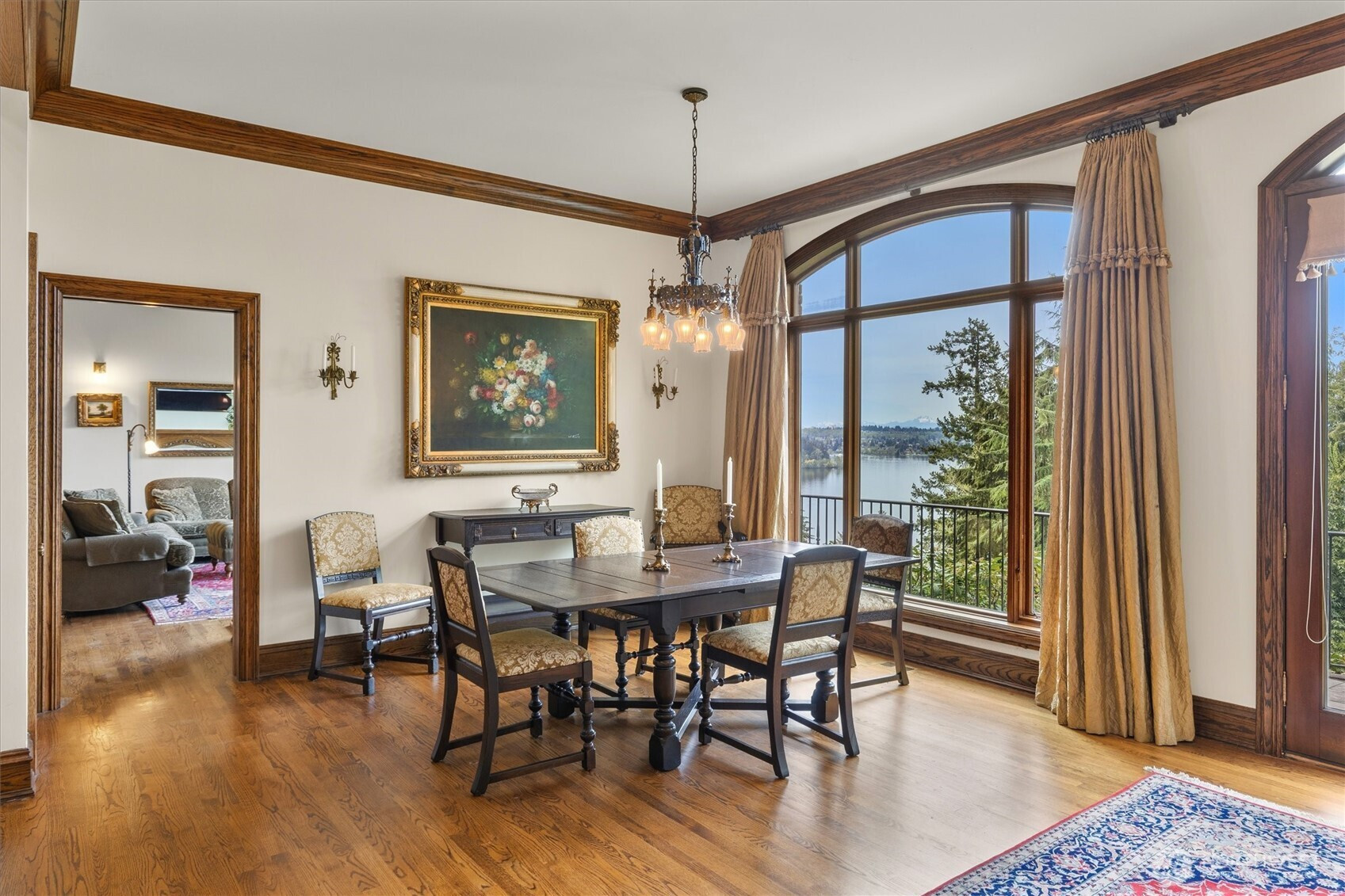 Perched on Mercer Island with sweeping views of Lake Washington and the Seattle skyline, this one-of-a-kind custom residence blends old-world craftsmanship with timeless Northwest elegance. Built in 1998 and inspired by the grandeur of the iconic Stimson-Green Mansion, this home captures rare architectural detail and vintage charm at every turn. Enter through the custom 8-foot door and marvel at the grand staircase with exact molds detailed from the Stimson-Green Mansion, antique European lighting and rich quarter-sawn oak floors span throughout the entire home - no detail was missed. Designed for both comfort and statement living, the home offers four fireplaces, including three marble gas fireplaces and a dramatic double-sided centerpiece. Expansive windows frame breathtaking views from every room, filling the home with natural light and ever-changing scenery.The exterior is equally remarkable, showcasing hand-molded brick from South Carolina, a cedar shake roof, and original copper flashing and gutters—details that speak to enduring quality and craftsmanship. Outdoors, a tranquil fountain enhances the serene setting. A spacious two-tandem bay garage provides ample storage or flexibility for a home gym, workshop, or creative space. This is more than a home—it’s a rare opportunity to own a piece of artistry, where historic inspiration meets modern livability in an extraordinary Mercer Island setting. Visit: https://login.focusedmediacollective.com/4725-W-Mercer-Way