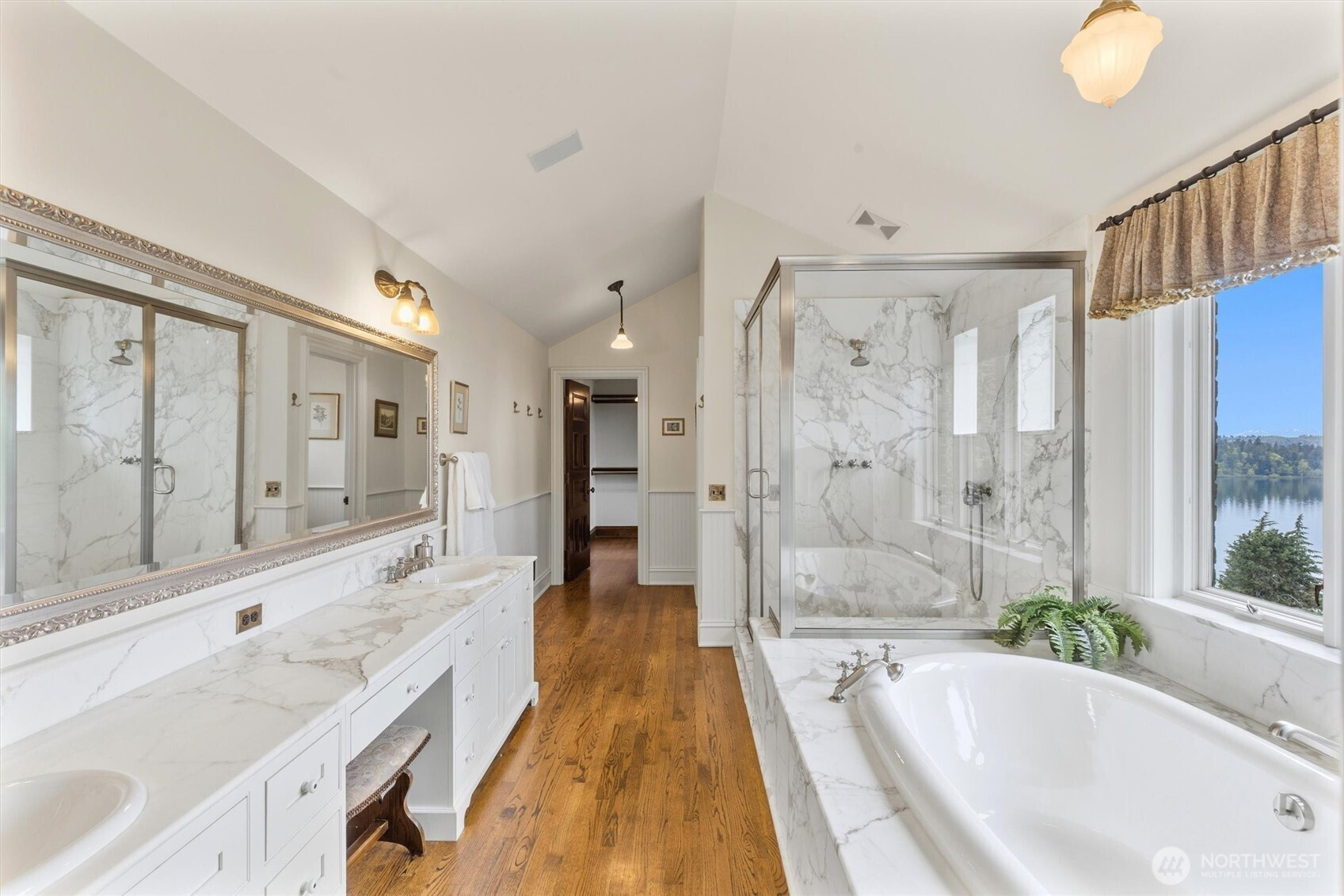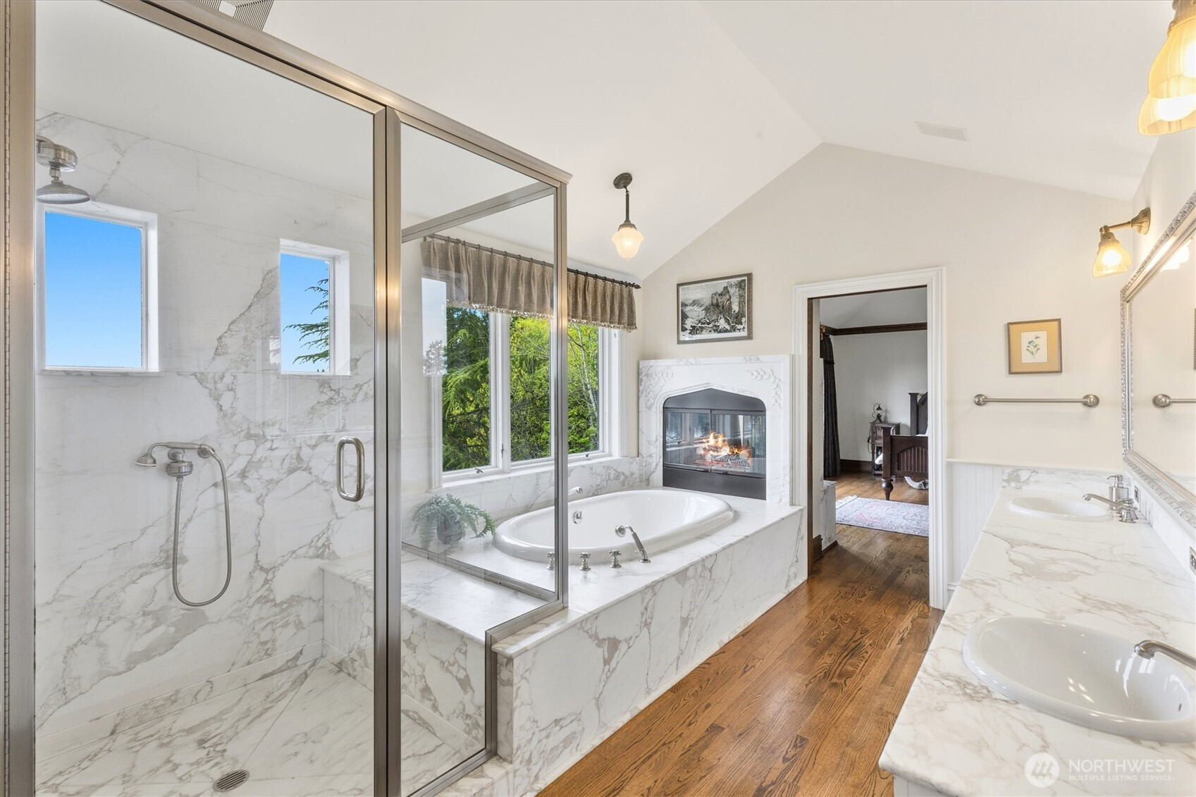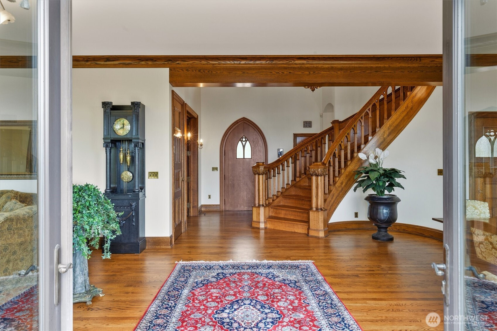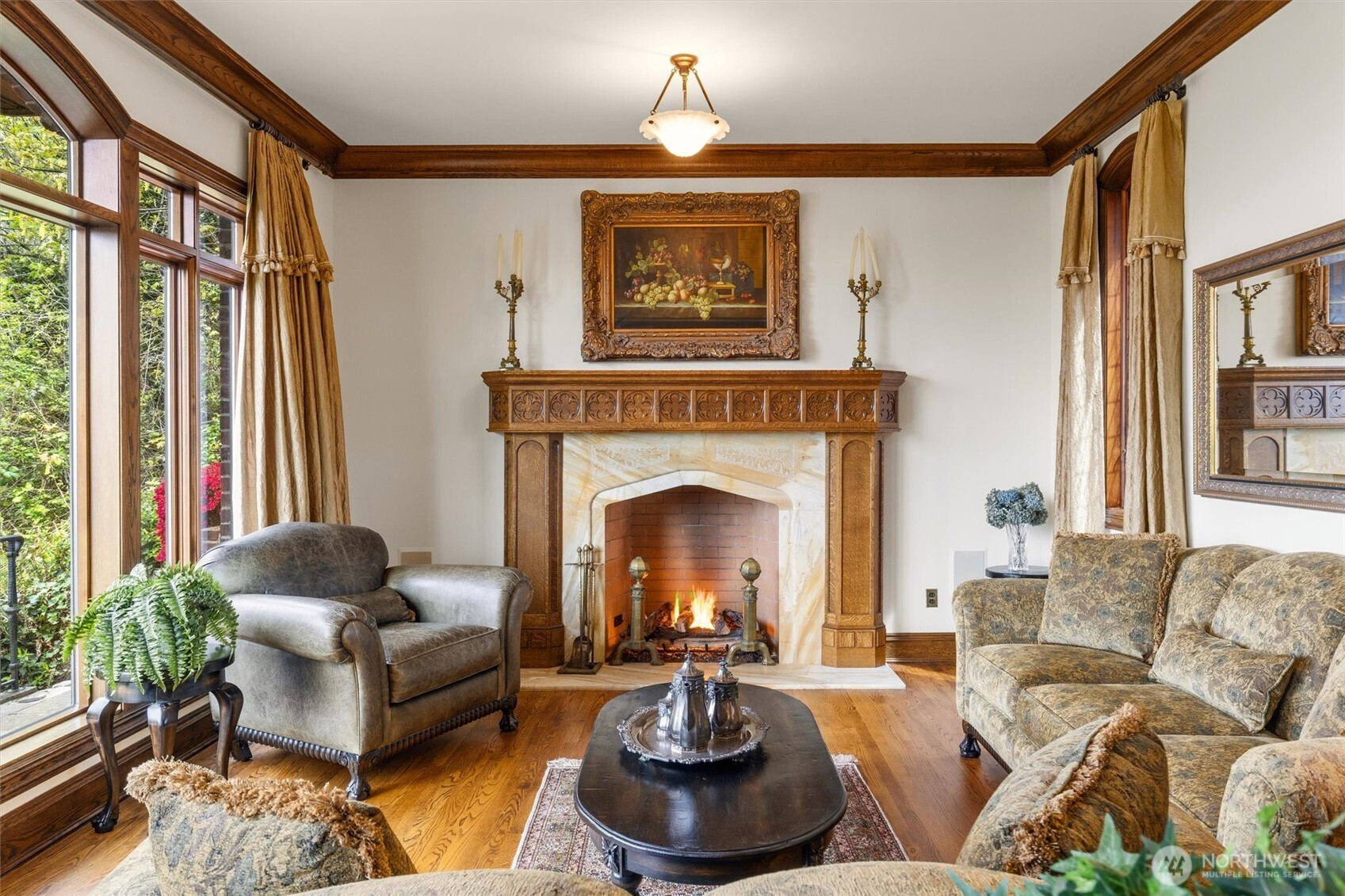 Perched on Mercer Island with sweeping views of Lake Washington and the Seattle skyline, this one-of-a-kind custom residence blends old-world craftsmanship with timeless Northwest elegance. Built in 1998 and inspired by the grandeur of the iconic Stimson-Green Mansion, this home captures rare architectural detail and vintage charm at every turn. Enter through the custom 8-foot door and marvel at the grand staircase with exact molds detailed from the Stimson-Green Mansion, antique European lighting and rich quarter-sawn oak floors span throughout the entire home - no detail was missed. Designed for both comfort and statement living, the home offers four fireplaces, including three marble gas fireplaces and a dramatic double-sided centerpiece. Expansive windows frame breathtaking views from every room, filling the home with natural light and ever-changing scenery.The exterior is equally remarkable, showcasing hand-molded brick from South Carolina, a cedar shake roof, and original copper flashing and gutters—details that speak to enduring quality and craftsmanship. Outdoors, a tranquil fountain enhances the serene setting. A spacious two-tandem bay garage provides ample storage or flexibility for a home gym, workshop, or creative space. This is more than a home—it’s a rare opportunity to own a piece of artistry, where historic inspiration meets modern livability in an extraordinary Mercer Island setting. Visit: https://login.focusedmediacollective.com/4725-W-Mercer-Way