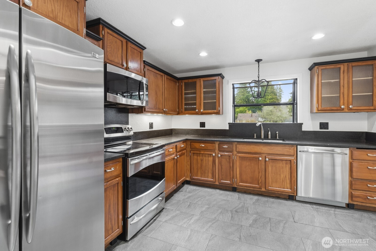 Impressive Columbia City home blocks from light rail, dining, shopping, and entertainment. This home offers 5 bedrooms and 3 full bathrooms. The bright main floor features vaulted ceilings, skylights, a fireplace, and an open kitchen with granite countertops, stainless steel appliances, hardwood and tile floors, under-cabinet lighting, and bar seating. The primary ensuite includes generous closet space, skylit bathroom, & sternal lights. Two additional bedrooms on the main level. The dining area flows to a large deck with a two-tier backyard, including a fire pit & full fencing. The lower level offers two bedrooms, a flexible family room with a wet bar, bath, wine closet, laundry, covered patio. Dog & Genesse Park are minutes away.