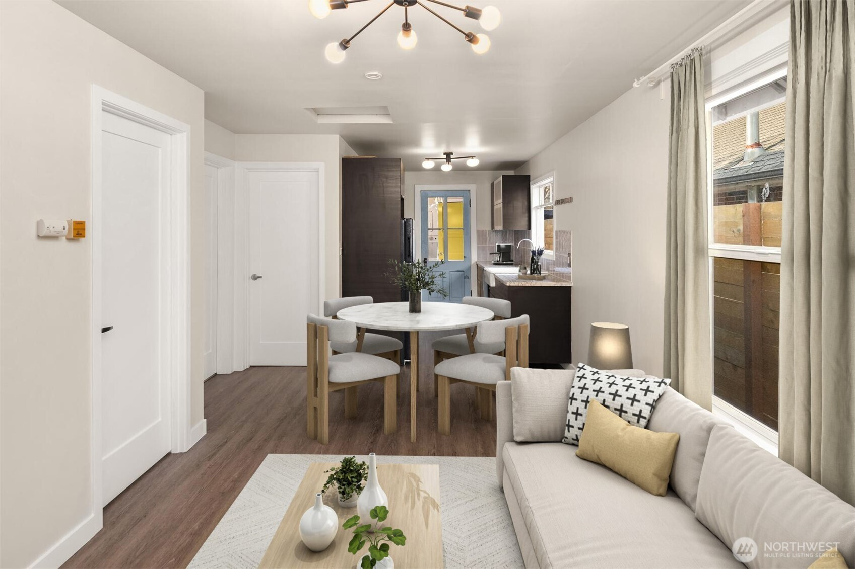 Set in an unbeatable location right across from Columbia Park and Library, this irresistible 1933 cottage is refreshed and ready to go! Move right in to an open layout that shines with upgraded flooring, designer lighting, newer windows, and a modern paint palette. You can whip up meals with ease in the stylish kitchen featuring sleek espresso-toned cabinets, slab stone surfaces, an artisan tile back splash, and extra-large farmhouse sink. Gather or relax in the integrated living and dining areas with tall windows and crisp white Craftsman-style millwork. Two bedrooms look out on the surrounding greenery, with a newer full bathroom. It’s the perfect condo alternative! Plan your victory garden or outdoor living area in the fenced backyard with raised planting bed, or step out to the pedestrian-only walkway and enjoy the expansive park lawn and walking trails that await right outside your front door. Rated a Walker’s Paradise, you’re just a stroll away from Columbia City’s shopping, dining, restaurants, PCC and coffee shops. Just blocks to six bus lines and minutes from the light rail station, too! L2 zoning means you can live in it OR rent it out while you get permits for 2 townhouses (buyer to verify). An incredible opportunity for peaceful living and potential expansion within easy reach of everything Seattle has to offer.