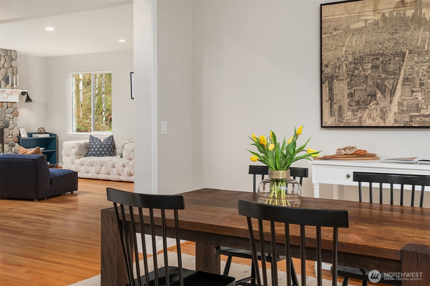 Welcome to this beautiful John Day home in Twin Falls Estates, set on over 3.5 acres of serene North Bend landscape. With 4 bedrooms plus an office and upstairs bonus room, the layout offers the ideal balance of space and flexibility. The kitchen opens directly to the expansive, park-like backyard, perfect for entertaining, play, or simply enjoying the peaceful setting. The home has been thoughtfully updated with a remodeled kitchen featuring a new Wolf stovetop and Viking hood, along with an updated powder room, brand new fireplace, custom closets, and new light fixtures throughout. Additional highlights include oak hardwood floors, A/C, a presidential composition roof (2021), a backyard storage shed, and generous garage storage. What truly sets this home apart is its setting. Located just moments from Twin Falls, one of the most scenic hikes in the area, plus miles of trails right outside your door. The surrounding Snoqualmie Valley offers endless outdoor access, from riverfront spots along the Snoqualmie River to hikes like Rattlesnake and Mount Si. Enjoy nearby views of Mount Washington, with the Cascade foothills creating a stunning natural backdrop. For year-round adventure, skiing at Snoqualmie is just a short drive away. Enjoy all of this while still being close to amenities, Bellevue, and Seattle. A rare opportunity to own a well-maintained, modern home on acreage in North Bend.