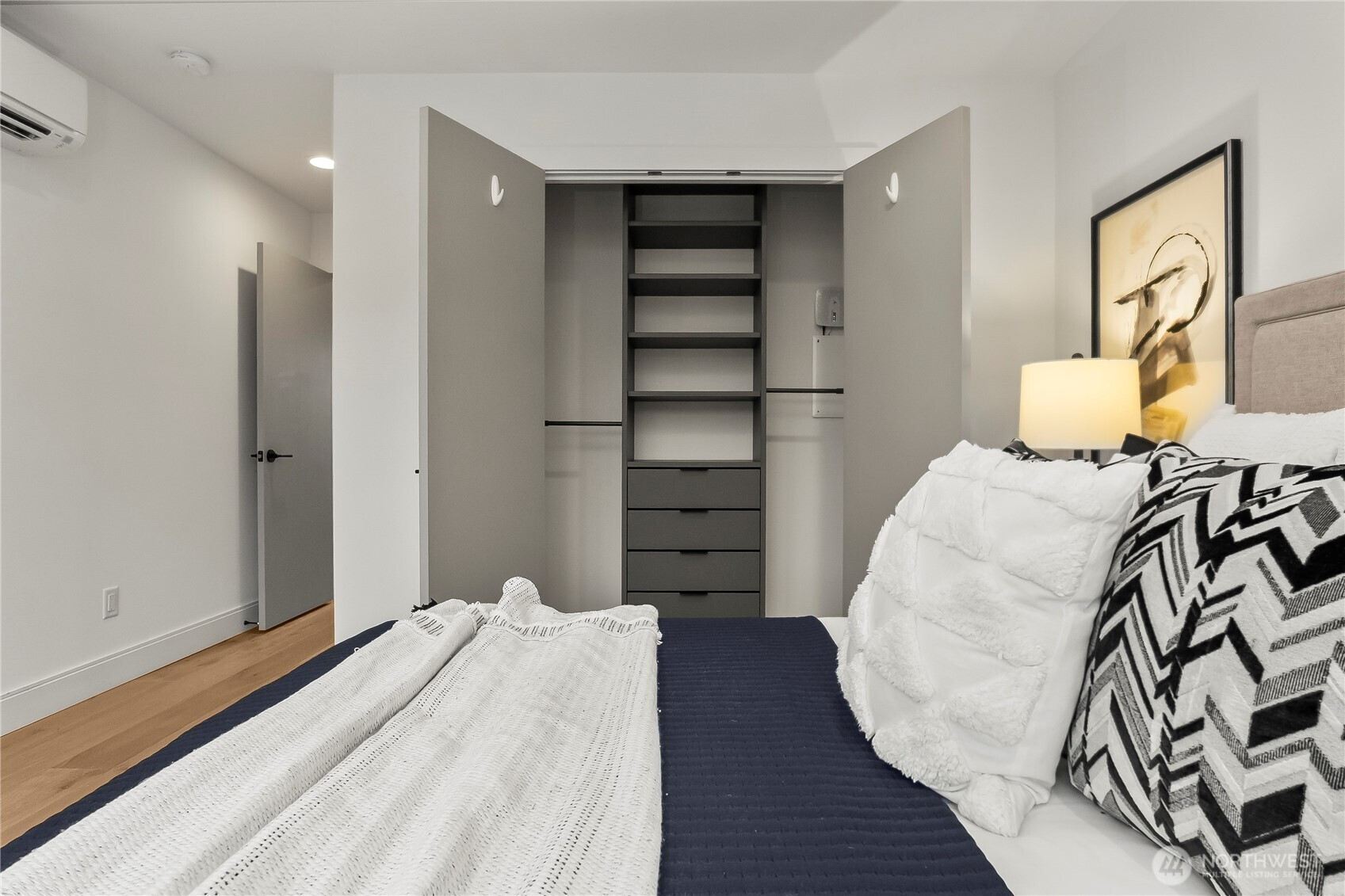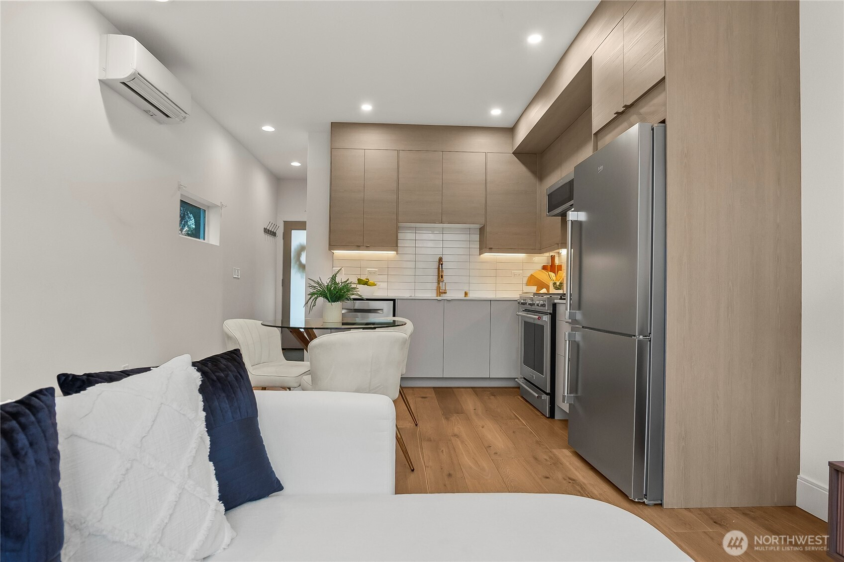Discover the perfect blend of modern design and timeless elegance in this spacious Fremont end-unit townhome. Featuring custom elements and abundant natural light, the home showcases hardwood floors, exquisite tile work, and a thoughtfully planned layout. The gourmet kitchen boasts premium appliances, quartz countertops, and high-end cabinetry for the discerning chef. Upstairs, the generous primary suite offers two walk-in closets and a luxurious bath, complemented by a second bedroom and bathroom—both with heated floors for added comfort. Only a few blocks from Woodland Park, enjoy breathtaking views from the rooftop deck and the popular Fremont neighborhood.