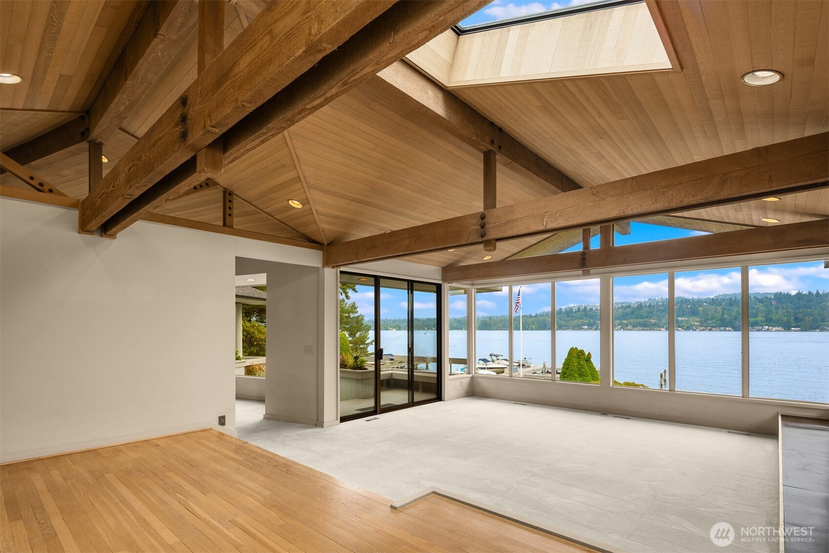 Commanding fantastic Mt Rainier vistas across pristine Lake WA shores, this extraordinary 4,450 sq ft architectural gem presents a rare synthesis of possibility. 4 well-proportioned BR (including dual primary suite potential) & 4.5 bath create an enviable canvas for your vision. Easy road access to this residence unfolds as an entertainer's dream – sun-drenched living spaces overlooking tranquil waters to level grounds for gatherings. Multiple terraces designed for grand-scale hospitality. 100' + of low bank private waterfront w/majority dock ownership accommodating serious mariners. Quick access to I-90 corridors & Mercer Island's finest amenities. Crowned by top-rated schools, this is a legacy property awaiting its next visionary steward!