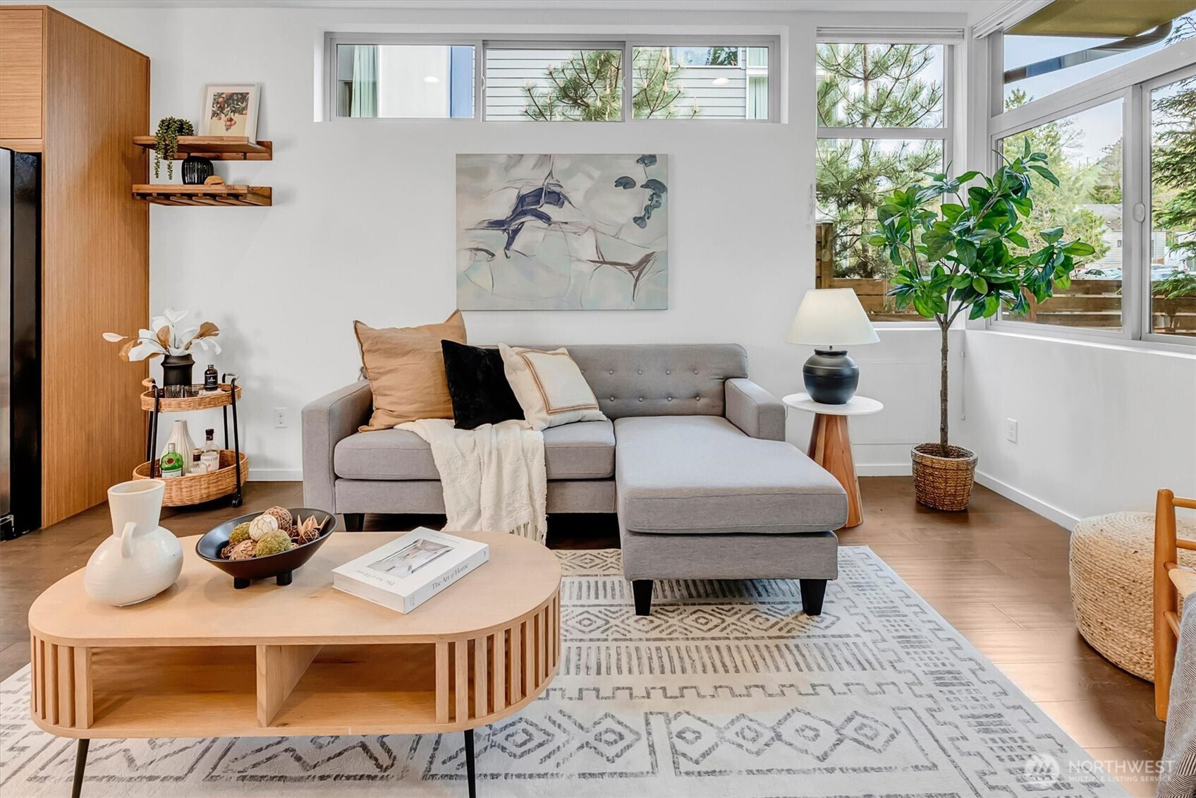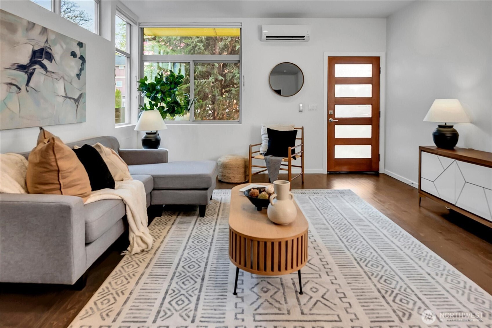 Live just 10 minutes from Downtown Seattle in this Four Star Built Green townhome, ideally positioned in West Seattle’s Delridge neighborhood near RapidRide, neighborhood parks, and a growing mix of local favorites. With over 1,500 square feet of thoughtfully designed multi level living, this home blends modern style with everyday comfort and efficiency. The main floor offers a quiet, private setting with an open concept layout, engineered hardwood floors, soaring ceilings, and abundant natural light. The spacious great room creates an inviting atmosphere that’s perfect for entertaining. The sleek kitchen features designer finishes, stainless steel appliances, and a gas range. A convenient powder room rounds out the main level.Upstairs, two bedrooms offer flexibility for guests, a home office, or creative space. The top floor is dedicated to the expansive primary suite, comfortably sized for a king bed and additional furnishings. The ensuite bath delivers a spa inspired experience with a walk in shower and double vanity. At the top, a stunning rooftop deck showcases territorial and harbor views with plenty of space to gather and a gas line for grilling. Built Green certification means energy efficiency, including a tight thermal envelope for better temperature control, a mini split system for year round comfort, and an on demand water heater to help reduce utility costs. With a dedicated parking space and no HOA dues, this home offers the best of modern Seattle living.