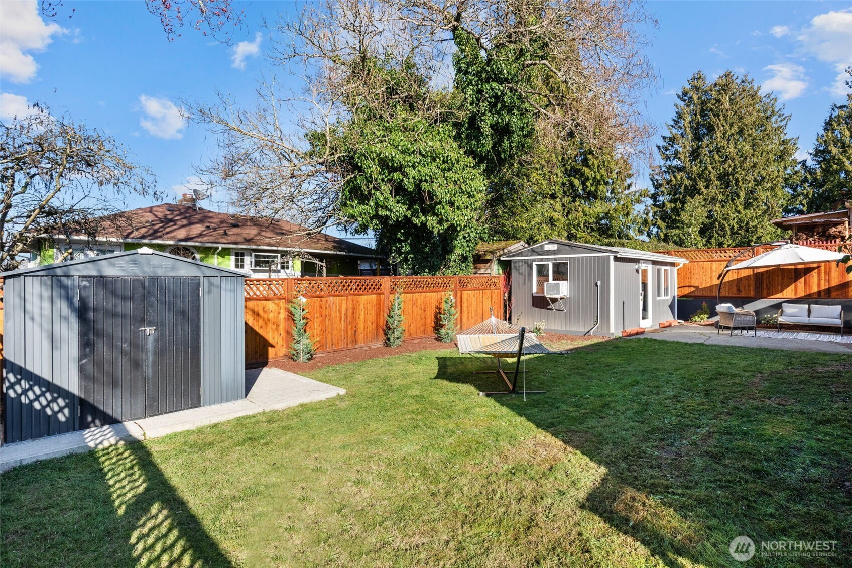 Tucked away on a quiet dead-end private street in Seward Park, this beautifully updated single-story home offers privacy, comfort, and versatility. Abundant natural light and warm finishes create an inviting atmosphere, while generous living areas center around a cozy gas fireplace, ideal for everyday living and entertaining. Thoughtful updates in recent years enhance the functional 3 bedroom, 1.5 bath layout, and air conditioning provides added comfort year-round. The fully fenced backyard is a true highlight, featuring mature, thoughtfully designed landscaping that creates privacy and charm. An inviting patio and covered hot tub extend the living space outdoors, making it easy to enjoy the yard in every season. A detached 150 square foot cottage provides flexible space for a home office, studio, guest room, or play area. Just blocks to Seward Park, neighborhood coffee, and local favorites, with Columbia City close by. Don't miss out on this great home!