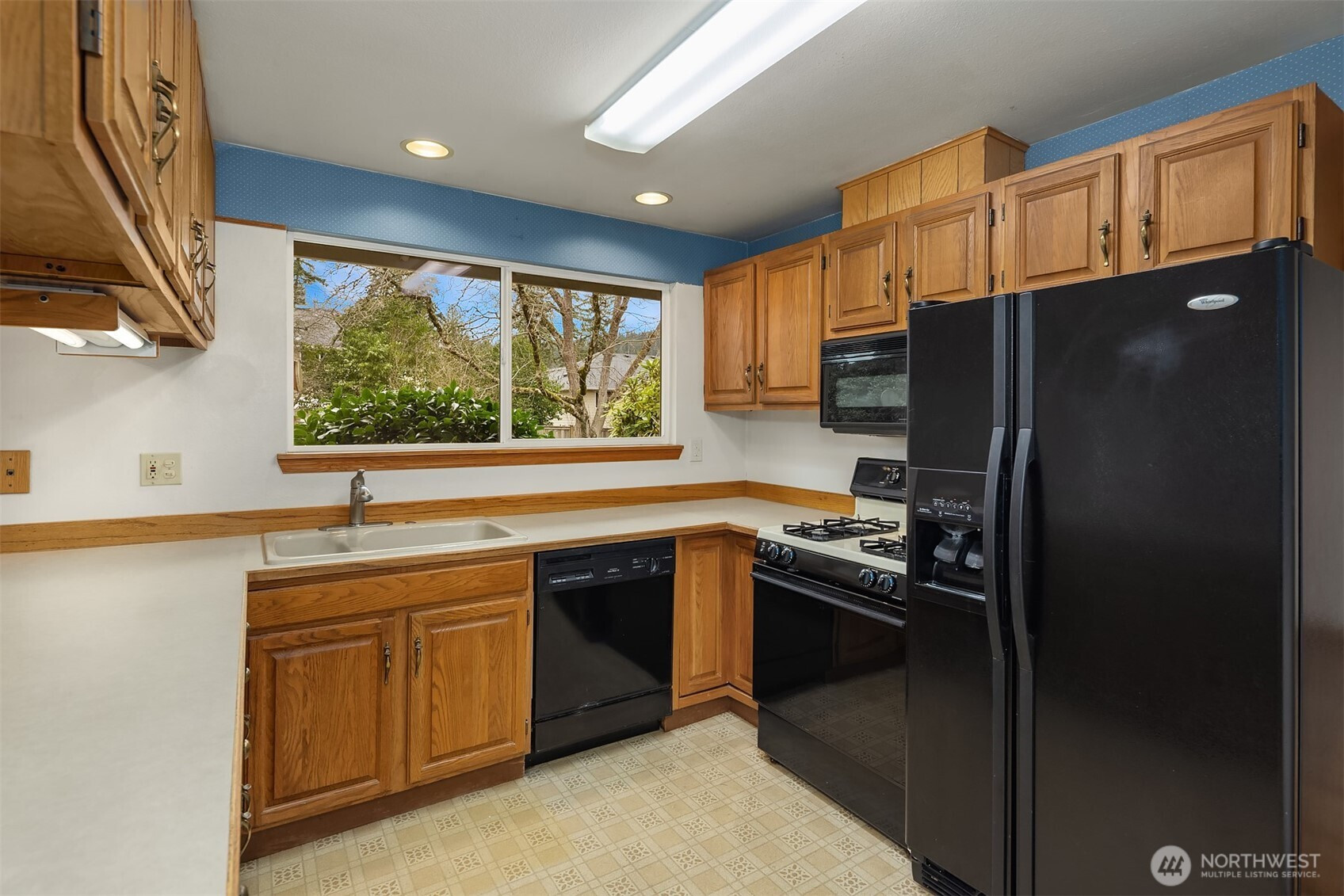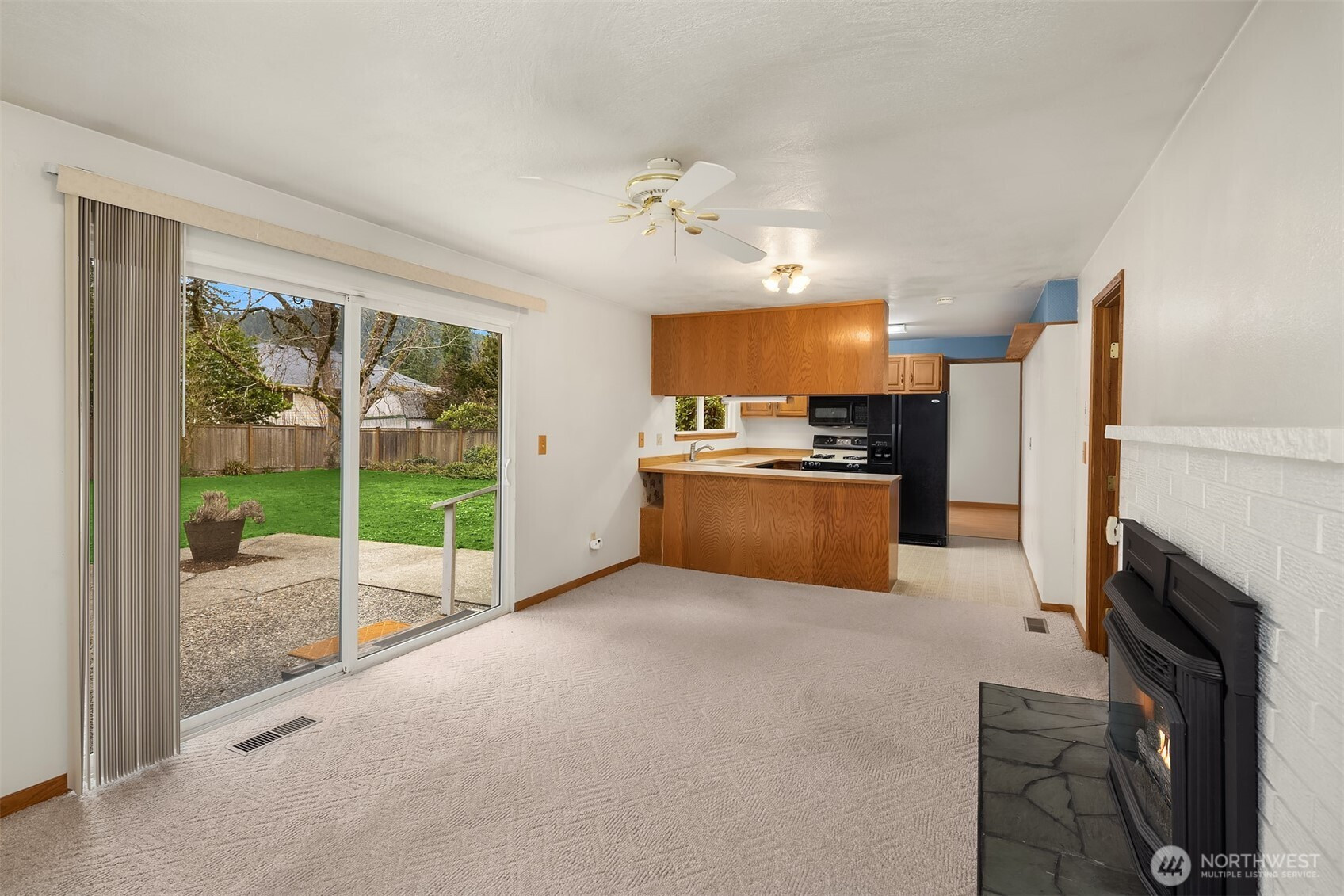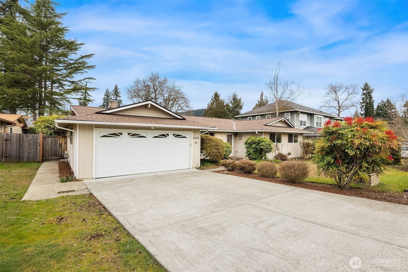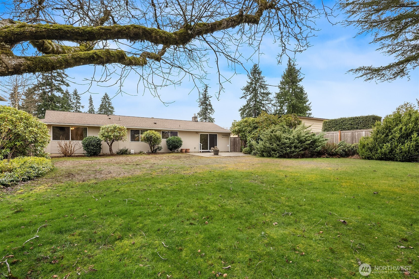 Opportunity knocks! Add your own signature updates to this 4-bedroom rambler on a level and spacious lot! Its solid construction has all the right spaces to entertain or relax with light-filled formal gathering spaces flowing into a cheerful kitchen and comfy bonus room both overlooking the lovely back yard. Cozy up to the brick-surround gas fireplace, or step out to the sunny patio and level play lawn beyond. Also enjoying the scenery is your peaceful primary suite with its own full en-suite bath. Two car garage and newer roof, too! This investor's dream is nestled in a great neighborhood near schools, shops, parks, trails, May Creek, and the Renton Landing.