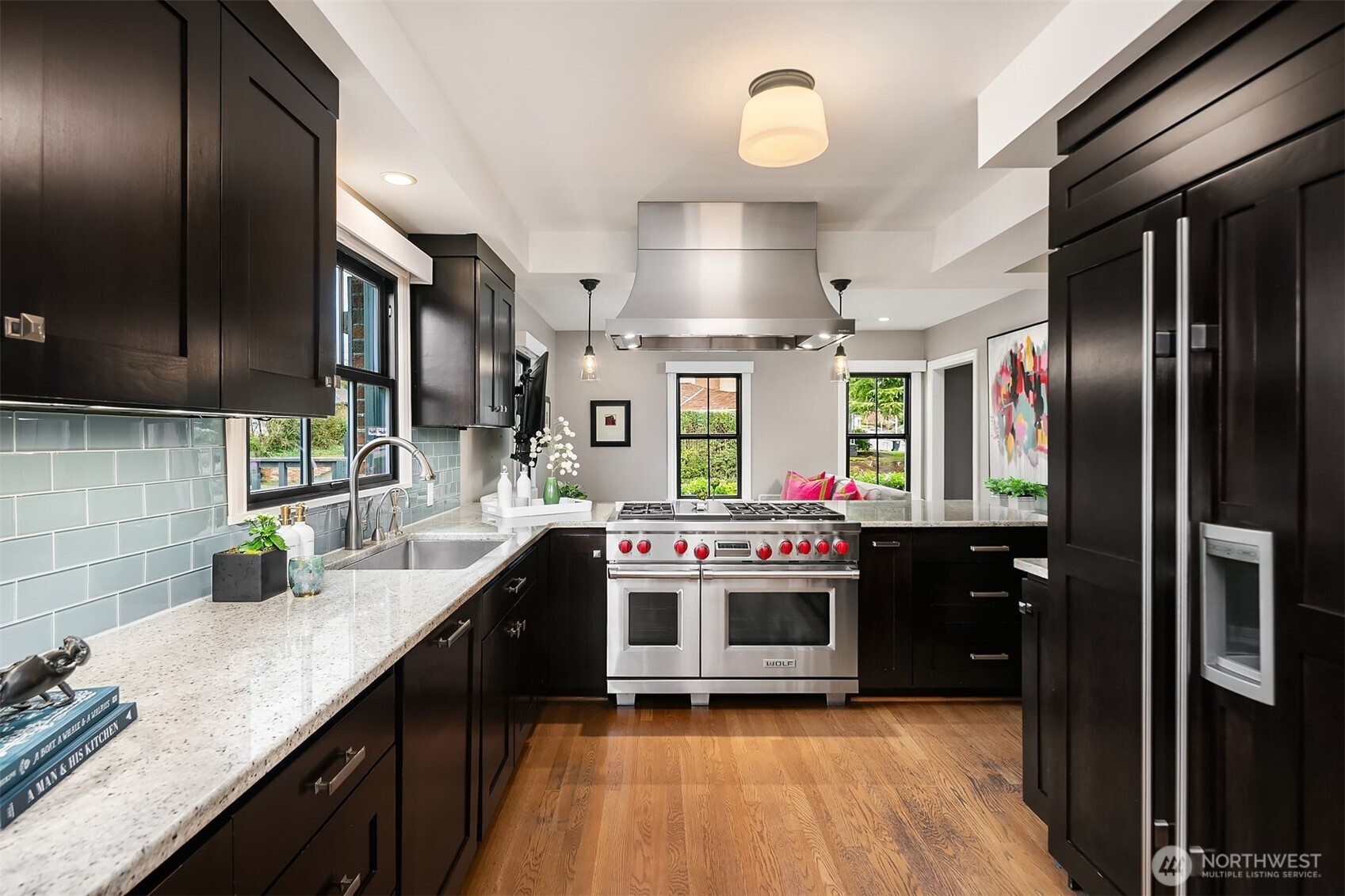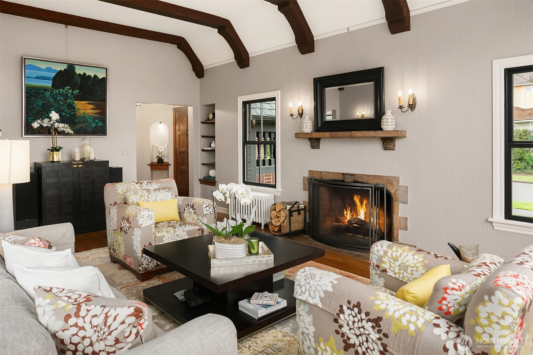 Nestled on a prime corner lot in coveted Hawthorne Hills, this inviting 4 bed, 2.5 bath home effortlessly blends classic comfort with modern lifestyle needs. Quiet, tree-lined streets and a sense of community define this Seattle neighborhood known for serene residential character and excellent schools. Step inside to discover a bright, open living space anchored by elegant details and abundant natural light. Vaulted ceilings and picture-perfect windows frame lush greenery and peaceful outdoor vistas, while a spacious living area flows seamlessly to a well-appointed kitchen with Wolf, Sub Zero and Miele appliances, perfect for everyday living and entertaining alike. Glass doors extend your living space to the outdoors where manicured grounds and room for al fresco dining await. The thoughtful layout includes four generous bedrooms, with plenty of space for guests or a home office. Location is everything. Enjoy easy access to the Burke-Gilman Trail, neighborhood parks, Metropolitan Market, and just minutes to University Village, UW, Magnuson Park and downtown Seattle. With a detached garage and ample outdoor space on this desirable lot, this home offers the ideal balance of tranquility and convenience in one of NE Seattle’s most sought-after communities.