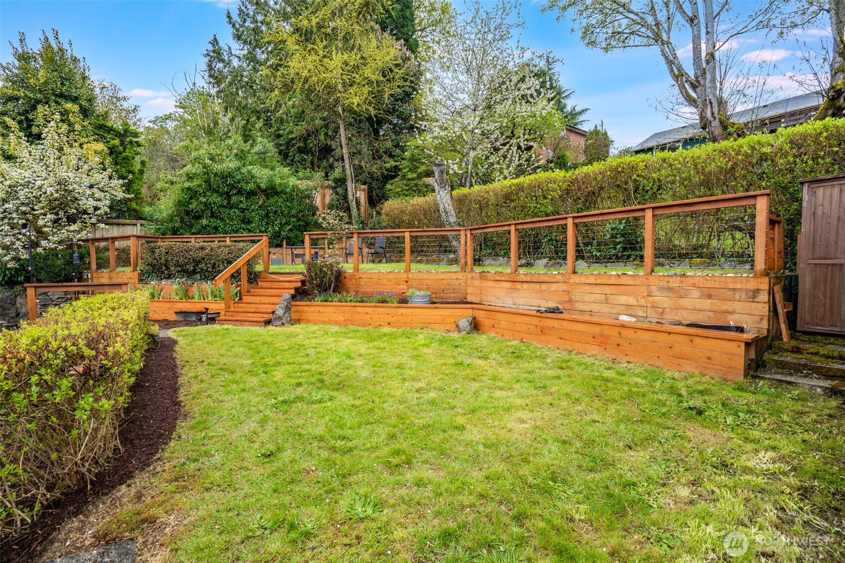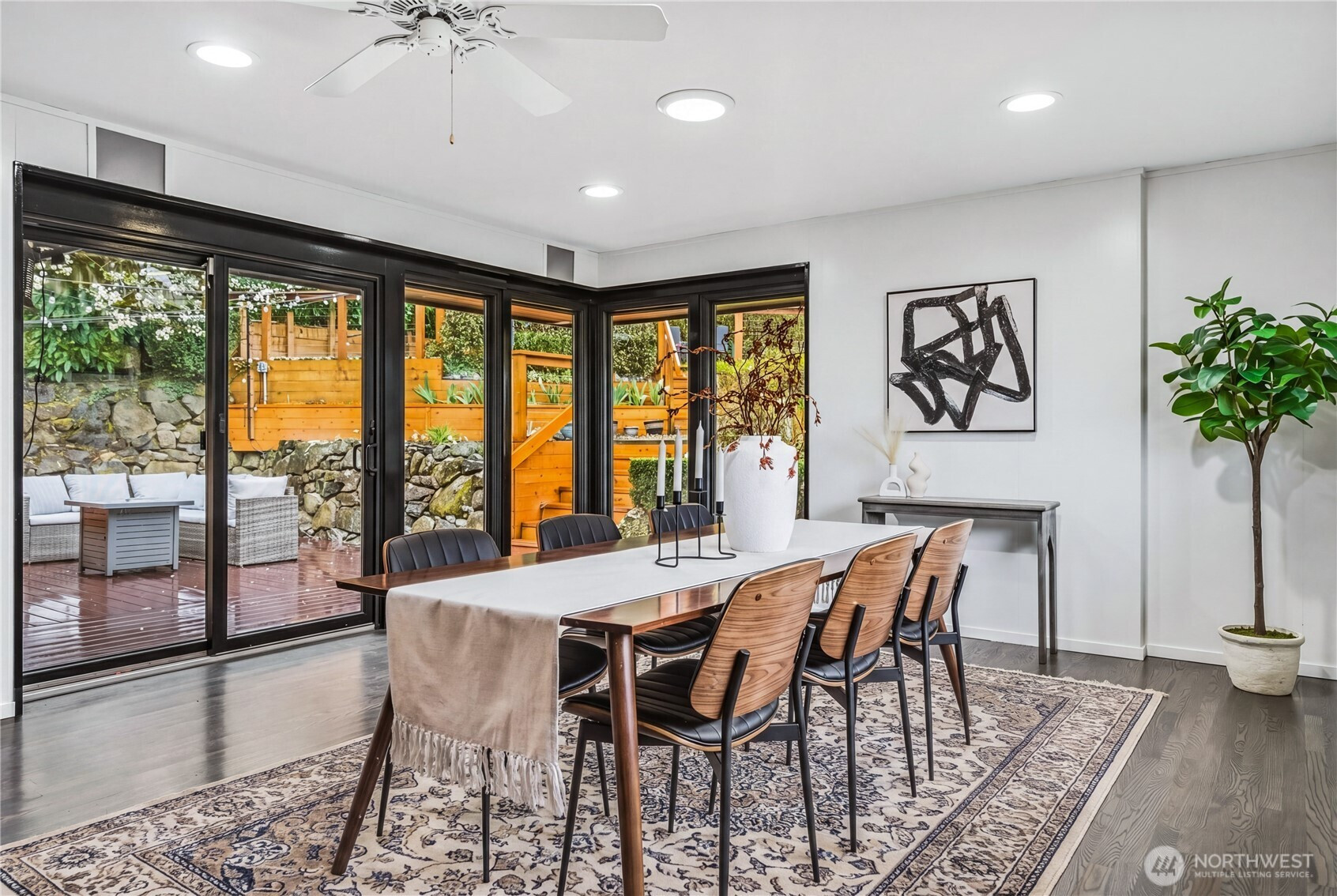 Welcome to this beautiful, lovingly maintained mid-century home in coveted Seward Park, perfectly situated just moments from Lake Washington and all the charm, scenic pathways, and outdoor recreation the neighborhood has to offer. Nestled on a mature, peaceful, and private lot, the thoughtfully designed multi-tiered yard captures serene peek-a-boo views of the lake while offering lush, tranquil spaces to relax and unwind. Inside, you’ll find 4 bedrooms, 2 bathrooms, and a versatile bonus living area, providing flexible and convenient living for today’s lifestyle. Traditional Shoji slider doors open seamlessly to a spacious, wrap-around trex deck, creating an ideal setting for effortless indoor-outdoor entertaining. Thoughtfully updated throughout, this home features an updated electrical panel (2018), central A/C (2022), a remodeled kitchen and bathrooms along with new windows (2019), a new roof in 2017, and a garage door replaced in 2020. With too many updates to list, this move in ready gem truly has it all. Welcome home!