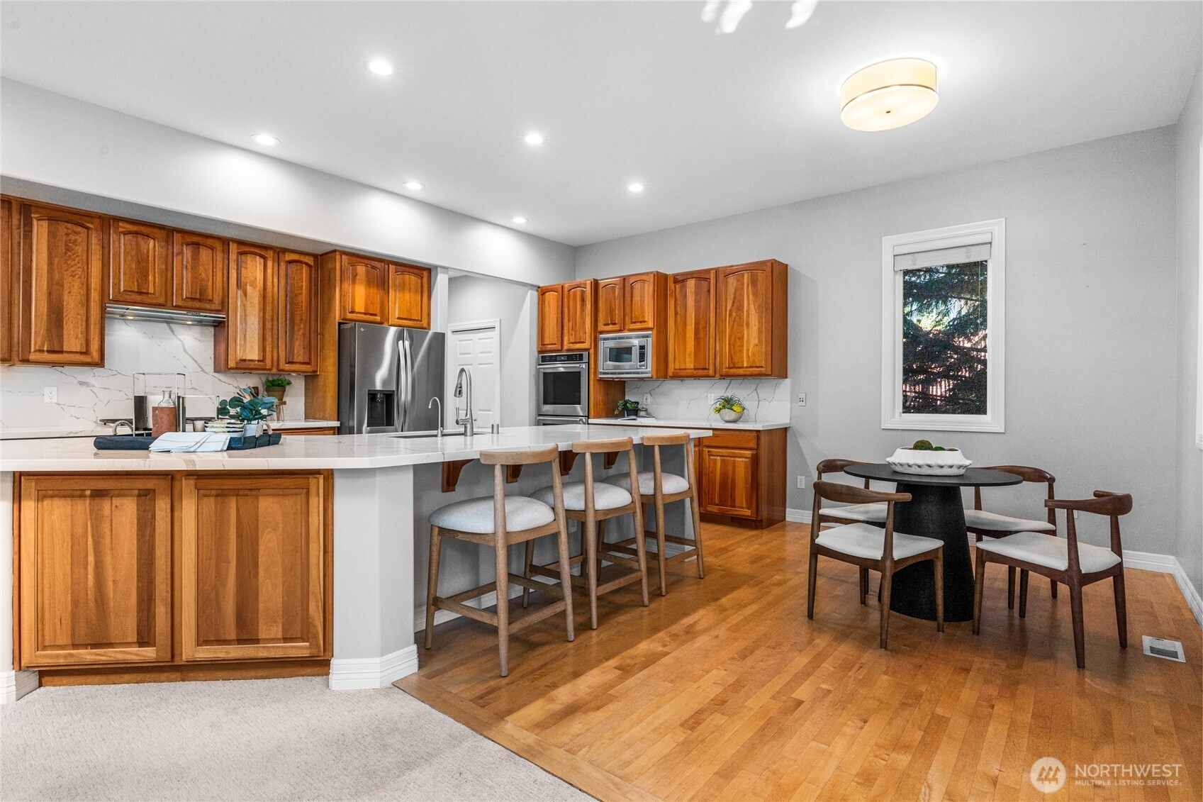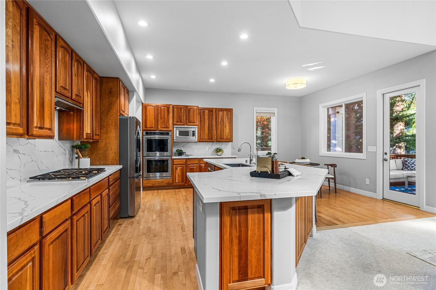 (503) 893-88744250 sq ft of refined, tranquil living space in the coveted Silverleaf neighborhood. Backing to a private greenbelt on a quiet cul-de-sac, this updated home offers an open floor plan w/ soaring ceilings, chef’s kitchen w/ oversized island & stainless appliances, custom glasswork & millwork, built-in speakers, central vacuum, & A/C. Home office/5th bedroom and shower on main floor. Lower level, with separate entry, kitchen, bath, and living area, is ideal for ADU or multi-generation housing. Large unfinished room off 2-car garage is perfect as a wine cellar, theater, or hobby room. Oversized deck for seamless indoor-outdoor living & minimal yard maintenance.