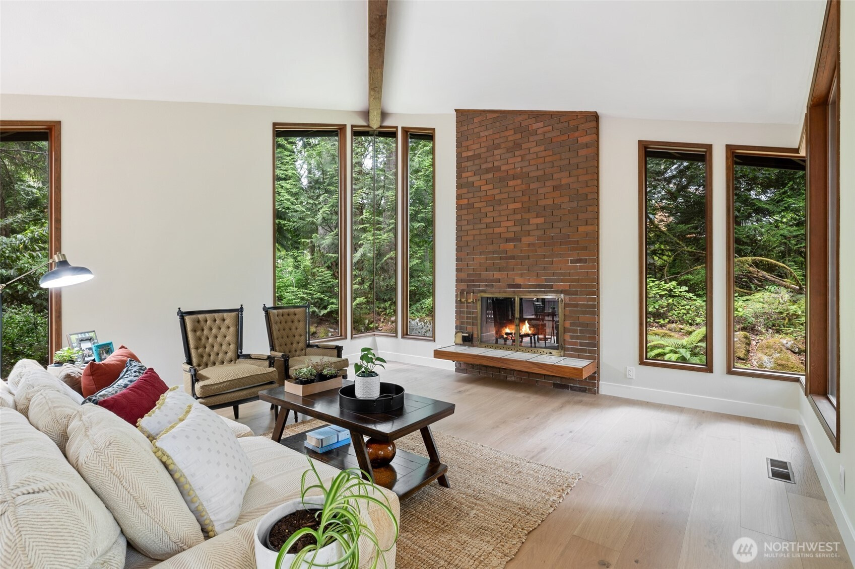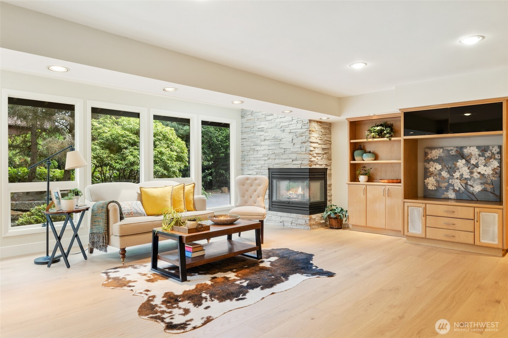 Beautiful, architect designed, quintessential Bridle Trails home. Light filled, fresh pastel color palette, super convenient location. Front door opens to elevated ceiling. Walls of windows bring daylight & entertaining is easy w/ living Rm, family Rm anchored by gas fireplaces. Generous use of millwork. Superior craftmanship, new engineered Hardwood Flrs, new roof, new carpet. Slab granite kitchen counters, wood cabinetry, walk-in pantry. Lrg counter space to prep/cook/entertain. Park like setting, extra lrg deck for summer gatherings. Upstairs master suite w/ sumptuous bath, supersized walk-in closet, balcony, extensive built-ins. 4 more Bdrms, hallway bath. Bonus Rm, wet bar, deck. Award winning Lake Washington schools. Welcome Home!