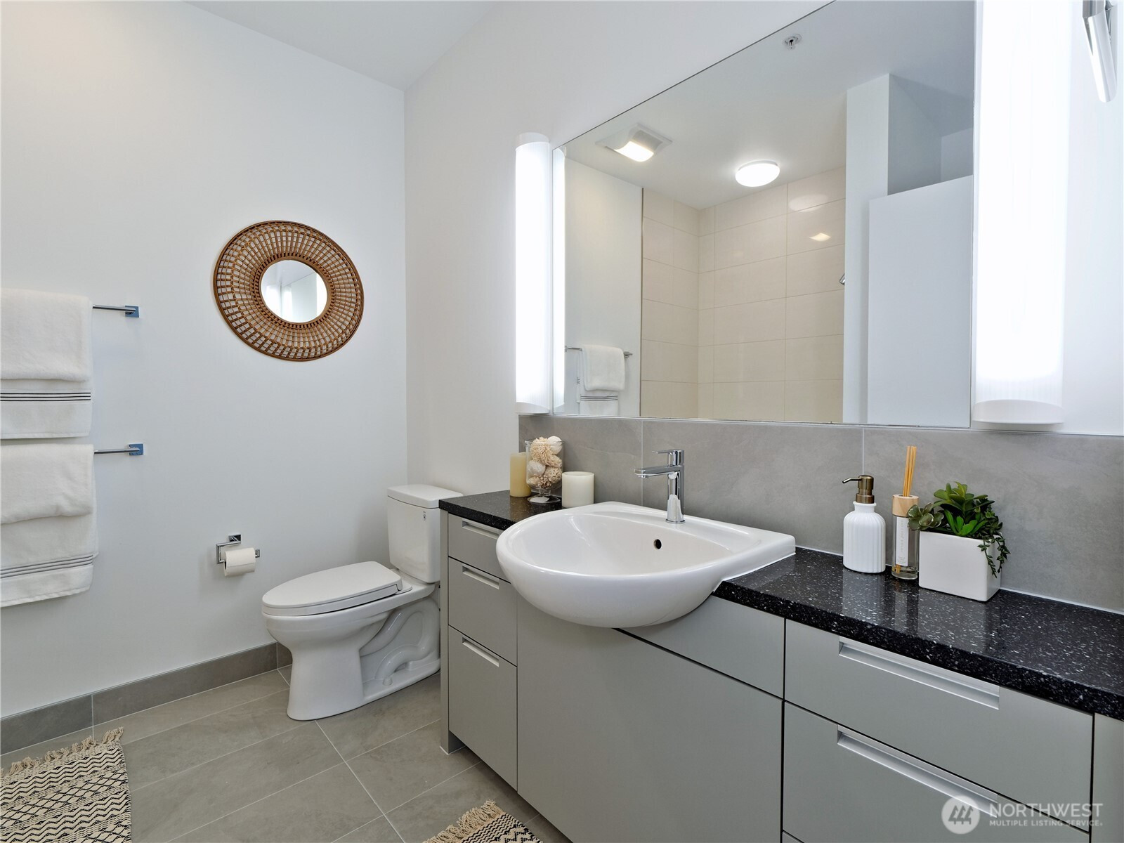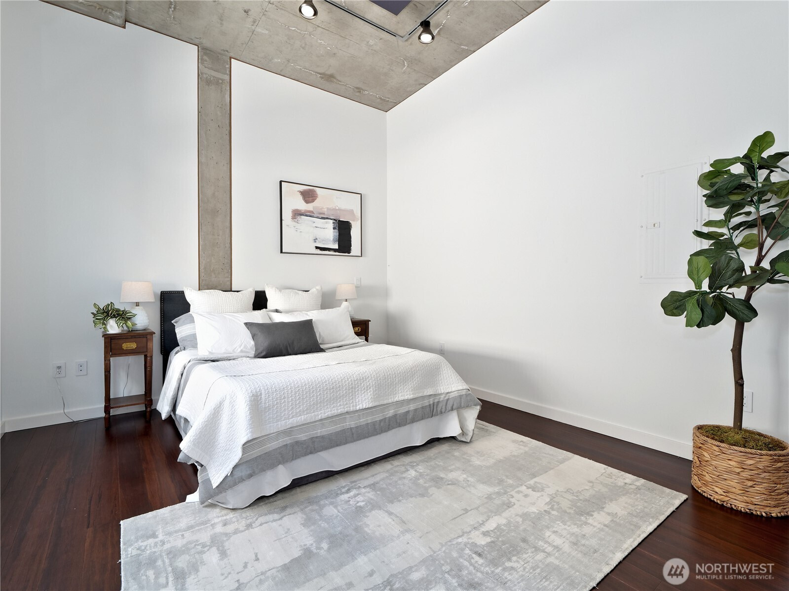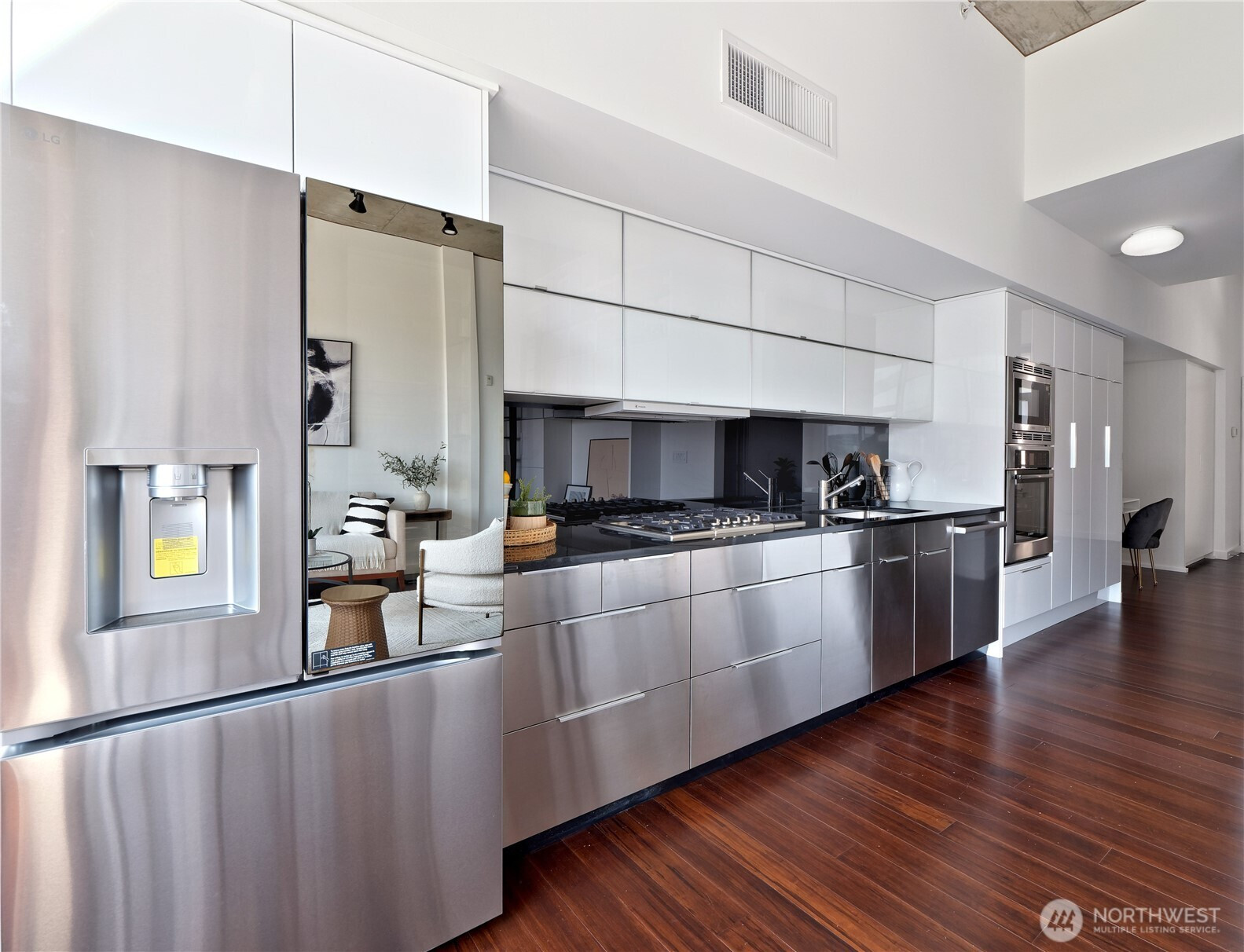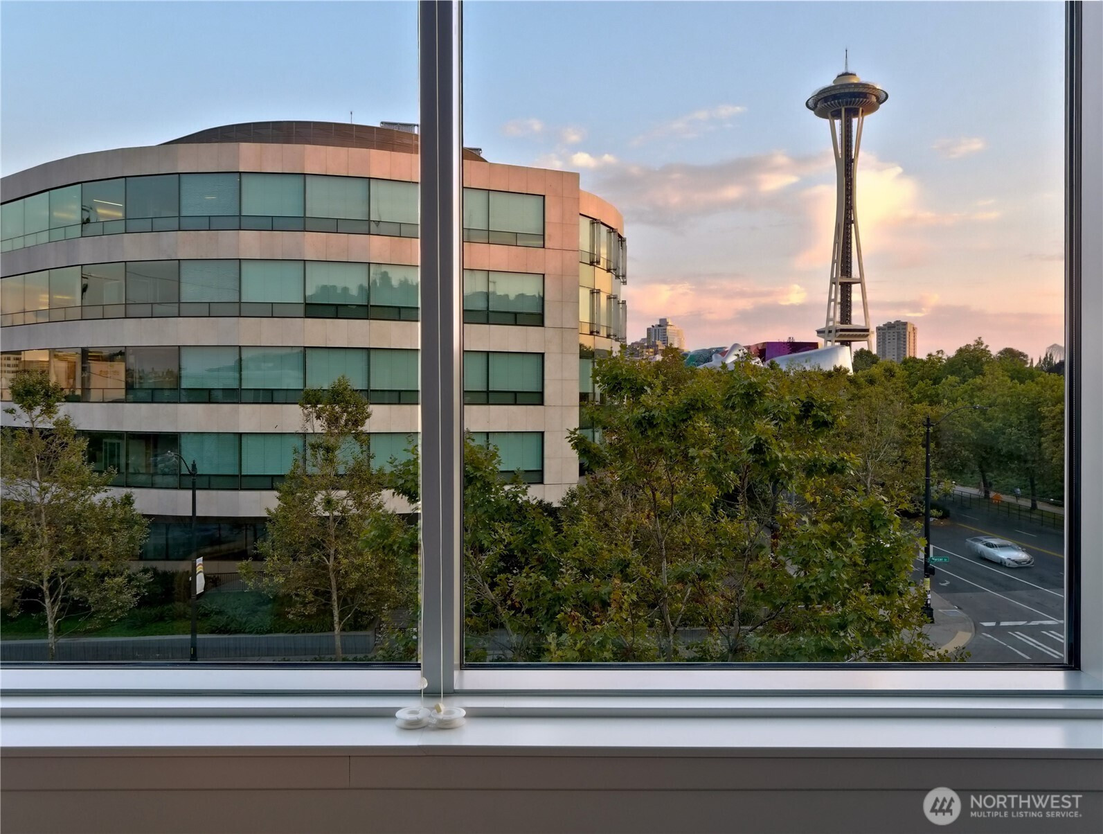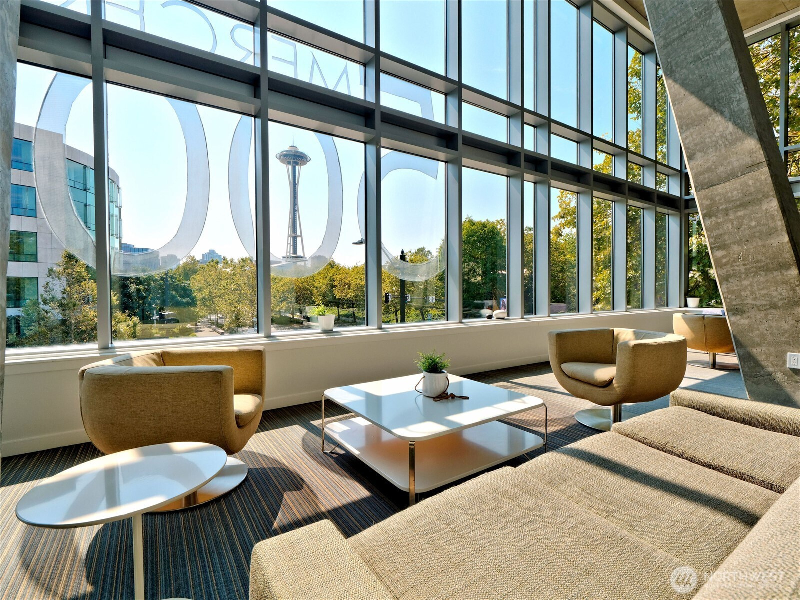 Uniquely updated 829 sq ft urban 1BR at LUMEN with top floor Space Needle views: bamboo hardwood floors, Bosch gas range/oven/dishwasher, new LG Instaview Fridge and Wash Tower. Expansive ceiling height , South facing windows provide abundant sunlight while blackout shades + solar shades allow precise control of views/privacy. Central AC. 1 parking spot in secure garage with car wash + storage. Amenities: concierge, owner’s lounge, Sky Bar, Theatre Room, fire pit, BBQ area. Unbeatable location above QFC, Konvene, Orange Theory, just steps to dining and the arts, Seattle Center & Climate Pledge Arena. Within walking distance to SLU, Queen Anne AND Downtown Preinspected & ready for you !