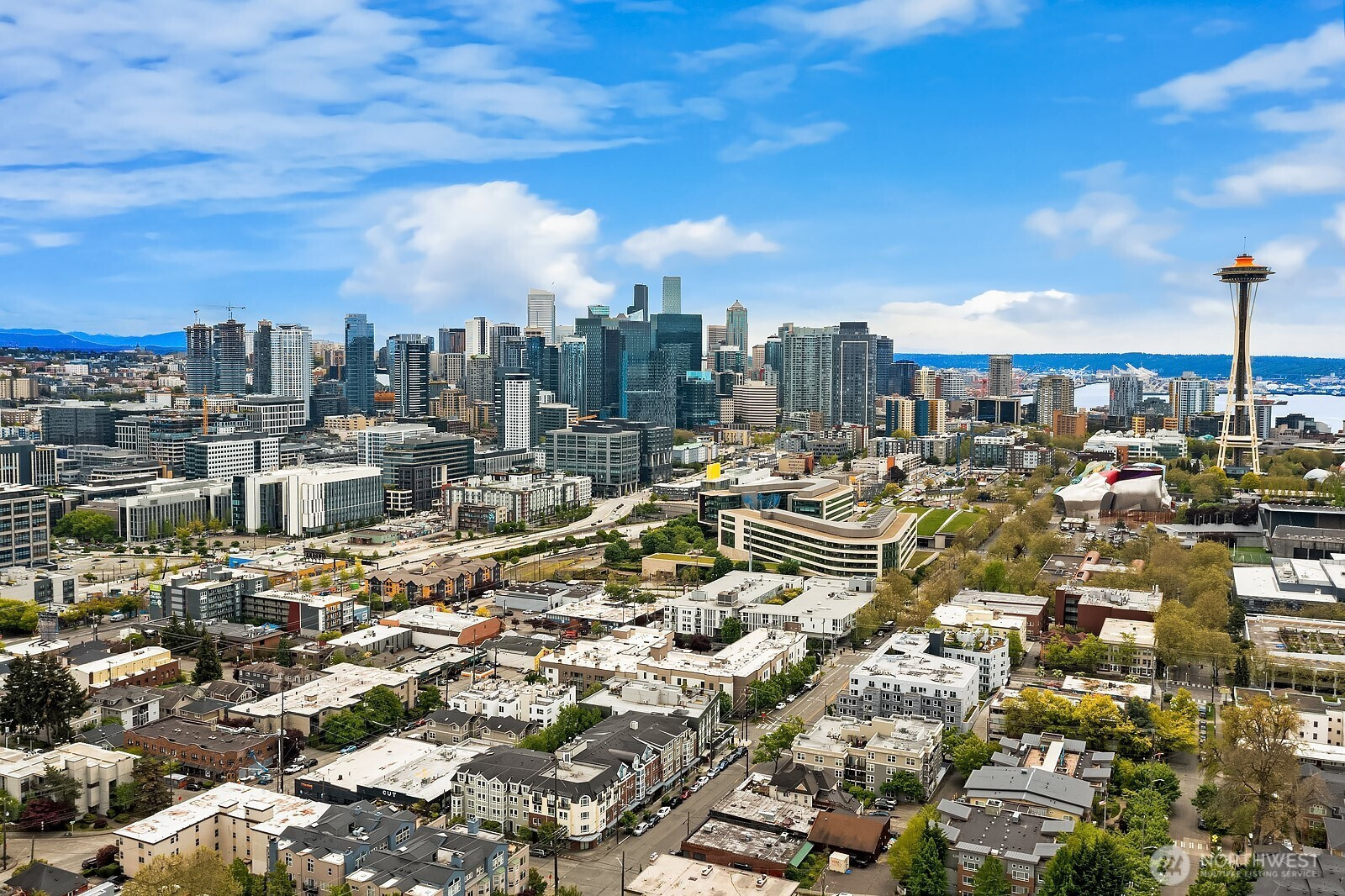 Built of steel and concrete, the Lumen was created to provide peaceful and luxurious living, community spaces, views of Downtown Seattle, South Lake Union and the Space Needle while bringing urban living with European style to Queen Anne. This exceptional home features soaring ceilings, exposed concrete, designer light fixtures, full size w/d, expansive walk-in closet, air conditioning, private balcony and impressive views of Downtown Seattle and South Lake Union. Enjoy a multitude of common area features including concierge, outdoor entertaining spaces with BBQ, media room, event space and game room with pool table. Located minutes from the Seattle Center, Climate Pledge Arena, Downtown and South Lake Union.