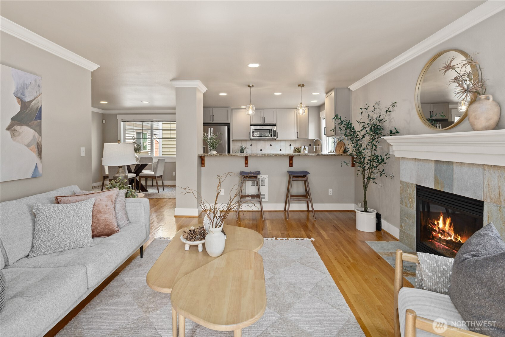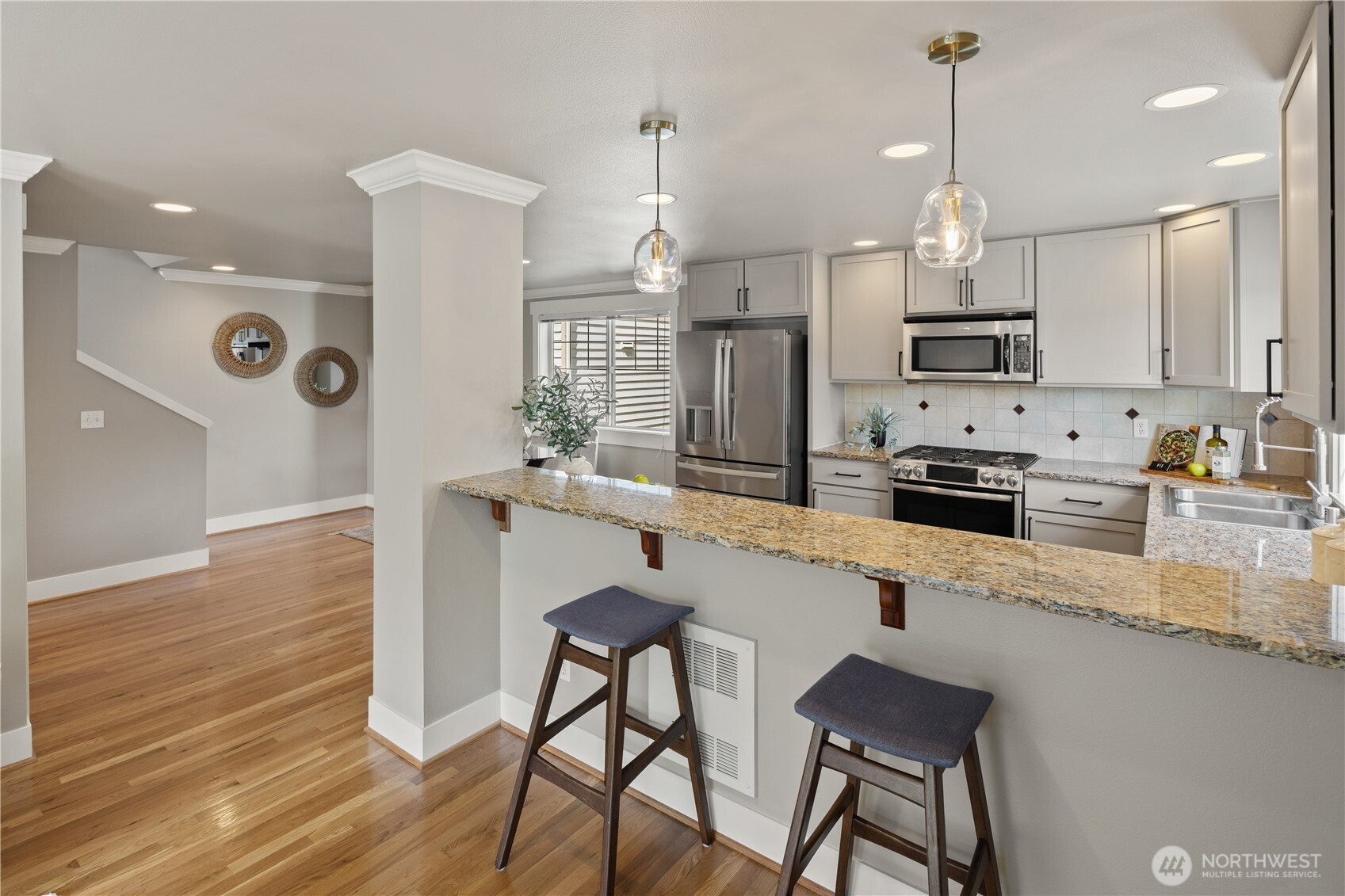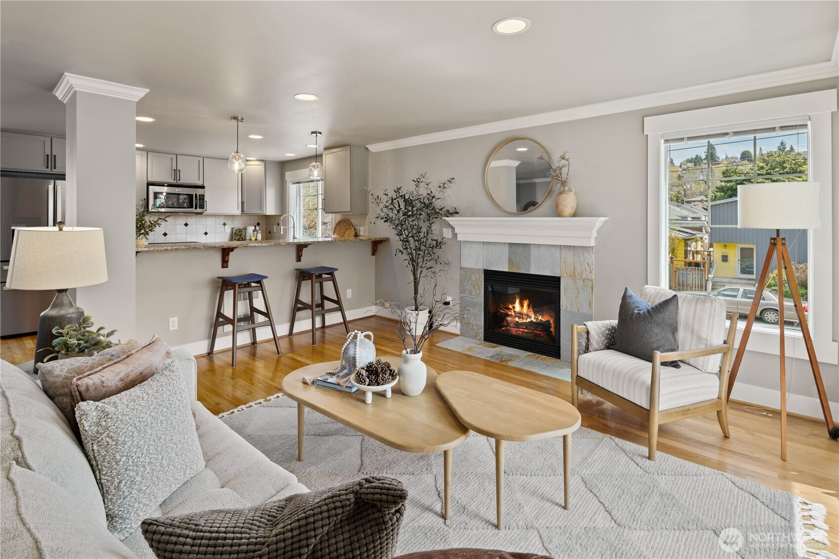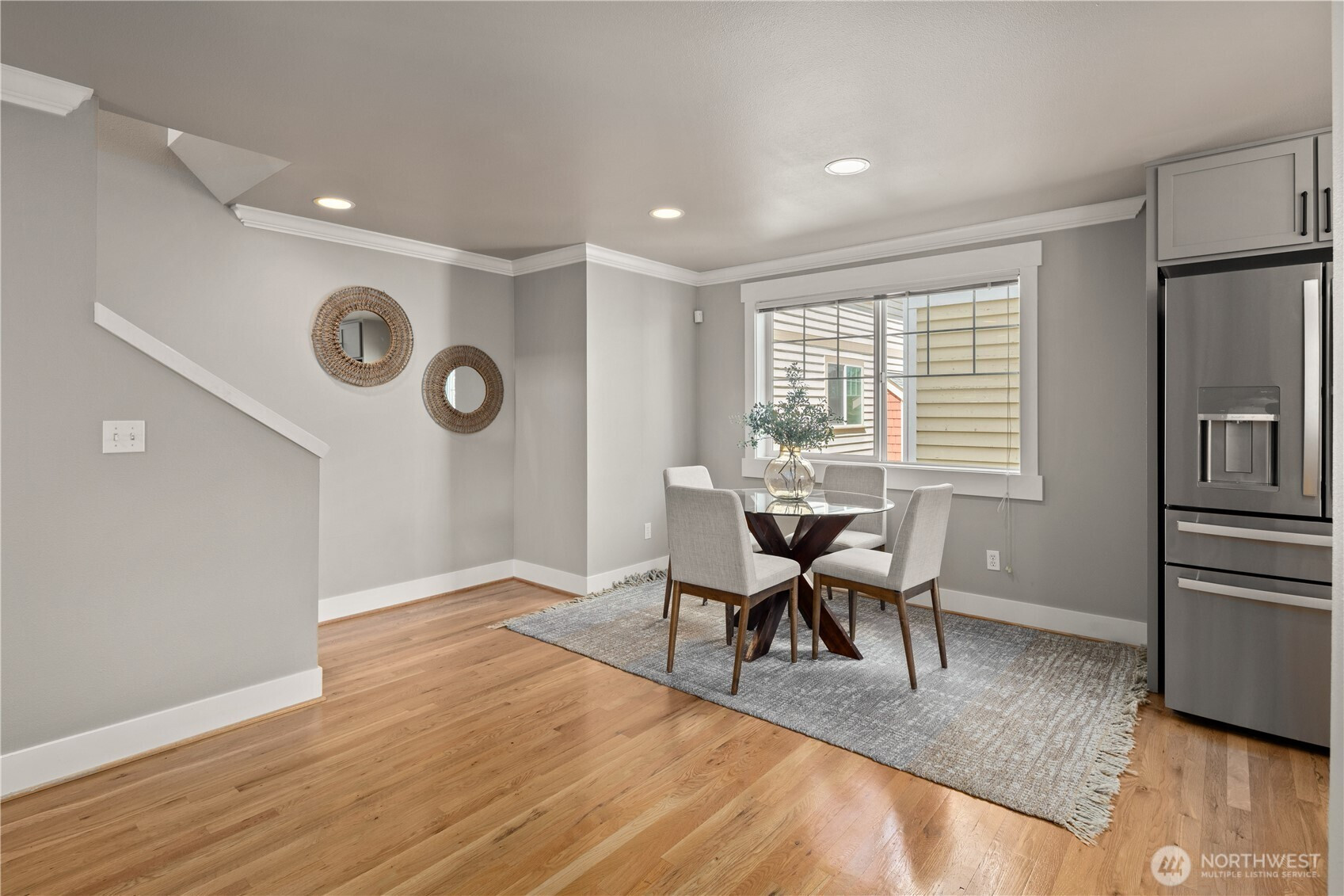 Modern Ballard townhome offering a clean, move-in ready feel in a prime Ballard location. This thoughtfully designed home features an open-concept main level with great natural light, a functional layout, and seamless flow for everyday living and entertaining. Recent updates include fresh interior and exterior paint, brand-new carpet throughout, and refinished kitchen cabinets, and lighting creating a crisp, updated aesthetic. Well-proportioned bedrooms provide flexibility for guests, office, or additional living space. Ideally situated just minutes from Ballard’s top restaurants, shops, parks, and commuter routes—this is turnkey urban living at its best. Enjoy low-maintenance living with modern finishes and a layout that lives larger than expected. A perfect opportunity for buyers seeking style, convenience, and a vibrant Seattle lifestyle.
