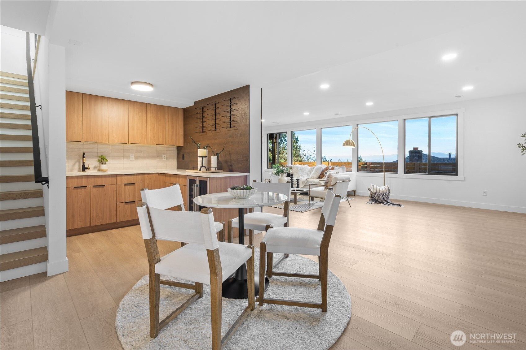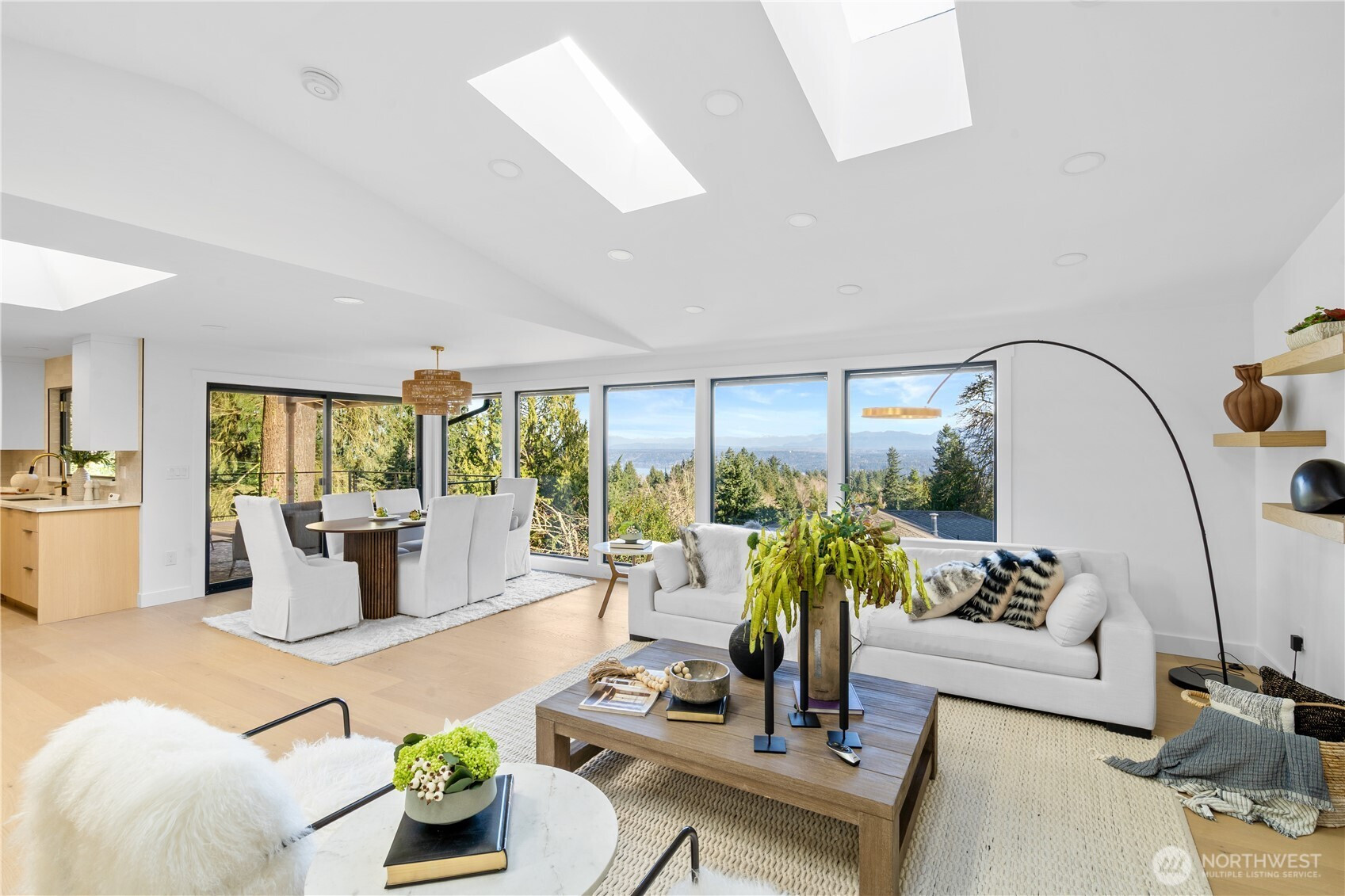 Wake up each morning to breathtaking panoramic views of Lake Sammamish and the surrounding mountains—an everyday reminder of the beauty of Pacific Northwest living. Perched on a quiet east-facing hillside cul-de-sac, this extraordinary residence captures sweeping lake, forest, and mountain vistas from expansive walls of windows that fill the home with natural light. Completely reimagined with a fully permitted down-to-the-studs remodel, every detail has been thoughtfully upgraded—from a 40-year roof, plumbing, electrical, HVAC, insulation, windows, and drywall to all-new designer interior finishes throughout. Designed for everyday comfort, the expansive layout features 5 spacious bedrooms, each with its own ensuite bath. Two main-level kitchens offer exceptional functionality—a fully equipped Western chef’s kitchen alongside a separate Wok kitchen ideal for elevated culinary experiences. Vaulted ceilings and skylights create an airy, light-filled atmosphere, while the walk-out daylight basement with wet bar provides the perfect setting for hosting guests. Step outside to a professionally designed yard featuring a private putting green, multiple entertaining patios, and a large covered deck where you can unwind while taking in the stunning lake and mountain views.Located within the top-rated Bellevue School District and highly sought-after Newport High, this is a rare opportunity to own a truly special home where luxury, privacy, and natural beauty come together.