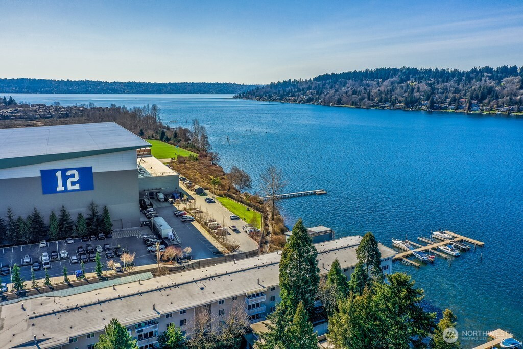 LAKE WASHINGTON VIEWS Welcome to unit 102 at Misty Cove, a south facing condo in the desirableKennydale neighborhood. Beautifully maintained main level unit is updated with hardwood floors and warm paintcolors. Remodeled kitchen has wood cabinets and flows into the open living & dining rooms. Relish the abundant lightcoming through the large sliding glass doors. Primary bedroom has a large closet and private bath. Both bathroomshave been updated with luxury finishes. Relax and enjoy the deck overlooking Lake Washington. One designatedparking spot. Misty Cove homeowner's association amenities include swimming pool & sauna.