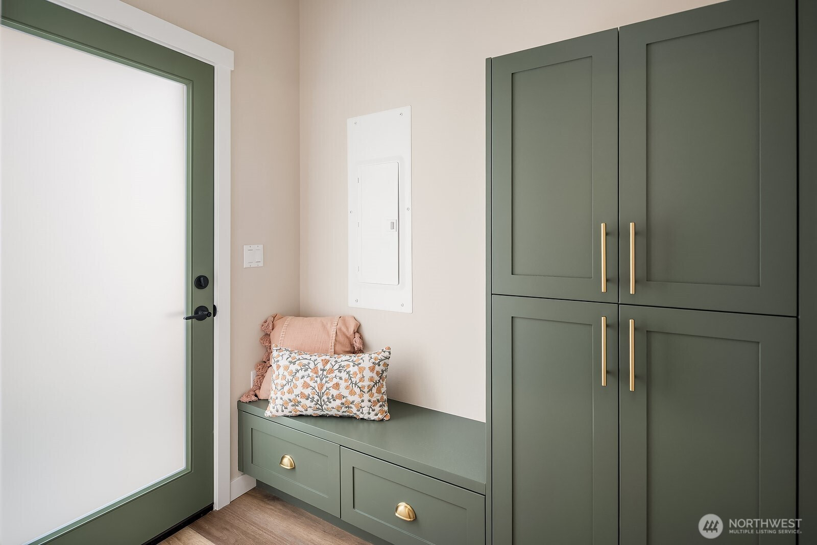 Craftsman meets contemporary in this timeless newly built home by well-known and reputable builder, Collz Inc. From your fenced front yard, enter directly to the main floor and take in an expansive great room with windows wrapped in beautiful millwork. The well-appointed kitchen is highlighted with shaker style full-height upper cabinets and soft-close drawers and doors. Off the kitchen, enjoy a mudroom near the back door with built-in cabinets - the perfect place to drop shoes and coats when heading in from the off-street parking off alley. Head upstairs to the two spacious secondary bedrooms, full bathroom and laundry room. Your primary suite awaits you on the top floor featuring a fabulous walk-in closet, private balcony with western views and a large primary bath with stunning herringbone tilework along with a bench in the over-sized shower. Sun-drenched private office completes this level. Ideally located in Northeast Seattle's Bryant neighborhood, enjoy close access to University Village, Seattle Children's Hospital, University of Washington, and the Burke Gilman Trail.
