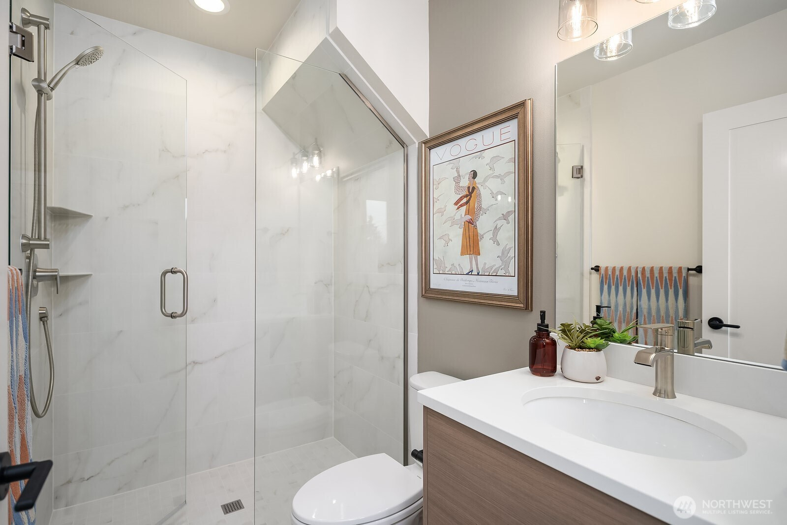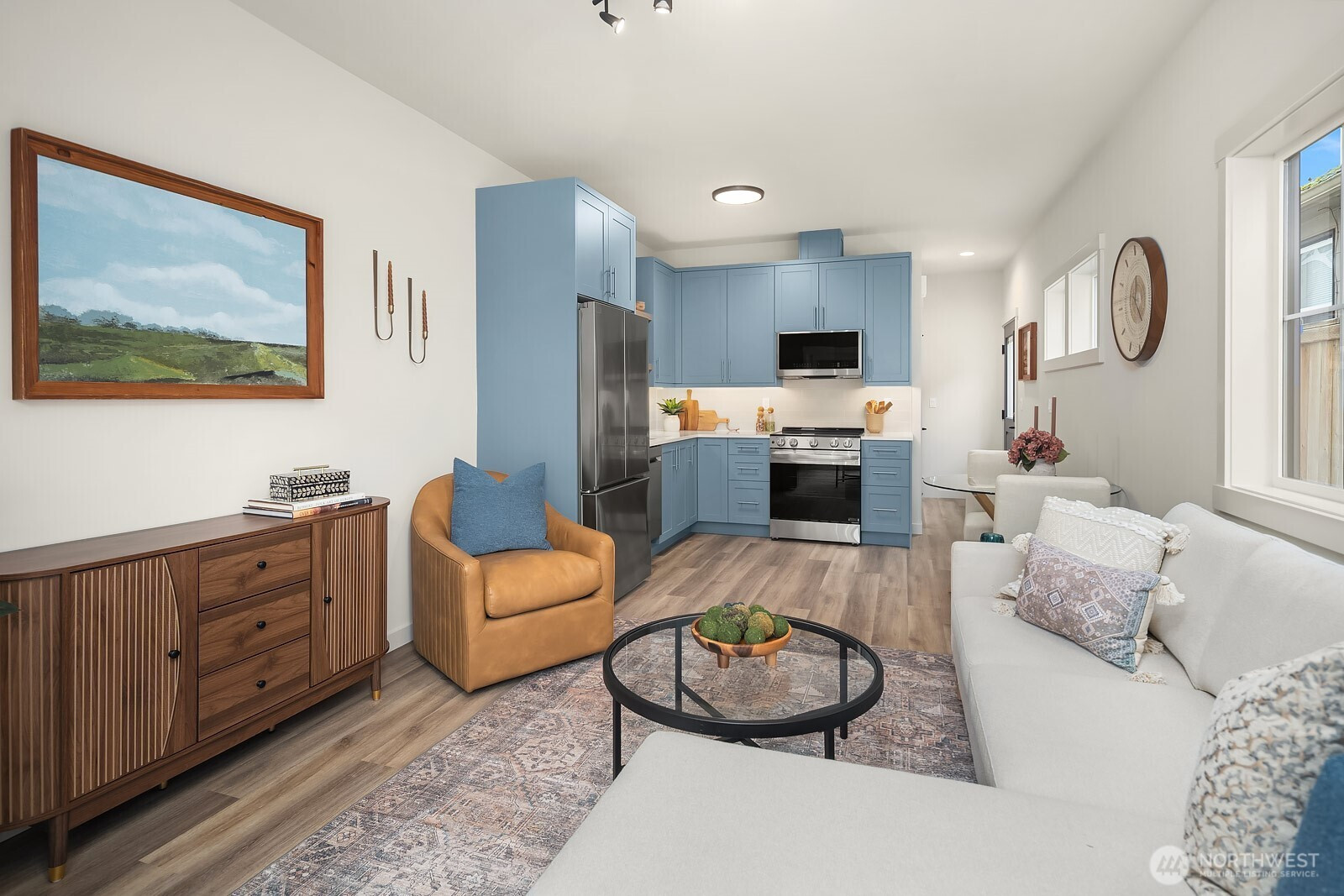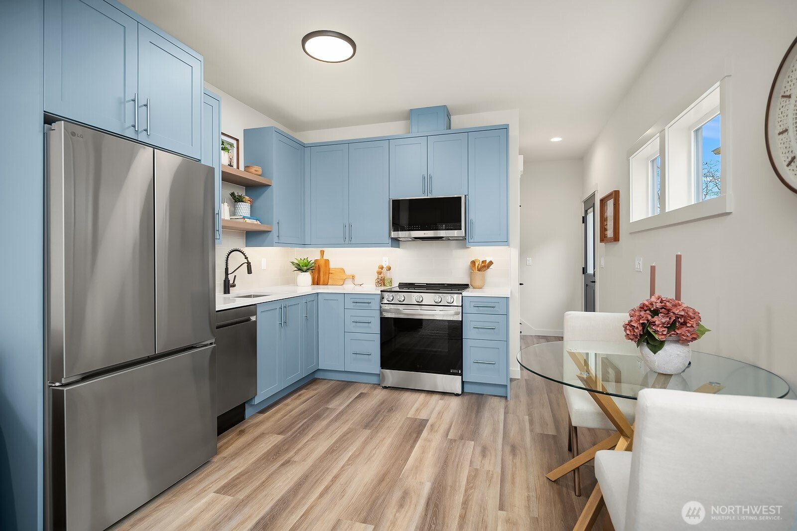 Full of charm and style, this sweet two bedroom, two bathroom home with a main floor living checks all of the boxes. Off of the cozy great room, the kitchen boasts excellent storage and beautiful custom cabinetry. Enjoy a kitchen, dining and great room that looks out onto a patio and fenced yard. Head up one level to a private guest bedroom and bath retreat, along with laundry. On the top floor escape into your primary suite, complete with western exposures. Relax on the large rooftop deck and take in the fantastic views! Off-street parking off alley included! Ideally located in Northeast Seattle's Bryant neighborhood, enjoy close access to University Village, Seattle Children's Hospital, University of Washington, and the Burke Gilman Trail.