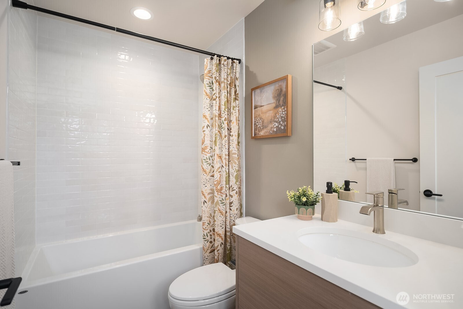 Full of charm and style, this sweet two bedroom, two bathroom home with a main floor living checks all of the boxes. Off of the cozy great room, the kitchen boasts excellent storage and beautiful custom cabinetry. Enjoy a kitchen, dining and great room that looks out onto a patio and fenced yard. Head up one level to a private guest bedroom and bath retreat, along with laundry. On the top floor escape into your primary suite, complete with western exposures. Relax on the large rooftop deck and take in the fantastic views! Off-street parking off alley included! Ideally located in Northeast Seattle's Bryant neighborhood, enjoy close access to University Village, Seattle Children's Hospital, University of Washington, and the Burke Gilman Trail.