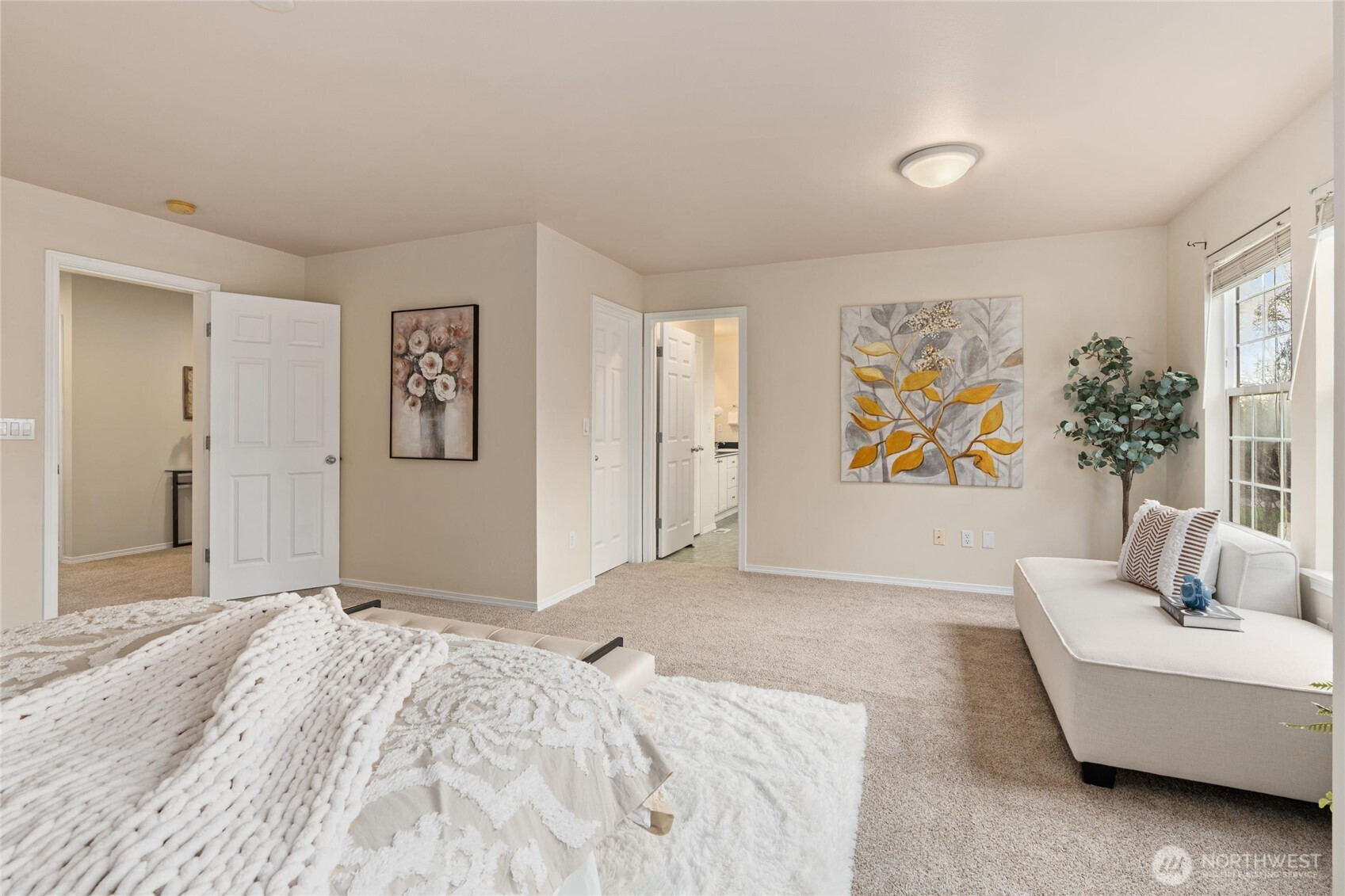 An inviting, move-in-ready home tucked into a quiet no-through street in the highly sought-after Renton Highlands. This light-filled home offers a bright, airy, and well-oriented floor plan. The main level features a private den or office with French doors, maple hardwood floors, and a welcoming family room with built-in surround sound. The spacious kitchen includes tall cabinetry, granite countertops, and an adjacent eating nook. Enjoy year-round indoor-outdoor living with a covered patio off the family room and a large Trex deck off the dining area—perfect for entertaining or relaxing. Recent updates include brand-new carpet, fresh interior paint, and new LED lighting throughout. Upstairs, you’ll find a convenient laundry room, two generously sized bedrooms, and a spacious primary suite with built-in surround sound and a five-piece bath. Exceptionally well-maintained, spotless, and truly move-in ready, with convenient access to I-405, shopping, dining, parks, and commuter routes to Bellevue, Seattle, and Sea-Tac.