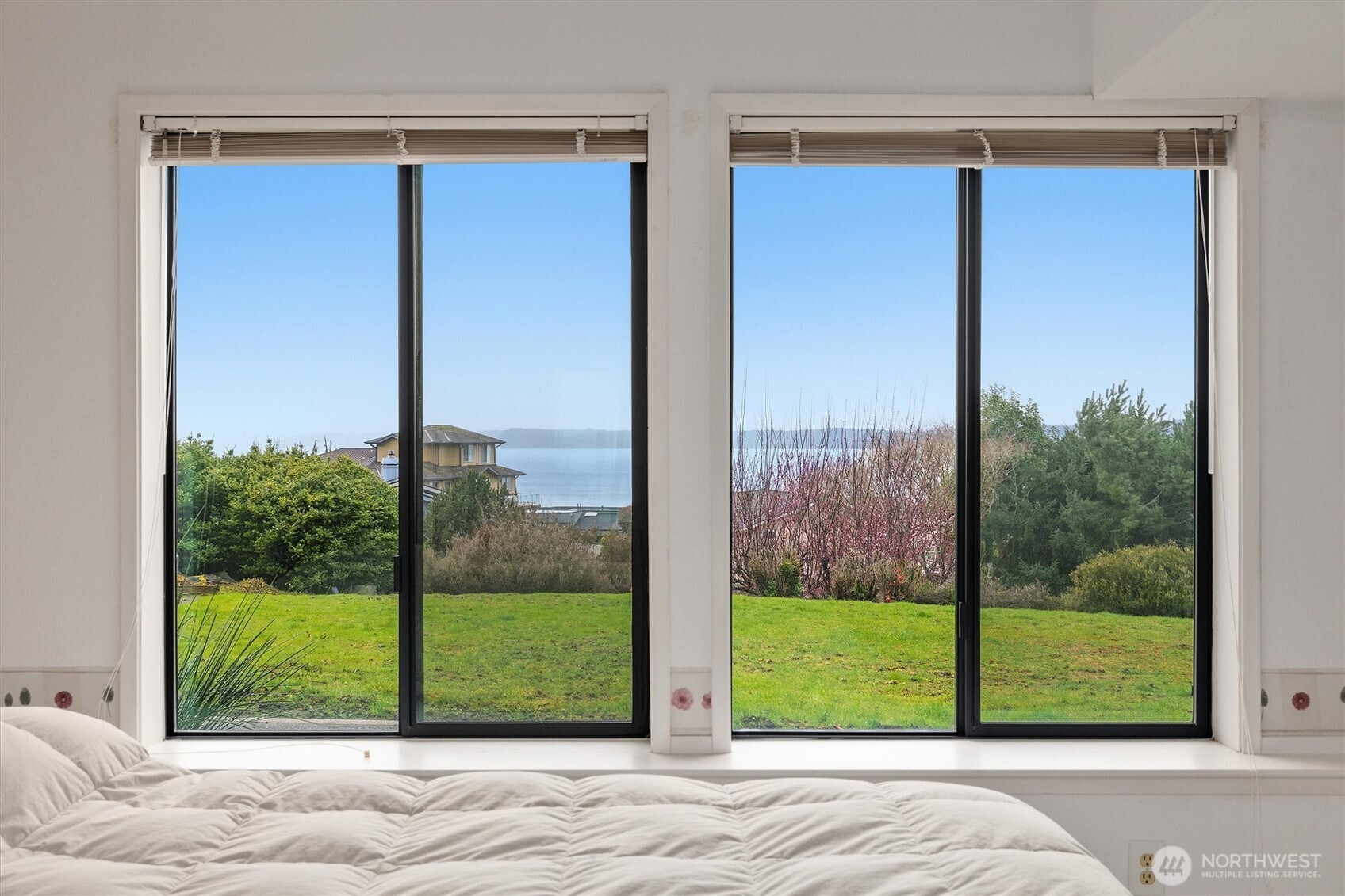 Imagine Puget Sound sunsets across your sweeping view of the sound from your private stately residence. Situated on a winding corner lot sitting high above the neighboring homes this jewel of Marine Hills commands your admiration. Spread across three levels, this home features three bedrooms including a full top floor birds nest primary suite with huge en-suite and unique central jetted tub sure to catch the water view white you relax. Main floor offers a large living room with solid natural oak wood floors, anchored by an inviting gas fireplace and an open kitchen with both a formal dining room and a cozy eat-in breakfast nook all surrounded by a wrap around deck sure to take advantage of year round wildlife and water watching. Large 1/3 acre lot with mature landscaping sits high above the street for privacy with both a flat grassy area for activities or lounging and partitioned terraces for gardening and flora. Spacious 2 car garage and A/C! Optional membership to Marine Hills swim and tennis club.