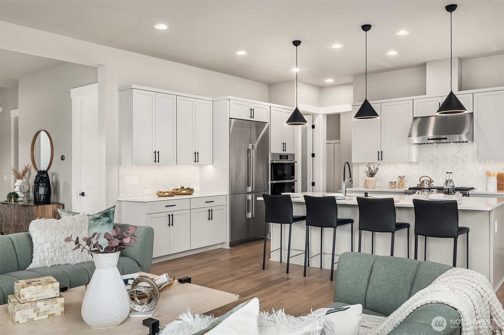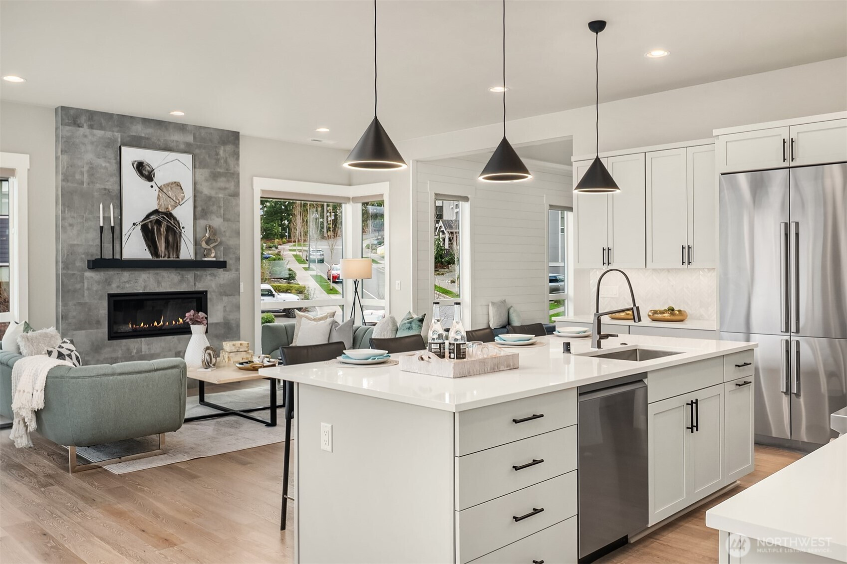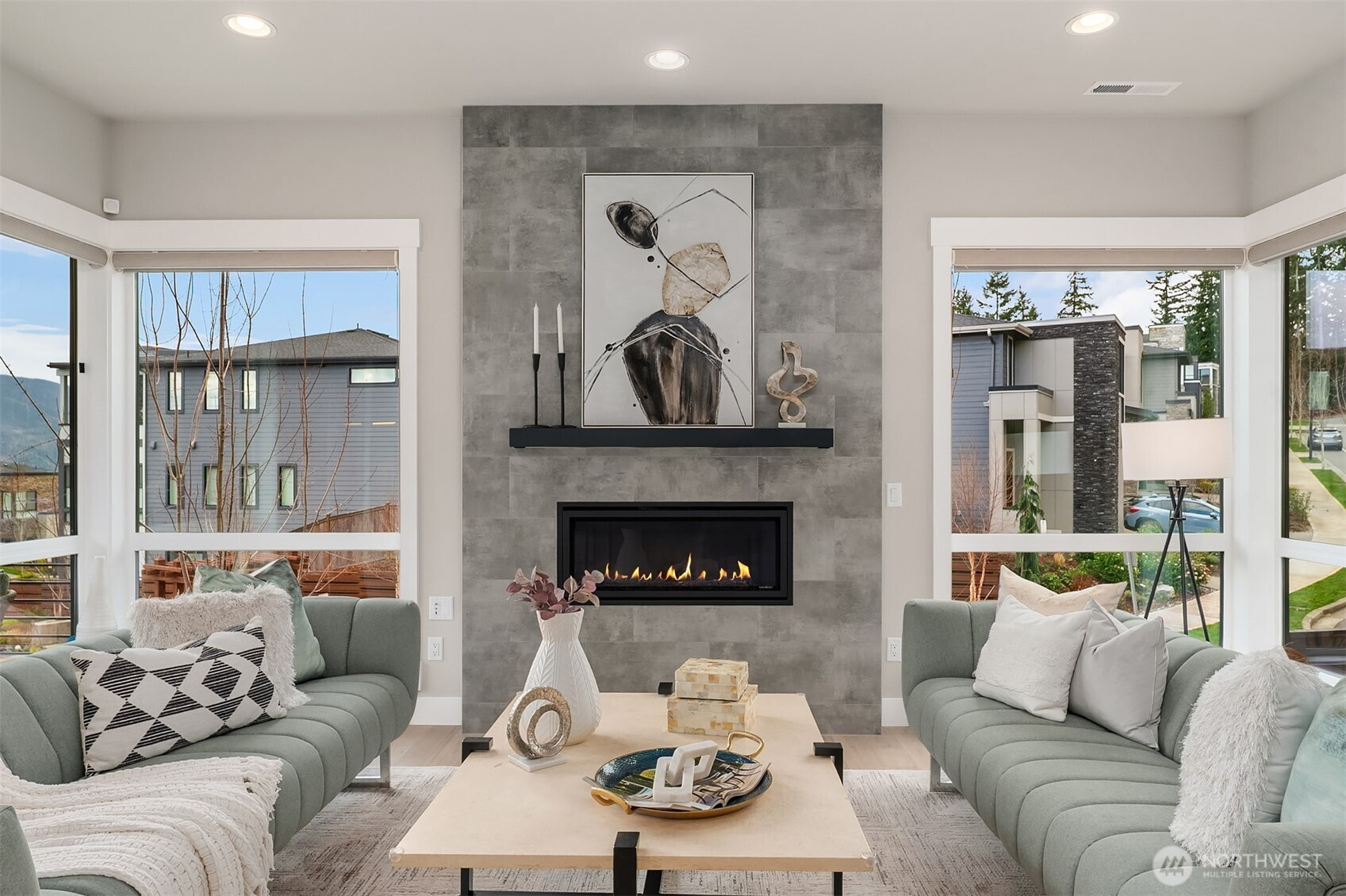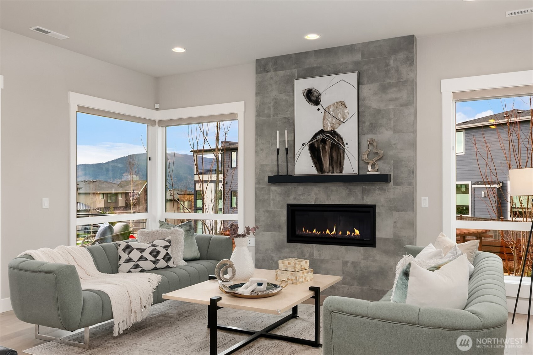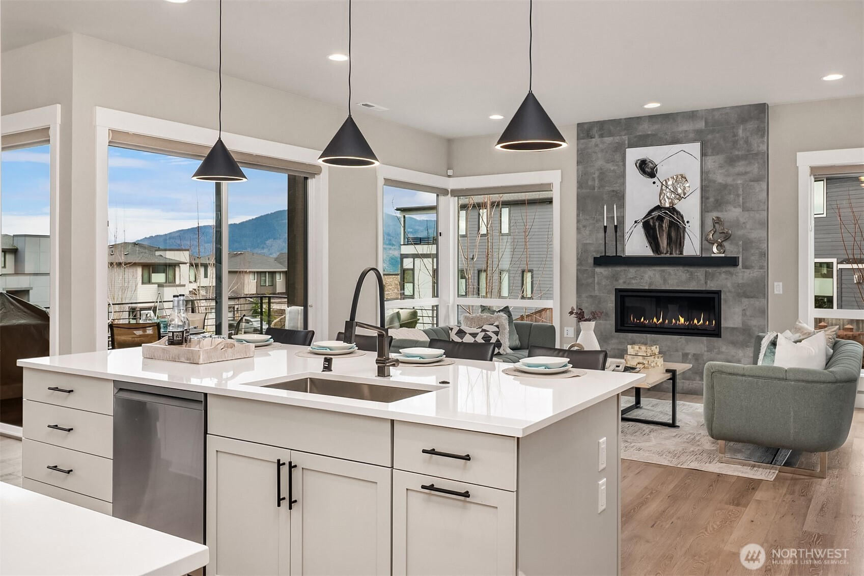 Like new NW Contemporary home located on a premier corner lot in desirable Panorama. Light-filled flowing great room concept with all the bells and whistles. Enjoy sparkling mountain views from the main living spaces from the oversized windows. Chef’s kitchen boasts Dacor Appliances, custom cabinets, spacious island and huge walk-in pantry. The great room is open to a covered patio with mountain views, perfect for year round entertaining. Oversized primary suite with private view balcony and sitting area. Spa-inspired bath with separate vanities, soaking tub and large walk-in closet. Smart design allows for generous upper floor bonus room and laundry. So many features to list including designer lighting, en-trend color palette, extended hardwoods through stairs and primary bedroom. Main floor en-suite guest bedroom, mudroom, automatic blinds, motion sensorized lights, premium trim package, high ceilings, built-ins, and smart features. Walk right outside your front door to over 50 miles of hiking trails within Cougar Mountain and soak in views of paragliders off Poo Poo point and beautiful sunrises from the view decks. Panorama at Talus is a nature filled community known for its breathtaking views and excellent Issaquah schools. Close to shopping, medical, boutiques at Gilman Village, downtown Issaquah dining and so much more. Commuter’s dream just off I-90 and SR 900.