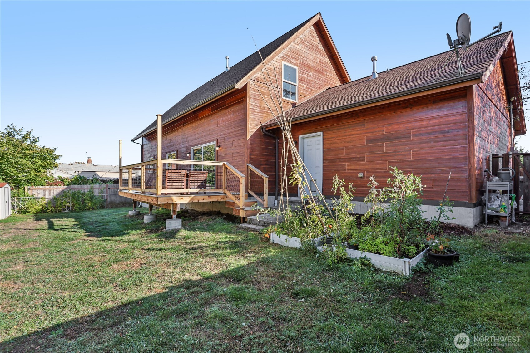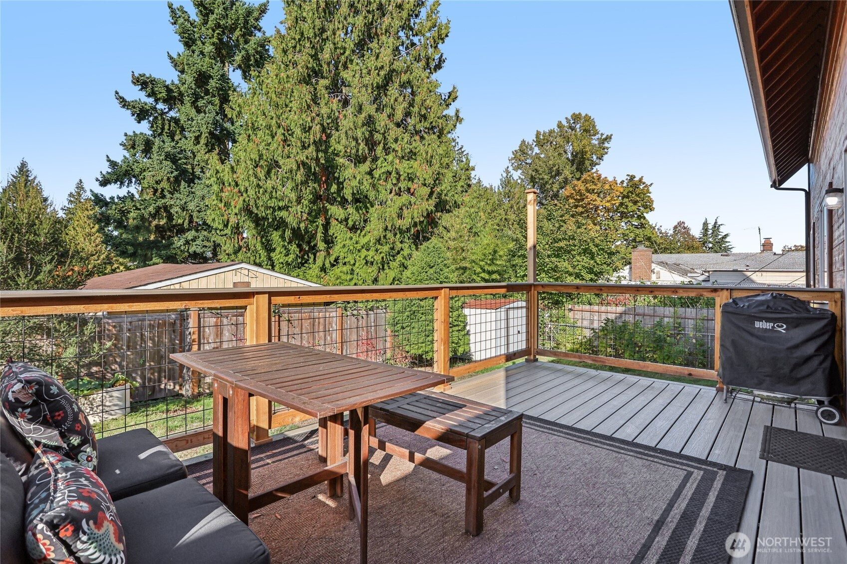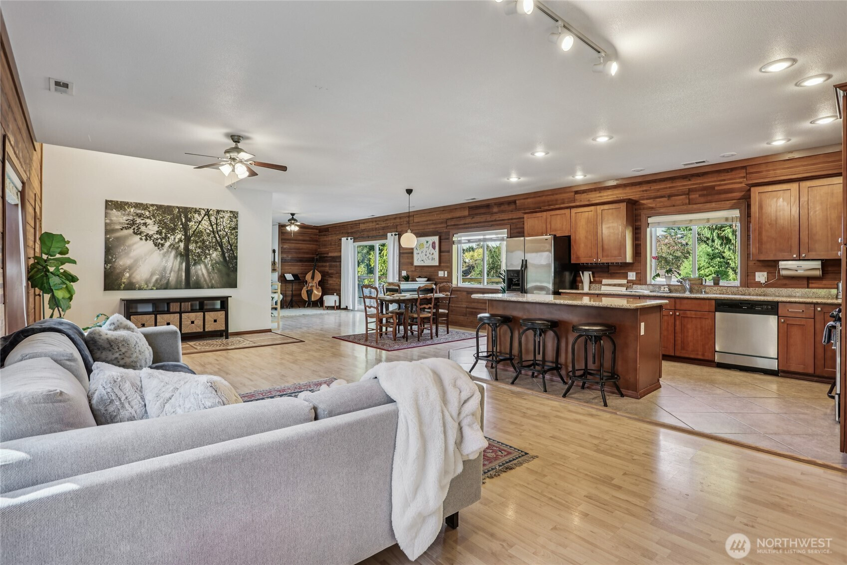 Welcome to this unique Scenic Hill 4 bedroom, 3 bathroom house where cabin charm meets modern day living. Warm and inviting details with exposed cedar walls, gas fireplace, wood trim, and engineered hardwood in the expansive living area. Kitchen is equipped with a large island, custom cabinetry & slab granite countertops. Sliding doors in the living area lead to a spacious deck & fully fenced back yard. Guest bedroom & full bathroom on main level. The second floor has a primary bedroom with a walk in closet & en suite bathroom, plus two additional bedrooms & another bathroom. Spacious 2 car garage with additional room for storage. Close to Kent Station shops, restaurants, trails, parks, & playground. Easy access to highways for commuters.