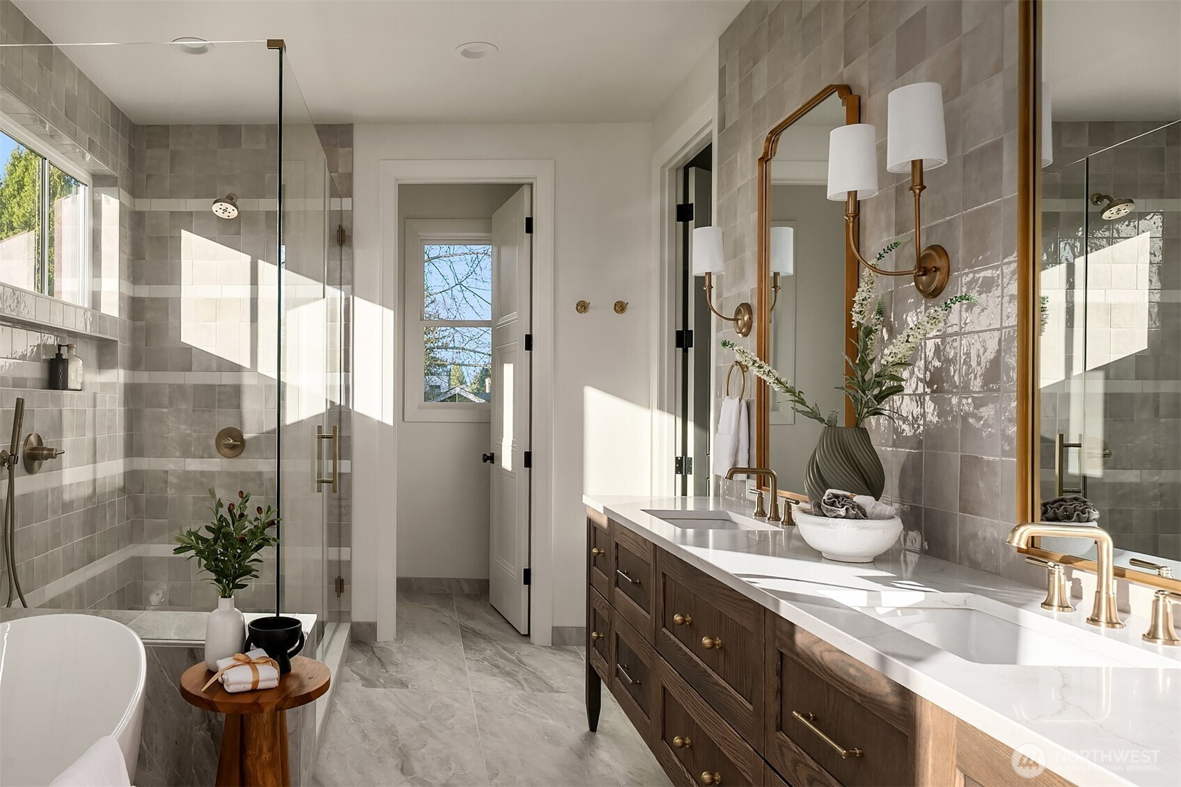 Enfort Homes presents the Dorsett, a luxury new construction home in the heart of Houghton. This is the first release in a limited collection of three residences, thoughtfully designed to blend modern architecture with warmth, character, and a refined color palette. The chef’s kitchen features Thermador appliances, built in refrigeration, a walk in pantry, commercial grade oversized hood. Integrated audio system enhances the kitchen, great room, patio, and primary suite. The primary bath offers heated floors and ambient lighting, creating a spa like experience. Centralized control hub offers convenient management of key home systems, creating a seamless and refined living experience. Solar panels, tankless water heater, EV charging, and enhanced insulation throughout provide efficiency, comfort, and quiet living, all just minutes from downtown Kirkland, waterfront parks, and top rated schools.