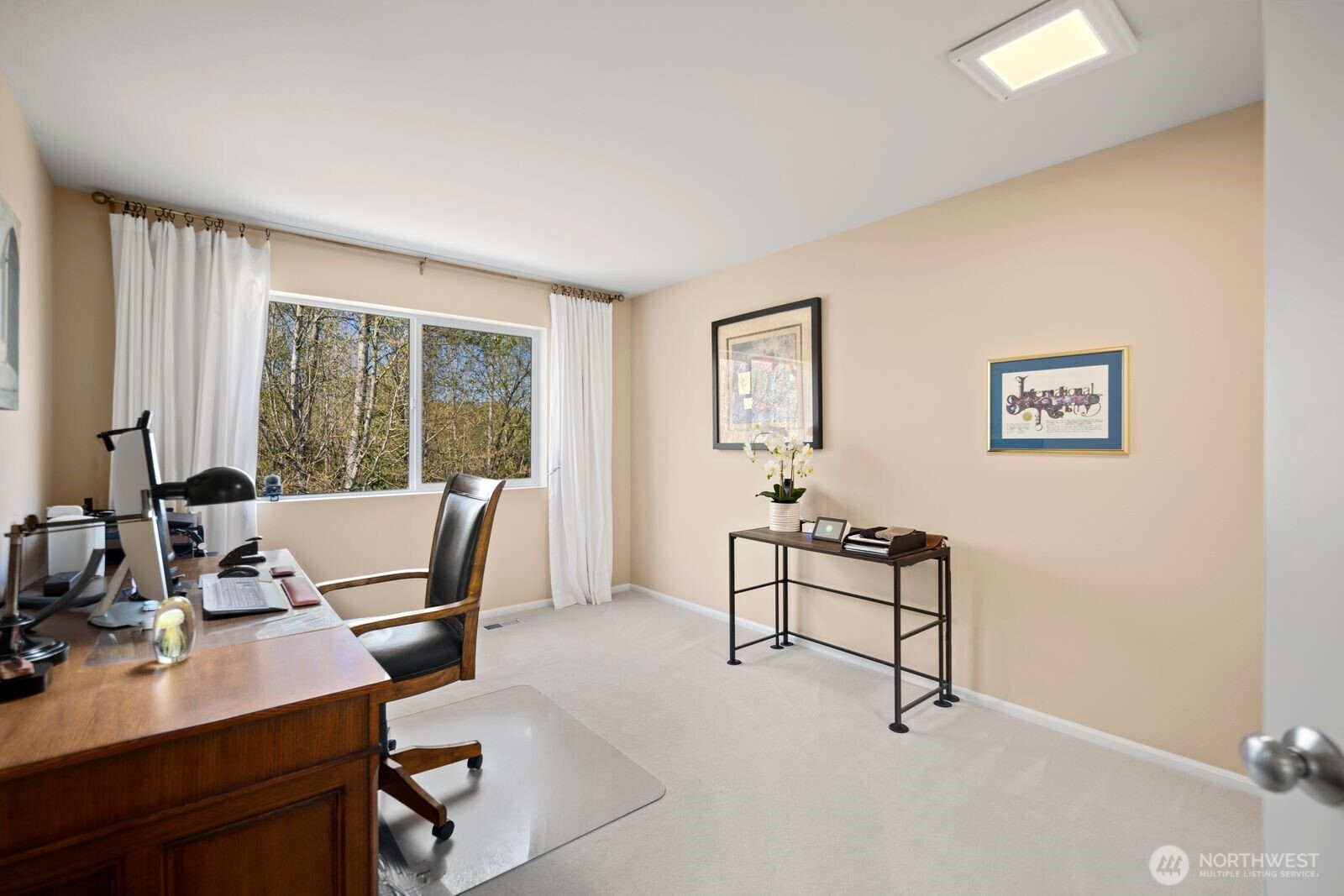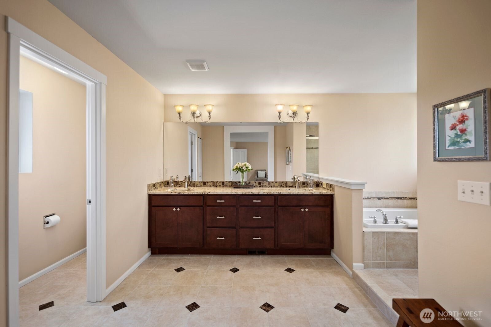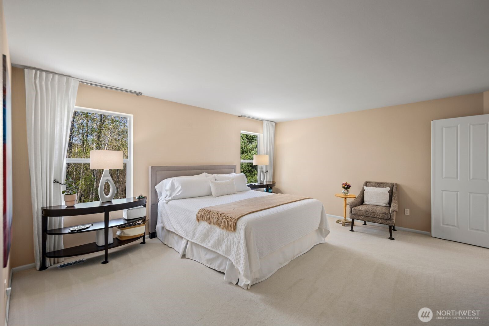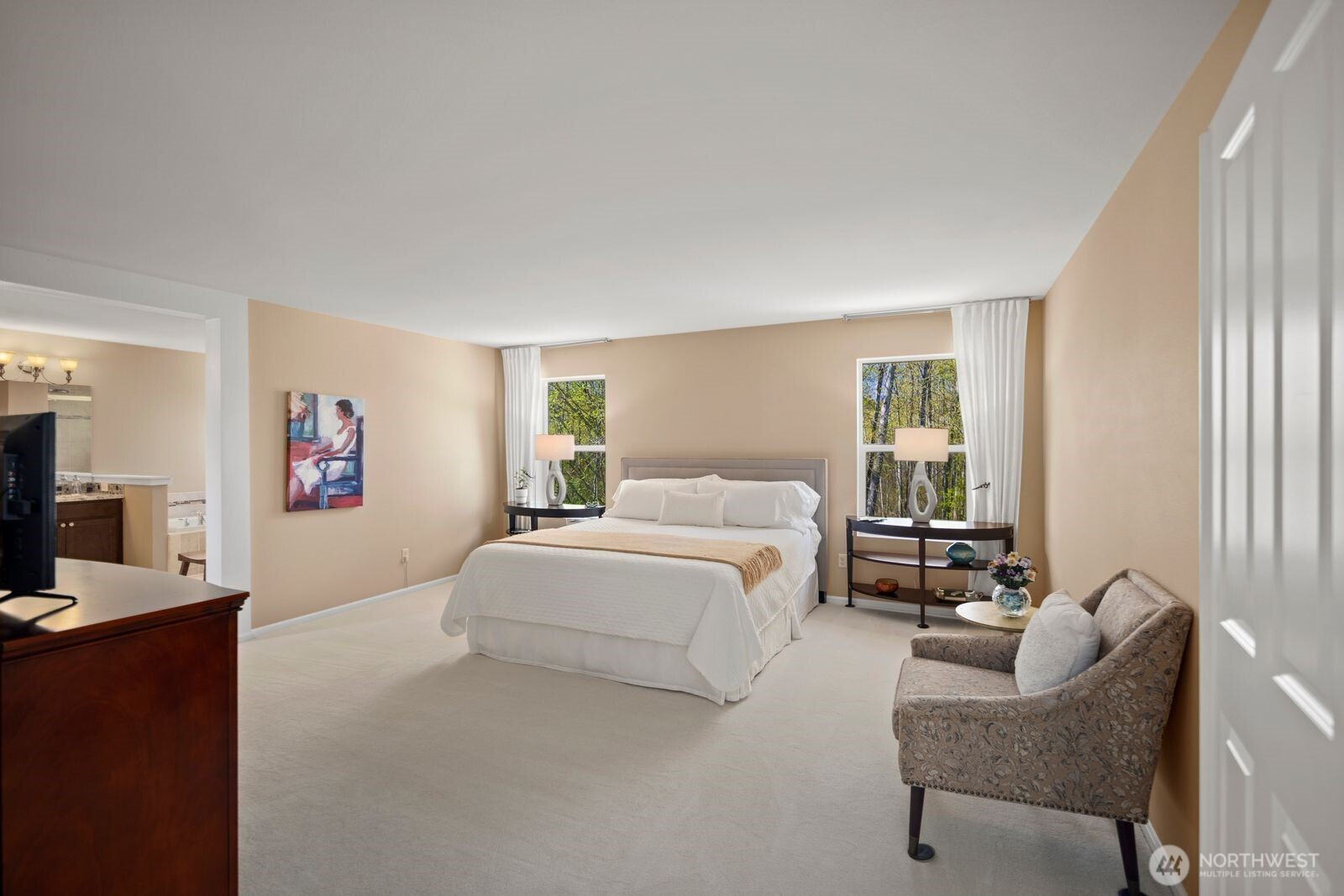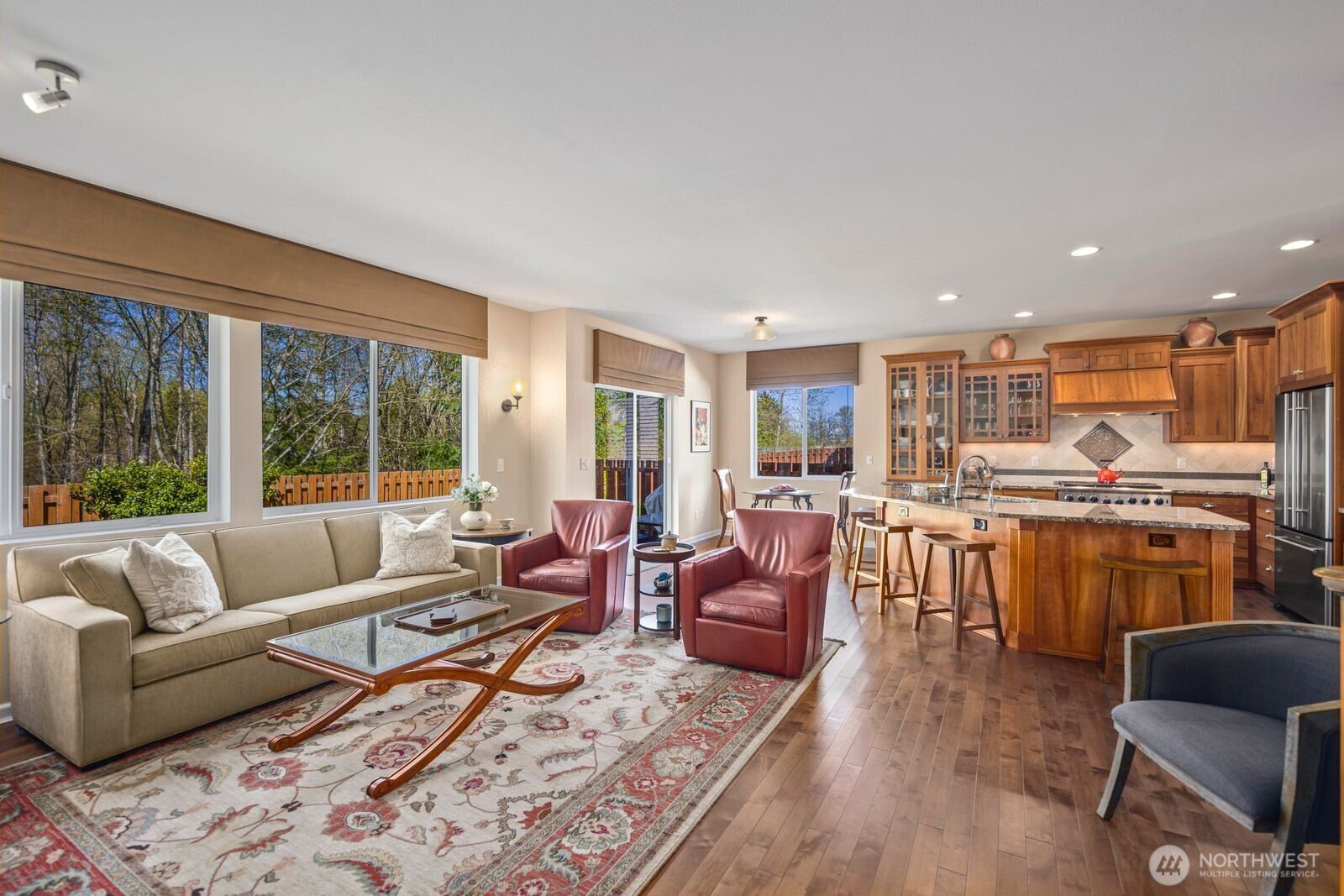 Experience the perfect blend of elegance and tranquility in this light-filled 5-bedroom Craftsman, nestled in the sought-after Creekside on Riverview community. The home’s centerpiece is a custom-designed chef’s kitchen, anchored by a commercial-grade 6-burner gas range and professional hood, complemented by rich cherrywood cabinetry, slab granite counters, and upscale stainless appliances. Designed for modern versatility, the main level features a secluded bedroom and adjacent three-quarter bath, offering an ideal setup for a long-term guest suite, private home office, or accessible main-floor living. The upper level is highlighted by an expansive Primary Suite with a spacious walk-in closet and generous 5-piece bath, plus three additional bedrooms, a full bath, and a convenient laundry room. The open-concept Great Room flows seamlessly to a private, level backyard where a brick-paved patio overlooks a lush, quiet greenbelt. Parking is effortless with separate 2-car and 1-car garages, offering ample space for vehicles and storage. Residents enjoy premium amenities including a community playground and basketball court, with the Green River Trail system just moments away. This prime location offers effortless access to Southcenter's abundant shopping options, dining, transit, and the Sea-Tac Airport.