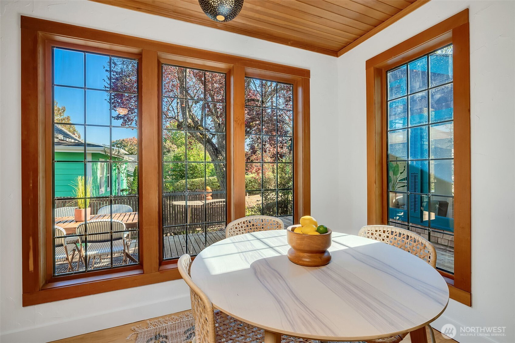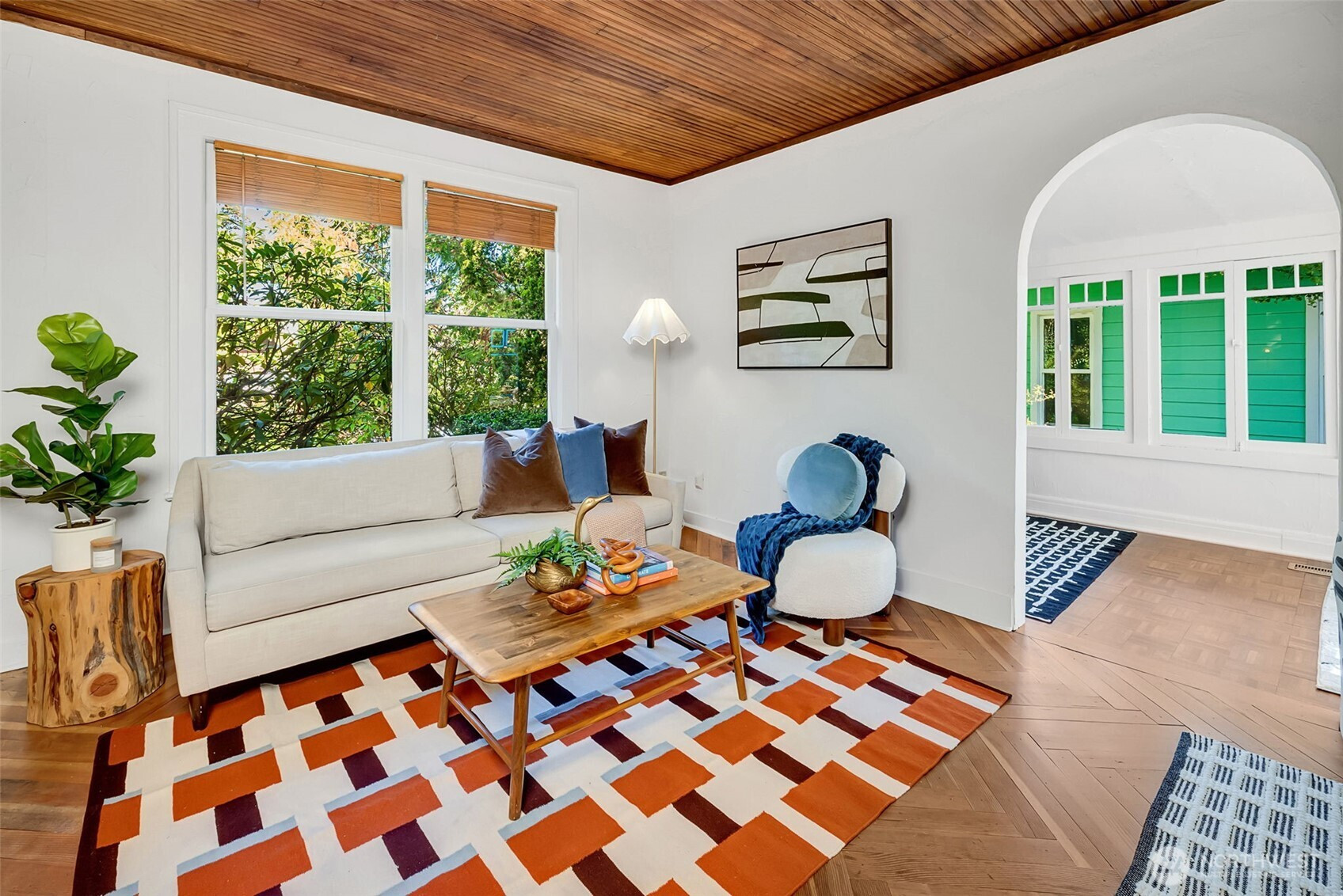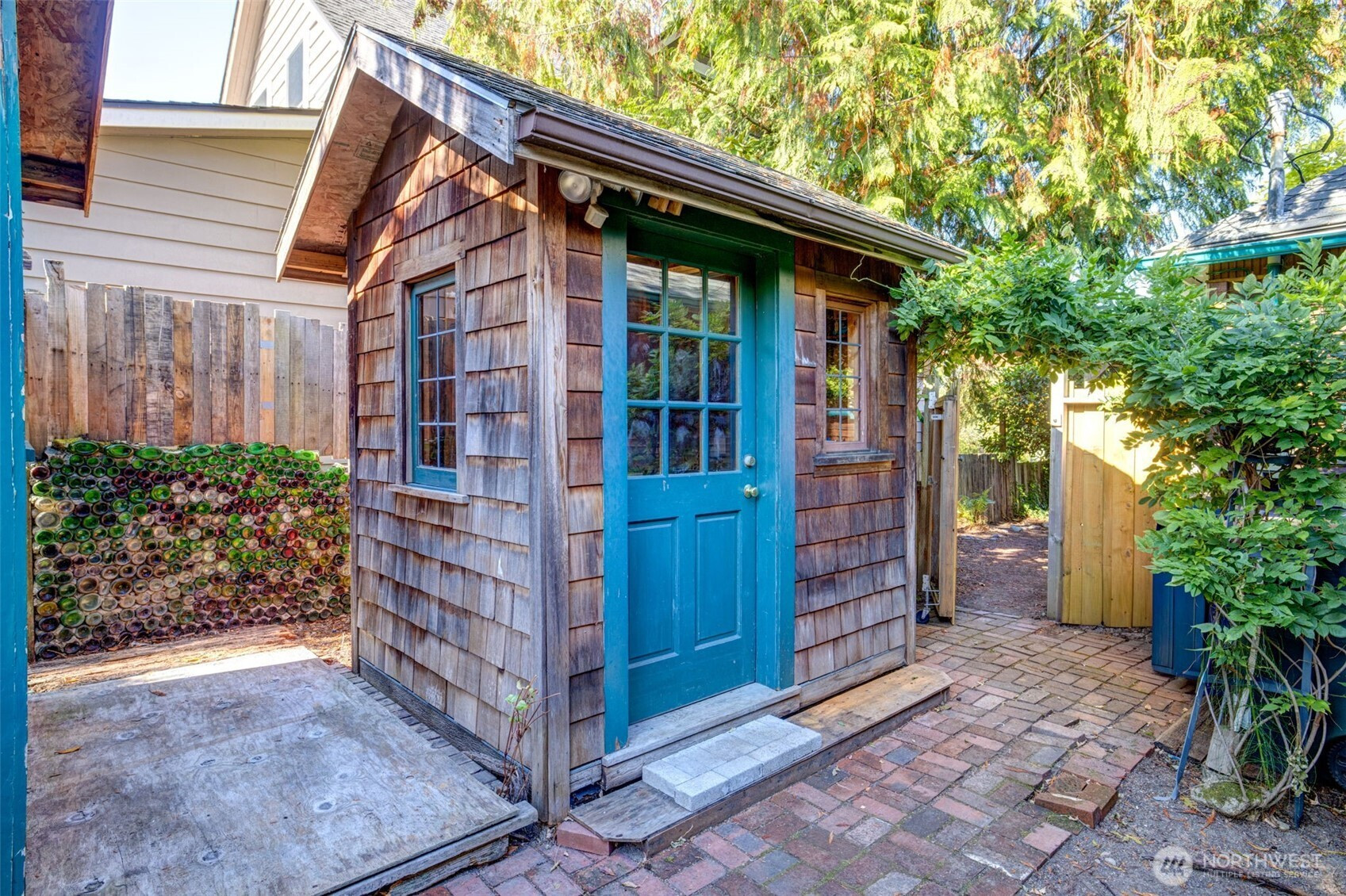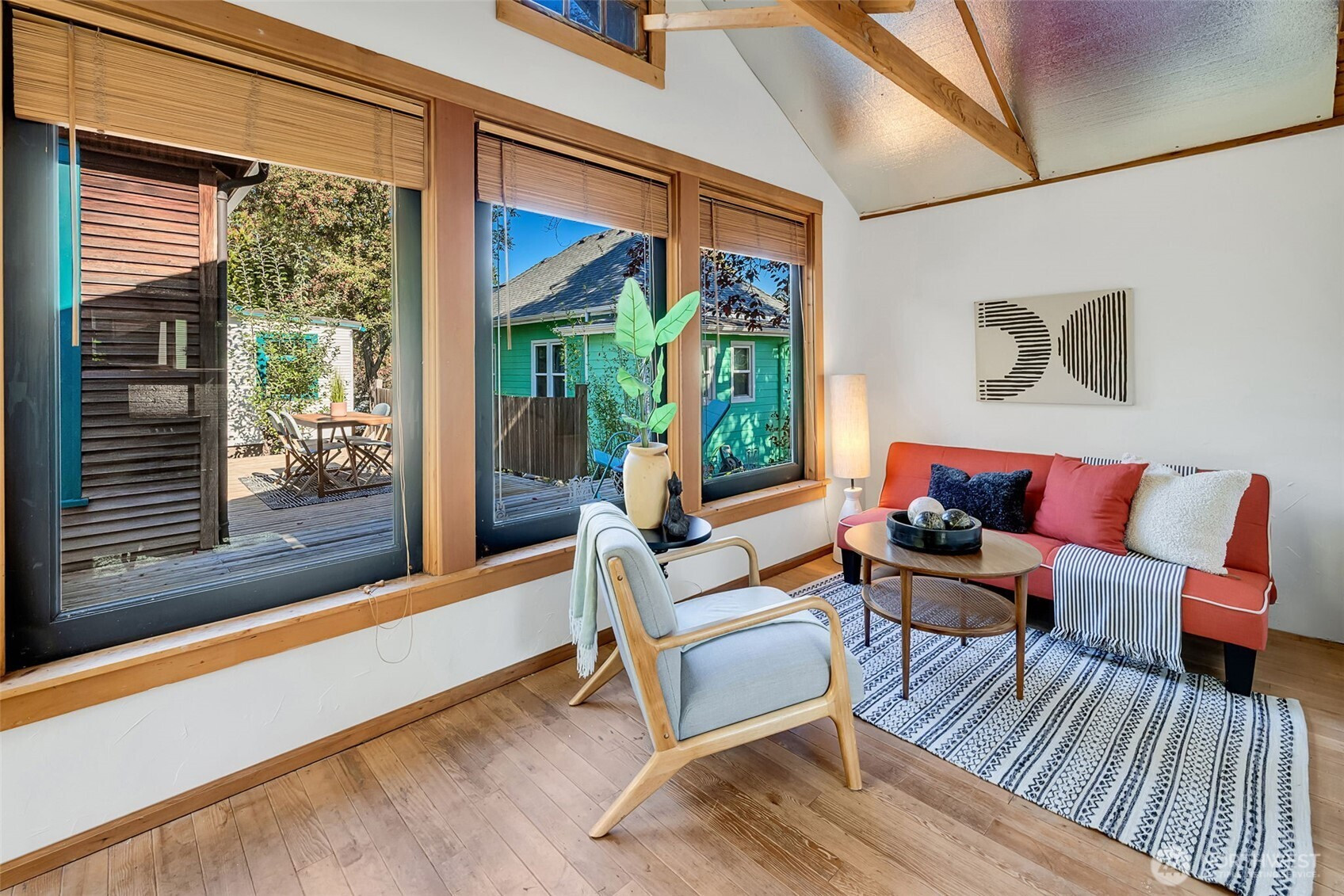 A truly charming Hillman City/Seward Park home features rich wood floors throughout main rooms and a spacious kitchen with dining area overlooking a large deck and private backyard. One bedroom offers a walk-in closet, while the other is uniquely surrounded by windows. The expansive deck with patio are perfect for entertaining. A detached studio with wood floors and electricity invites creativity, along with two additional buildings for use as an art space and a tool shed. Set on a lush, private lot with mature fruit trees and walking distance to Lake Washington, Seward Park, Hillman and Columbia City, as well as 50th Ave S shops. A truly captivating and versatile home is awaiting your personal touch!