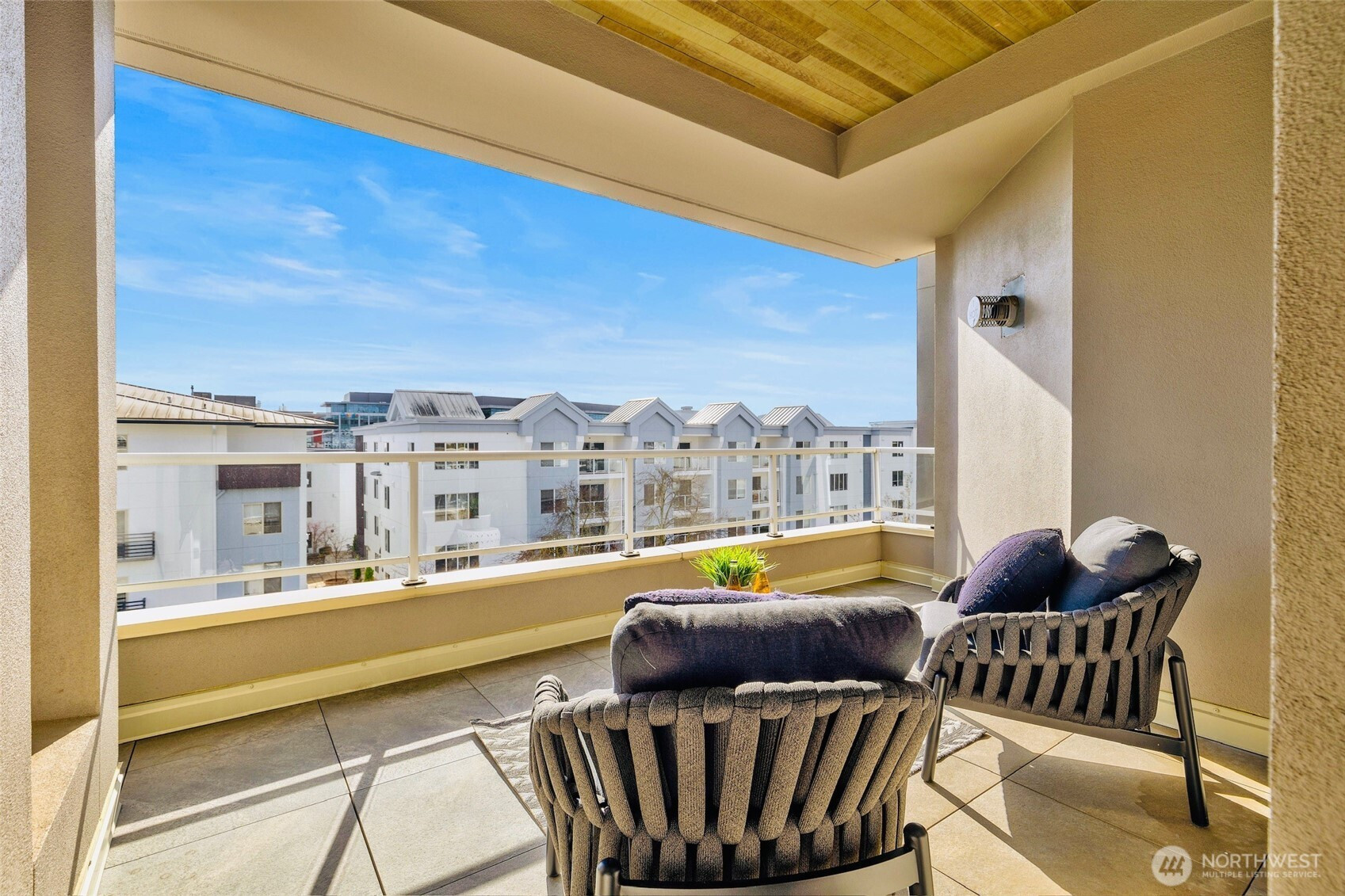 Downtown Kirkland living at its finest with this spacious and light filled 2 bedroom and 2 bath condo! Refreshed with brand new carpets and paint, this 4th floor unit boasts open floor plan, tall ceilings, den/office room, kitchen with newer appliances, eating bar and ample dining space. Other features include a primary suite with 5 piece bath with jetted tub, large walk-in closet and deck access, and gas fireplace in living room. Southern exposure private deck offers lake and mountain views. Secure building, 2 parking spots plus storage. Steps to Kirkland Urban shopping center, Peter Kirk Park and Google. An unbeatable location, a few blocks west will find you at the Kirkland Waterfront and everything else downtown Kirkland has to offer!