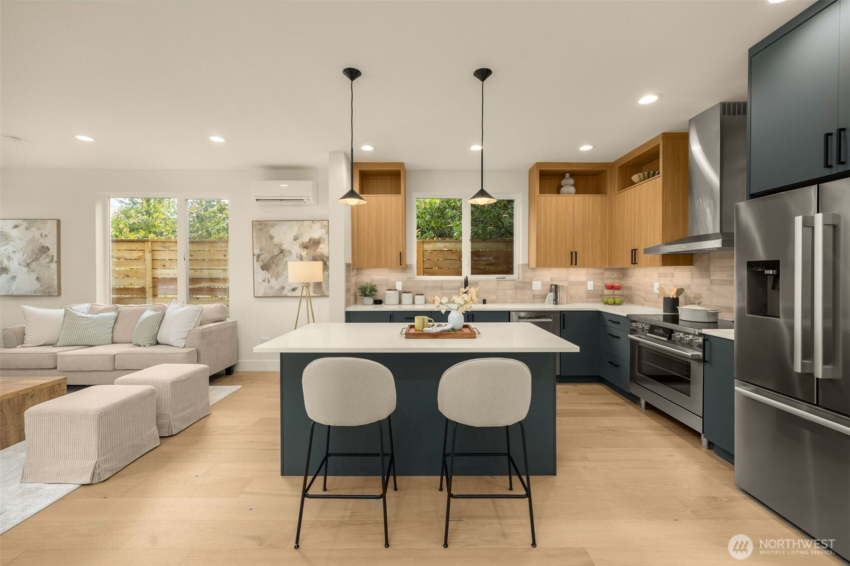 (503) 893-8874This is not your typical townhome! Pine Ridge by Blackwood Homes brings five brand-new residences to the heart of Laurelhurst, offering 3–4 bedroom layouts with EV-ready parking. This fully standalone home offers a functional, wide floorplan and hand-picked designer finishes to live more like a traditional home than your typical townhome. Enter into an inviting foyer with storage leading directly into the open concept living space where you will find a chef’s kitchen w/ large quartz-topped island, Bosch appliances, 36" induction range, separate dining space, and patio for plants and your BBQ off the main floor. Come home to dedicated parking directly out the convenient side door, mini splits in all rooms for year-round comfort, and relax in a spacious primary suite with walk-in closet and 4-piece bath w/ heated floors! A second bedroom with its own bath sits adjacent to the primary, while two more bedrooms and a den find themselves on the next floor, all to themselves but also close enough to not be too far away from your primary suite. All of this, with a playground and park across the street + proximity to some of the most top-rated schools in the city, Burke-Gilman trail, UW, Children's Hospital, and all that University Village offers & more! Lender-paid buydown available, terms apply. Photos are of similar home.