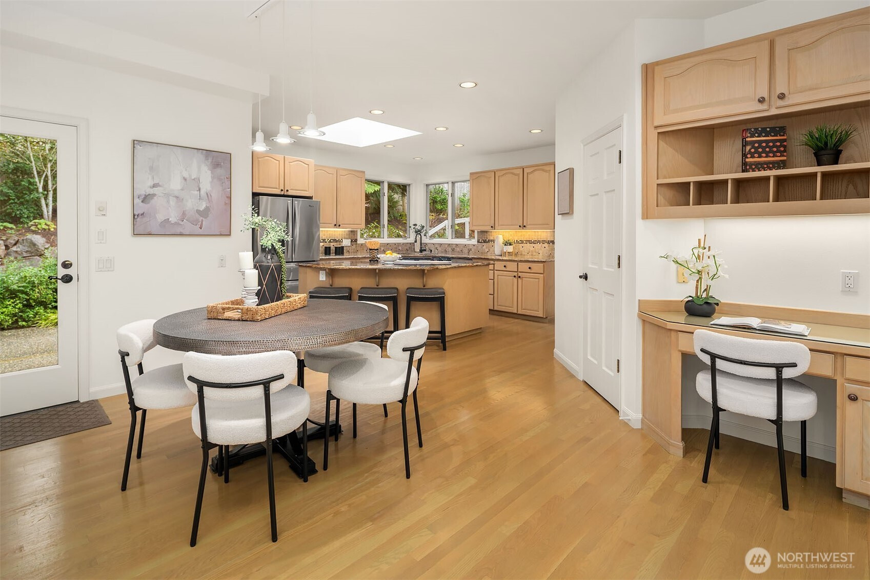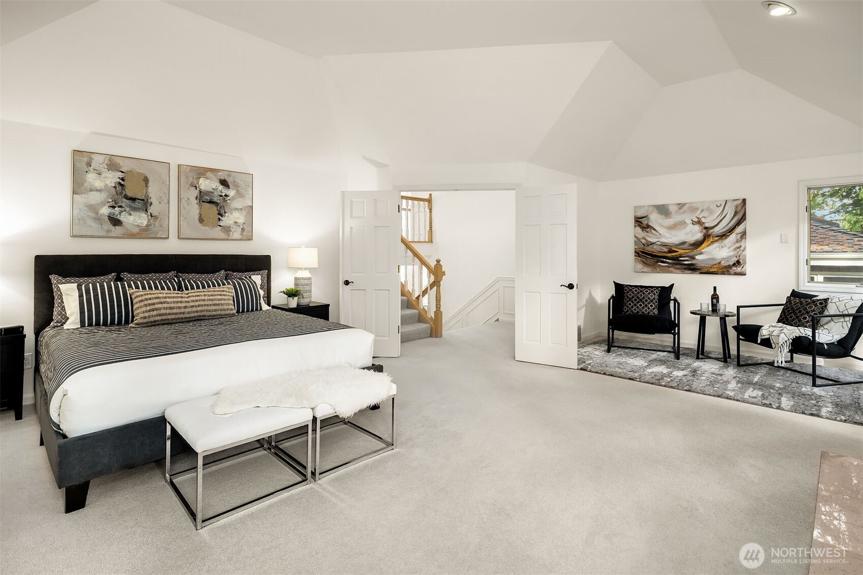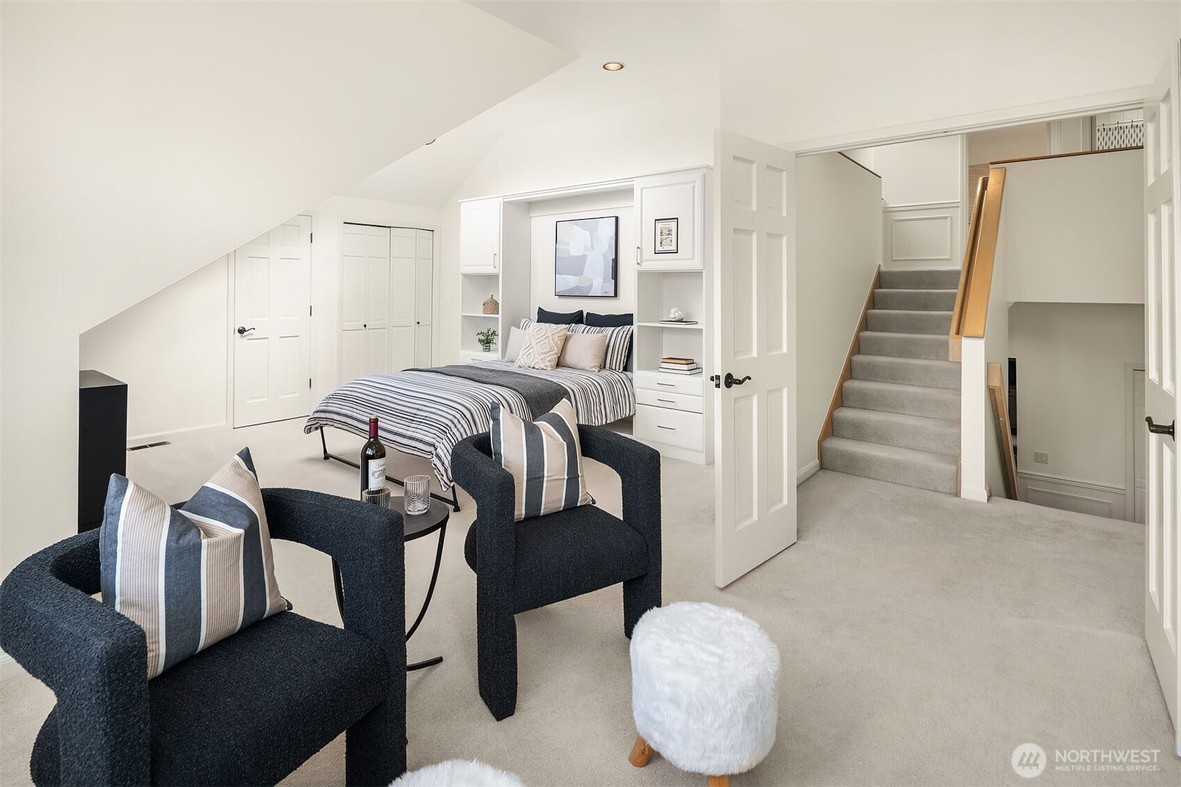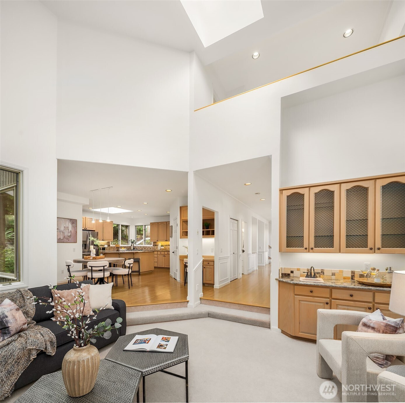Custom-crafted by renowned builder Ben Leland, this Montreux masterpiece seamlessly blends timeless architectural elegance with thoughtful modern enhancements. Offering over 3,900 square feet of beautifully scaled living space, the home features four bedrooms, 3.5 bathrooms, a dramatic two-story wood-paneled office, a mid-level bonus room with a built-in Murphy bed, and an oversized three-car garage. Perfectly positioned on a quiet cul-de-sac on a private 12,288-square-foot lot, the property is surrounded by mature landscaping that provides exceptional serenity and privacy. From its meticulous craftsmanship to its idyllic setting, this exceptional Montreux residence embodies refined luxury living in one of the Eastside’s most coveted communities.