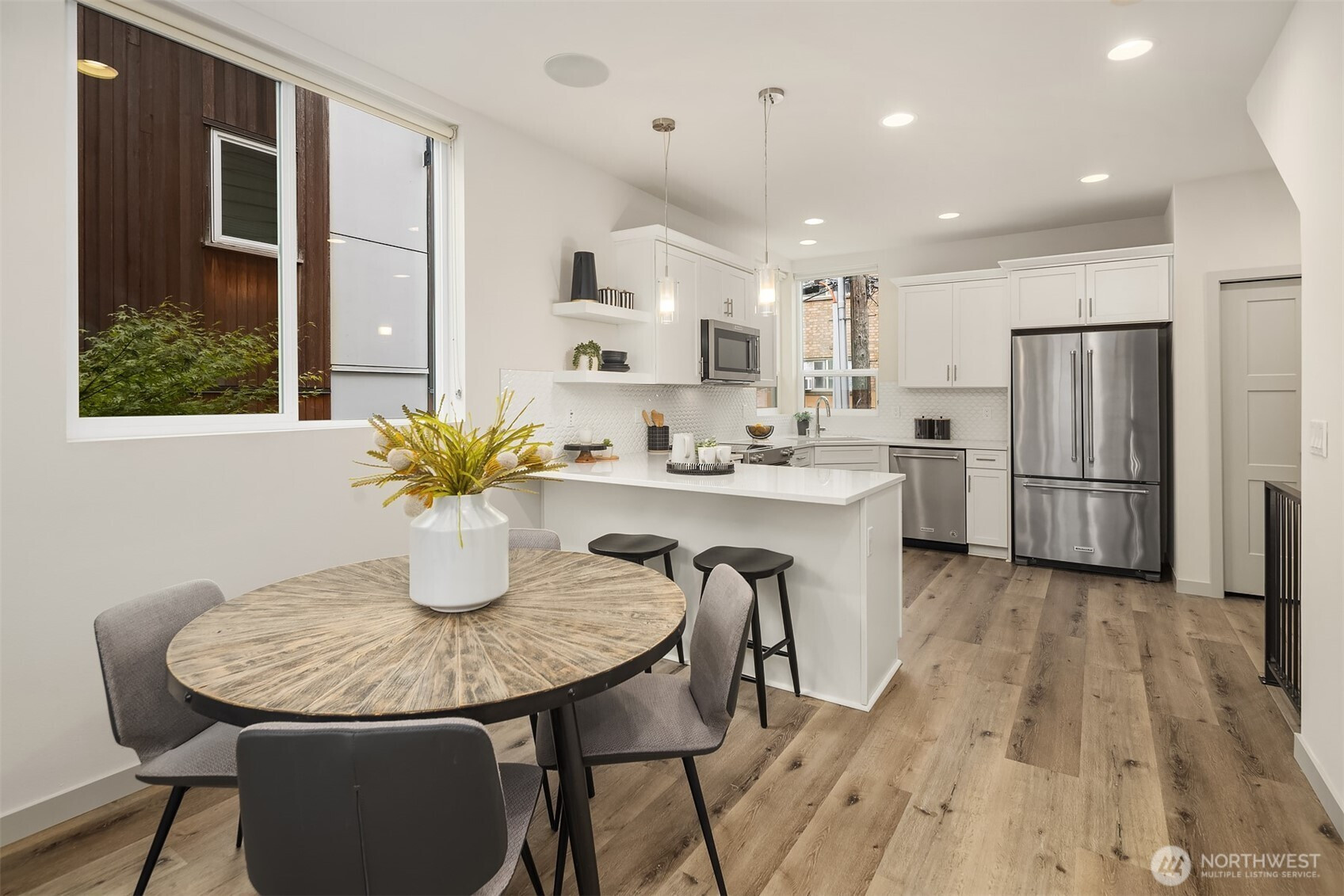 Best location and move in ready! Bright, modern & effortlessly cool 3BR, 2.5BA 4-Star Built Green townhome pairs sustainability with high end finishes and style in a prime neighborhood. Oversized windows fill the open living spaces & sleek bright kitchen with natural light; abundant storage, eating island, pantry and KitchenAid appliances make entertaining easy. The top-floor primary ensuite offers a spa-like bath, two closets, full size W/D + private terrace. Two additional main floor bedrooms flex for guests, roommates, work-from-home. Enjoy year-round comfort with mini splits (heating/cooling), off-street parking & unbeatable access to UW, transit, parks & amenities. Like-new 2020 construction, freshly painted, ready to enjoy! No HOA.
